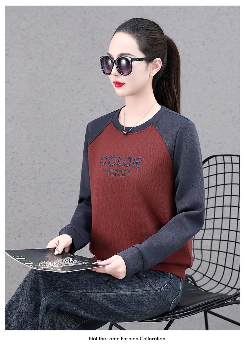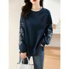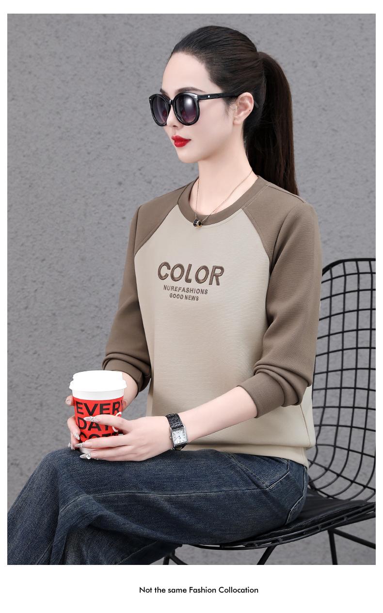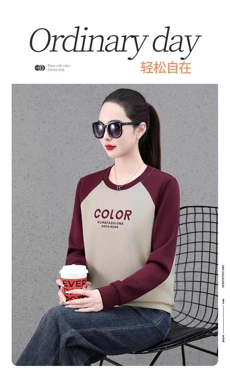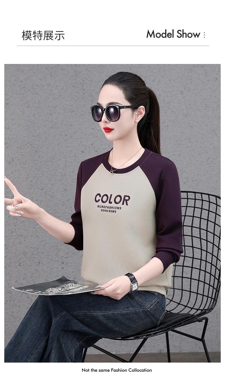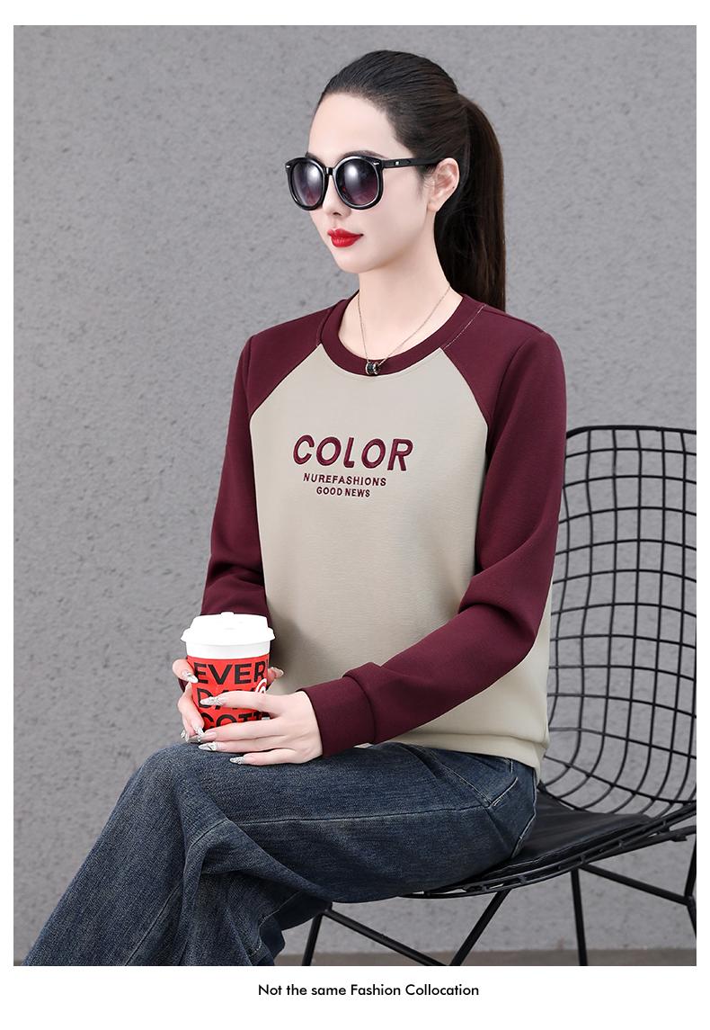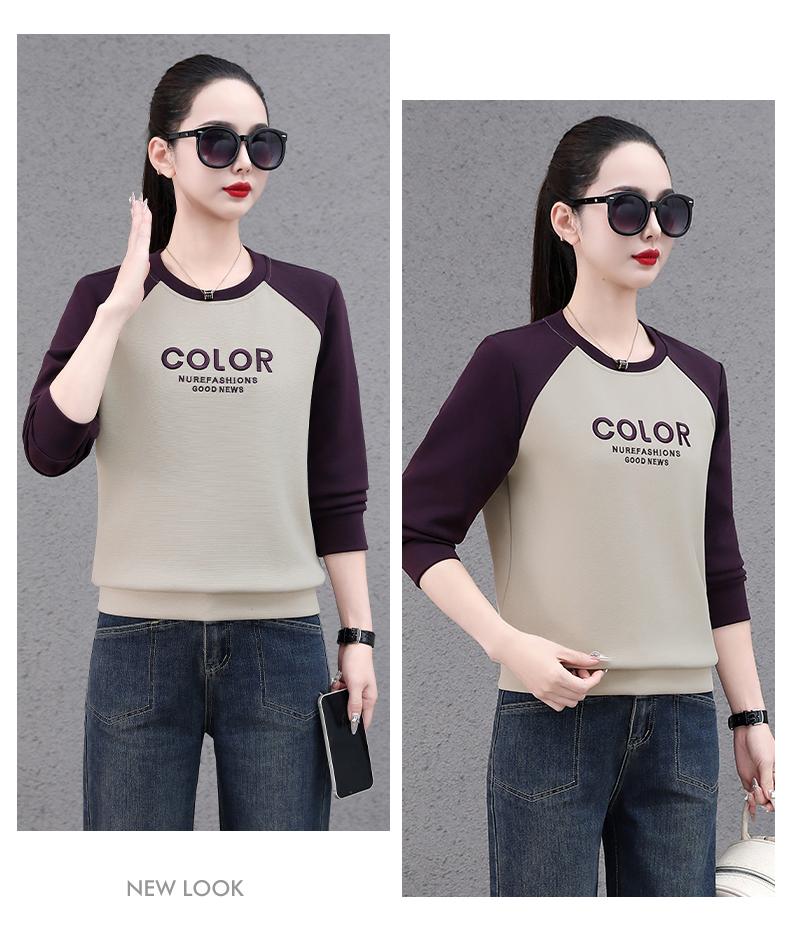 Sudadera de Cuello Redondo para Mujer 2025 Nuevo Primavera y Otoño Madre de Mediana Edad Suelta y Elegante Color en Contraste Manga Larga con Capucha Pulóver Chaqueta