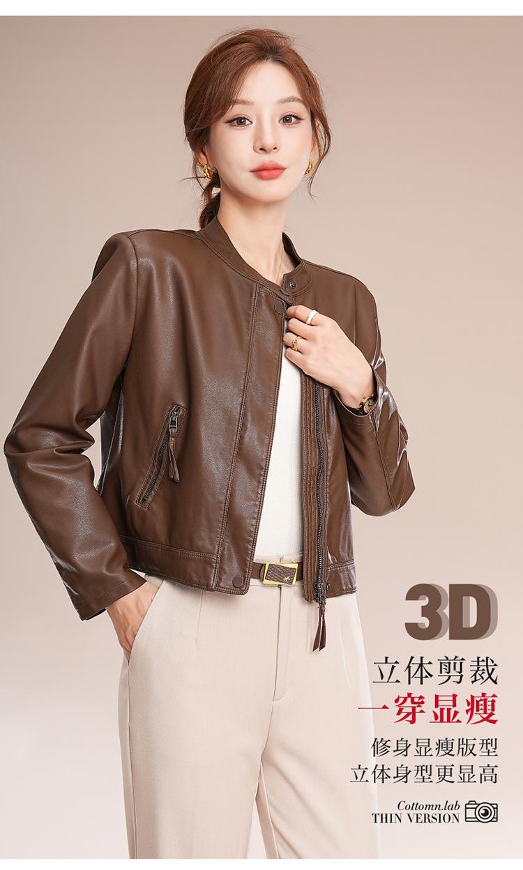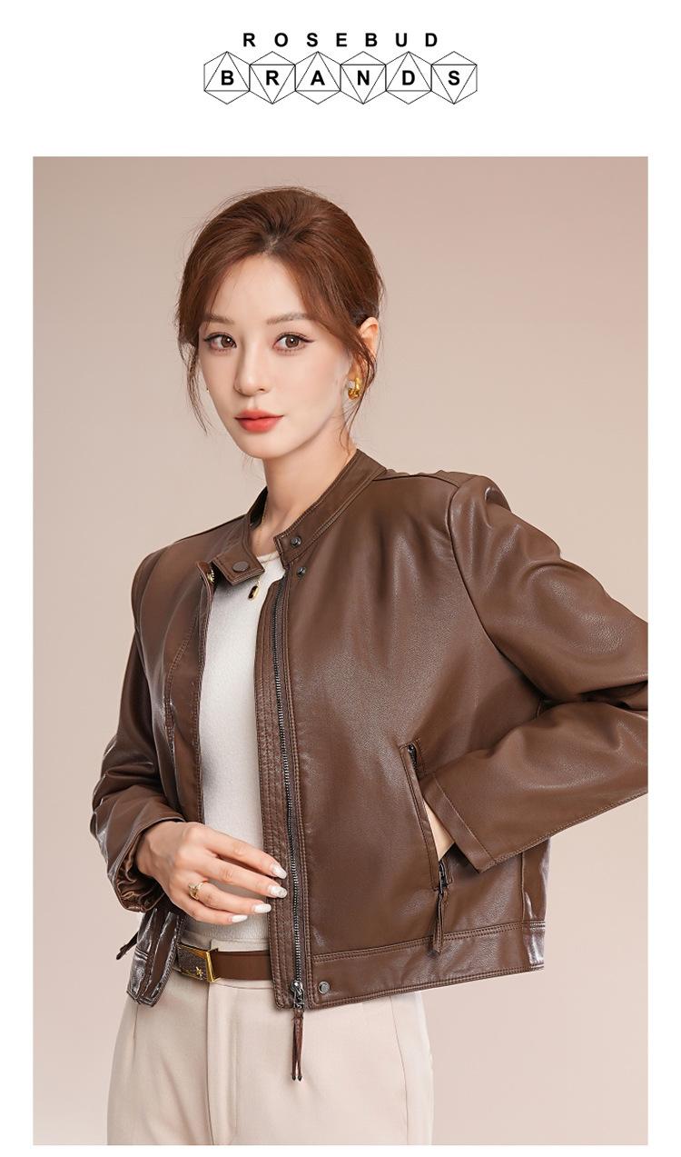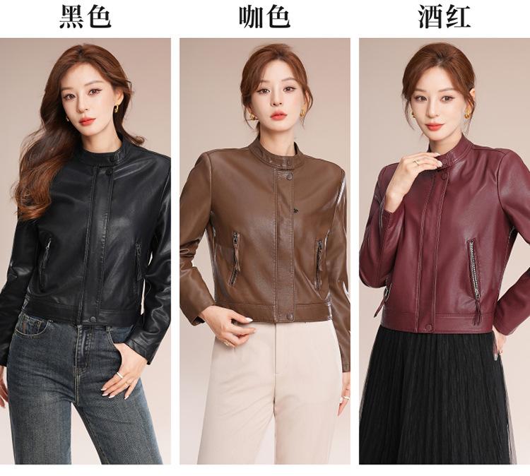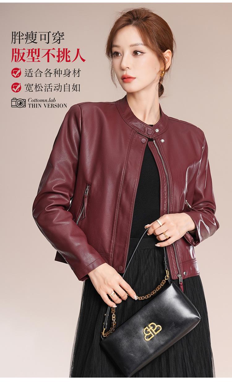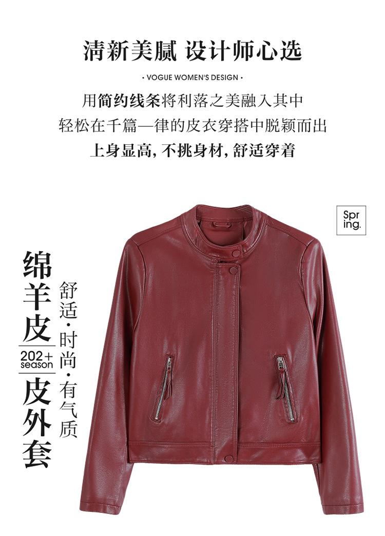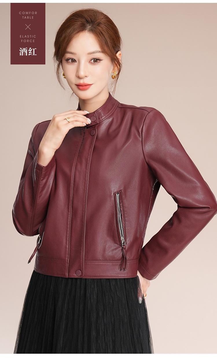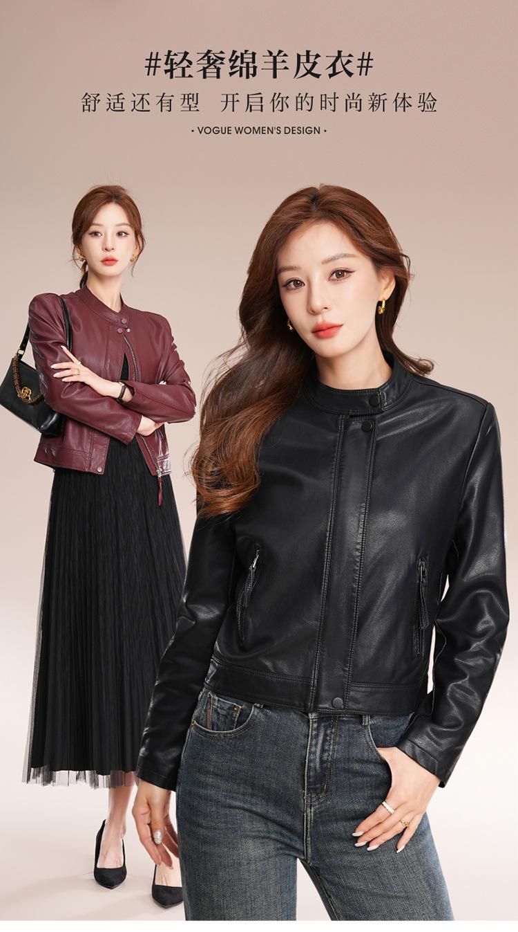 Chaqueta corta de piel de oveja para mujer, de diseño Haining 2025, de corte entallado, elegante y a la moda con cuello.