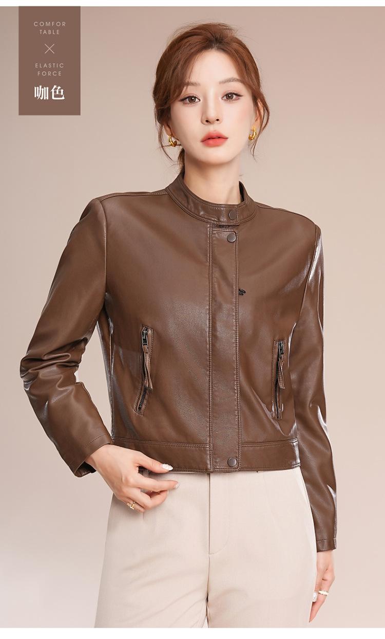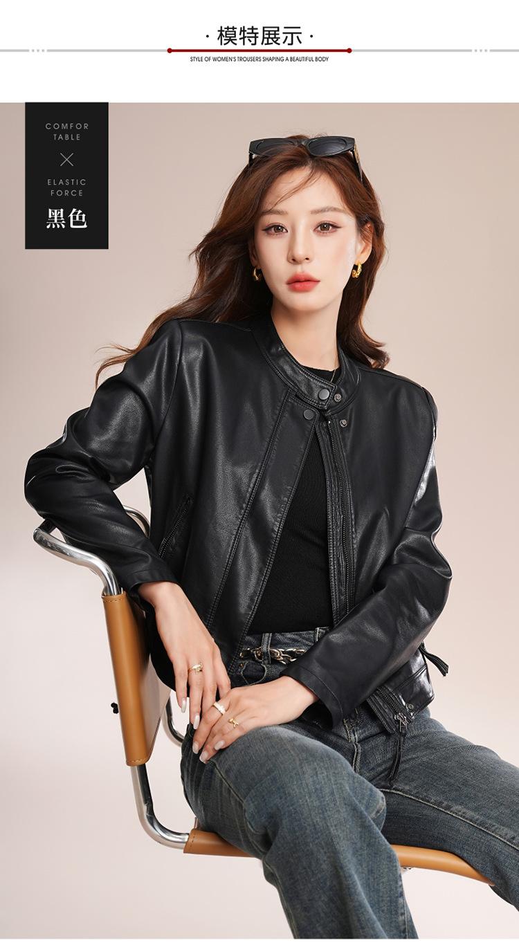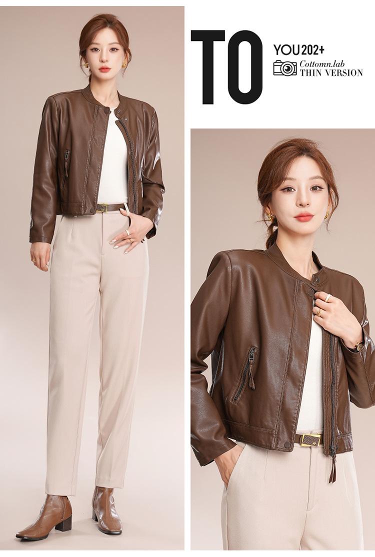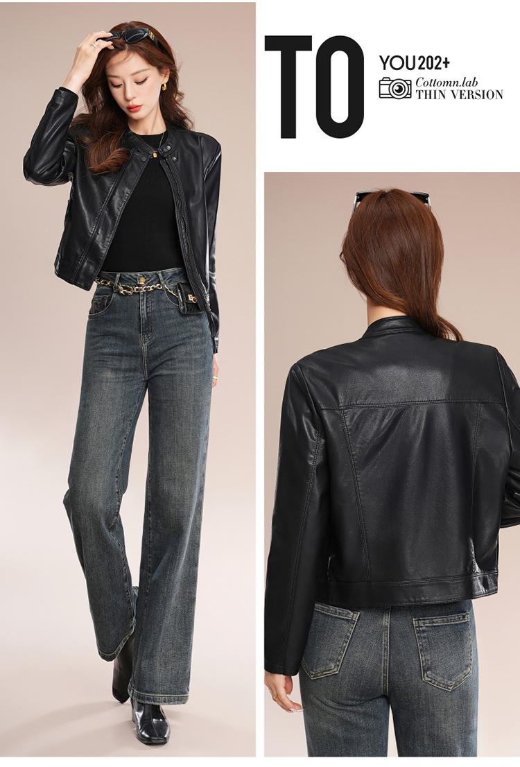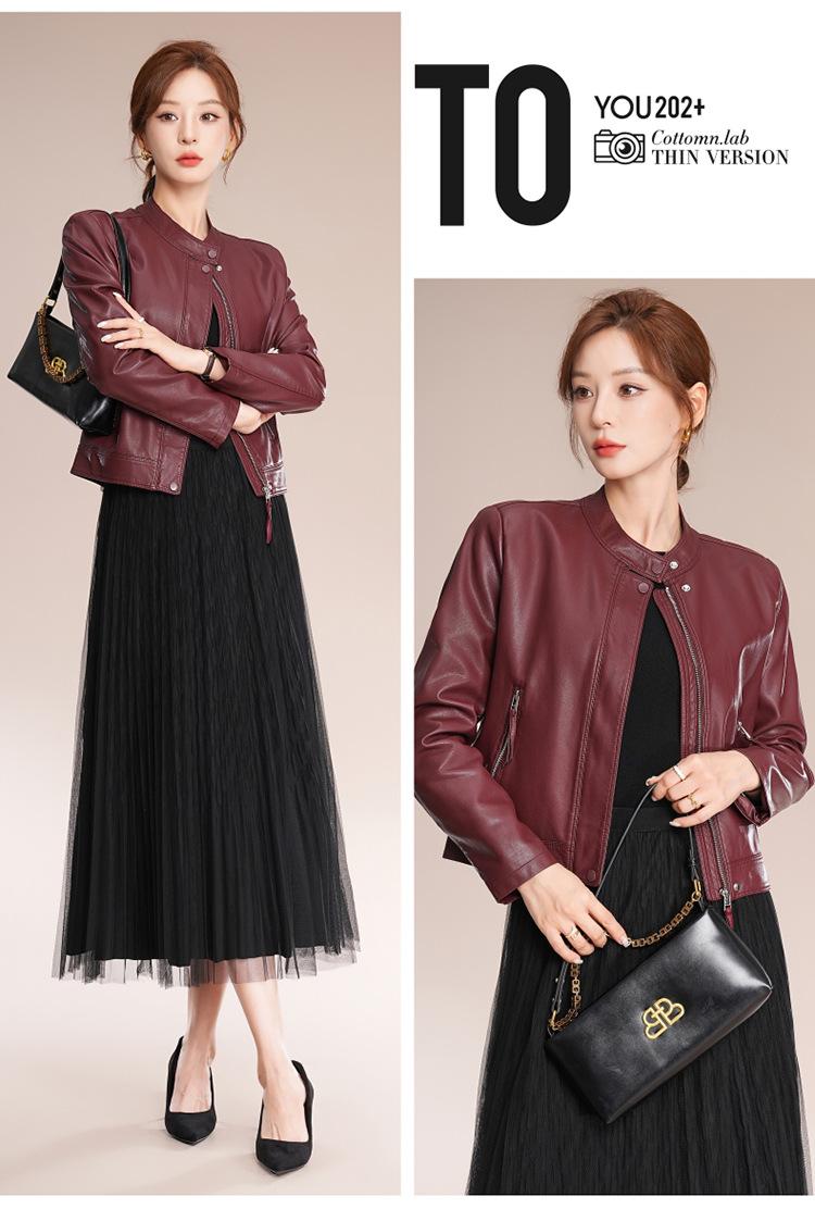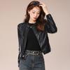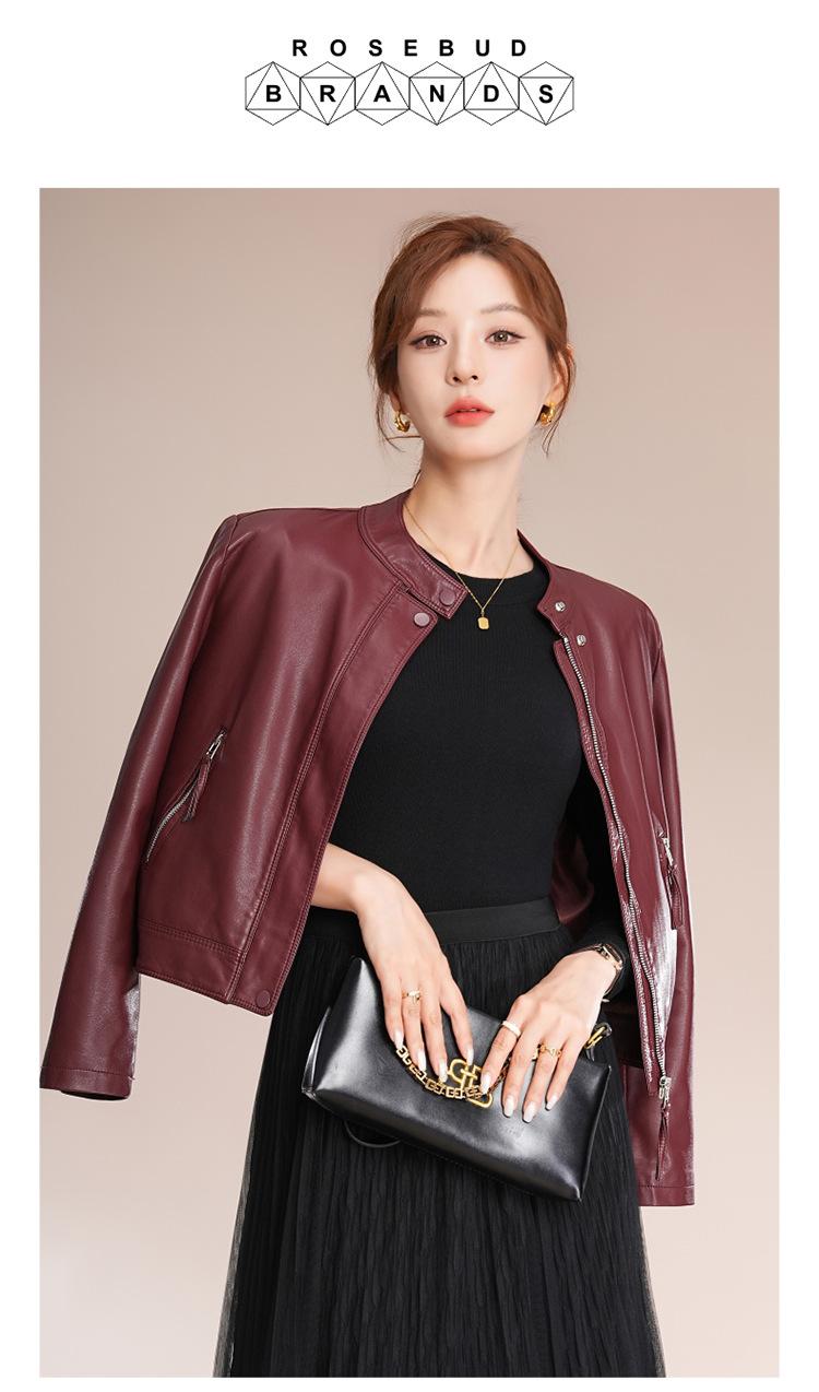 Chaqueta corta de piel de oveja para mujer, de diseño Haining 2025, de corte entallado, elegante y a la moda con cuello.