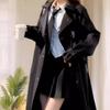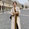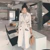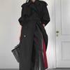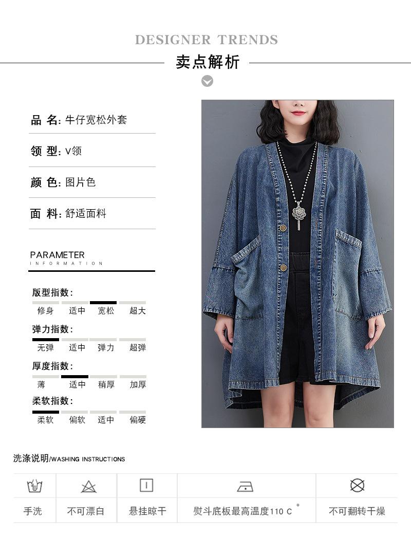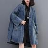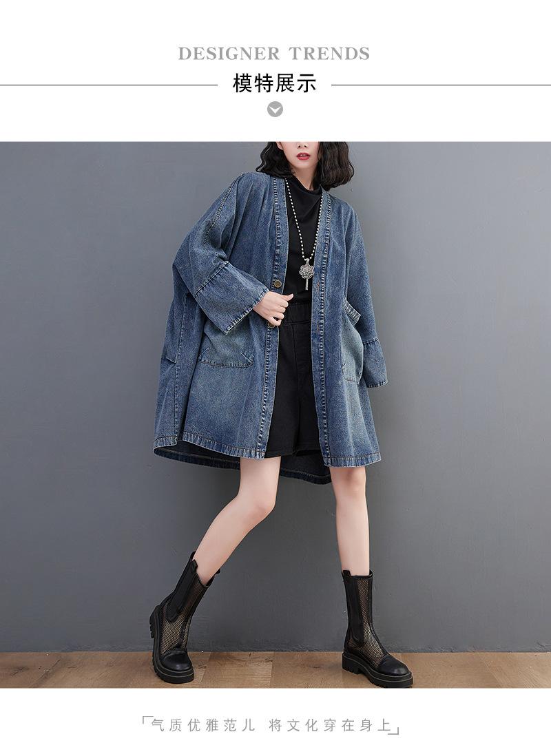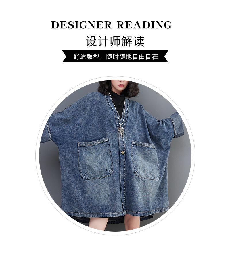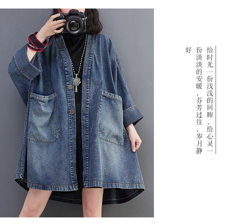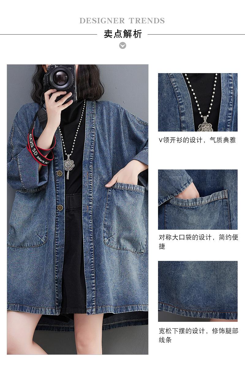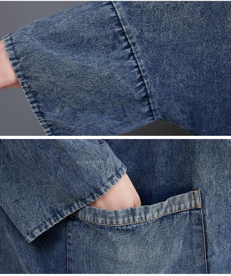 Abrigo vaquero con bolsillo y escote en V vintage para mujer, nueva gabardina larga holgada de otoño, versión grande, disponible en stock.