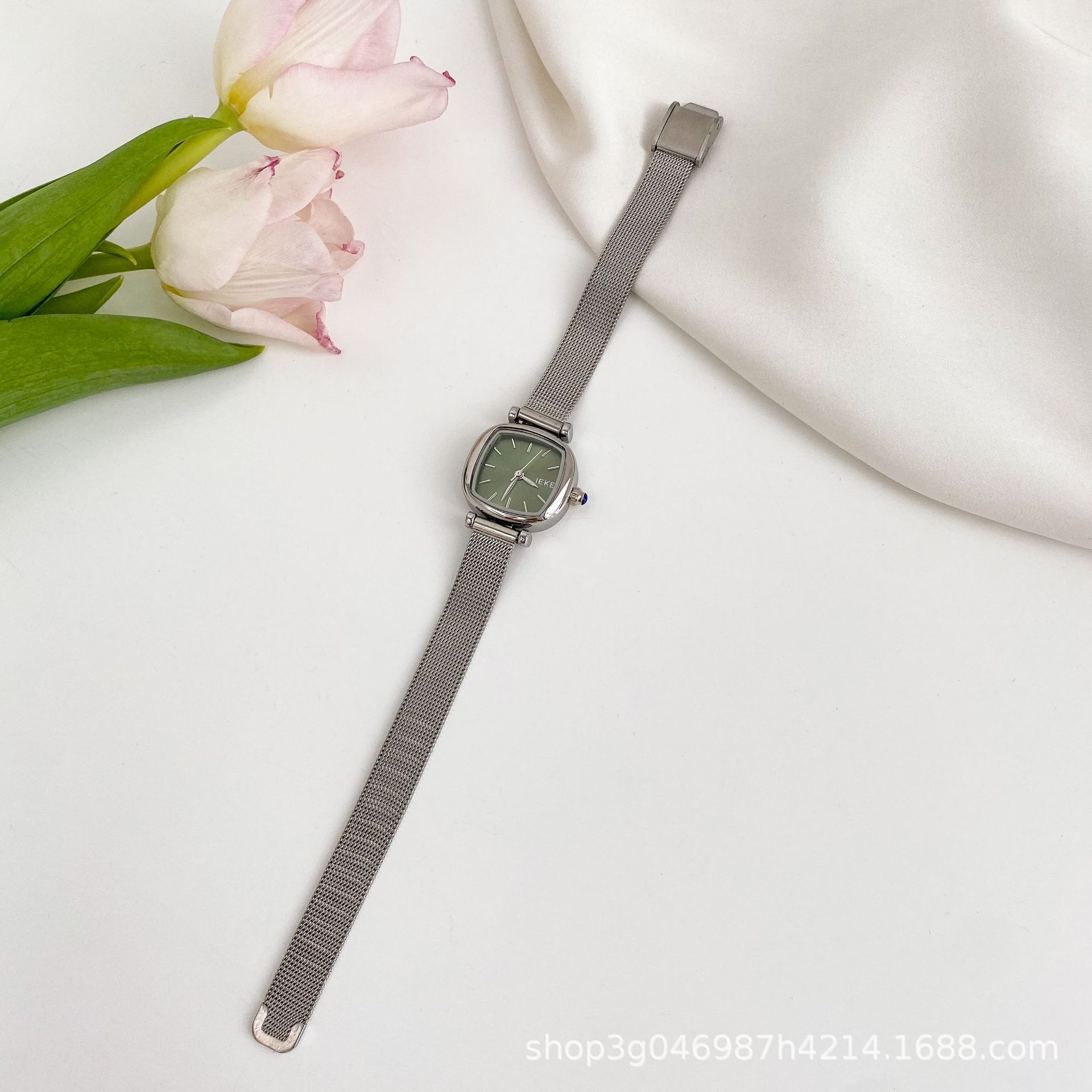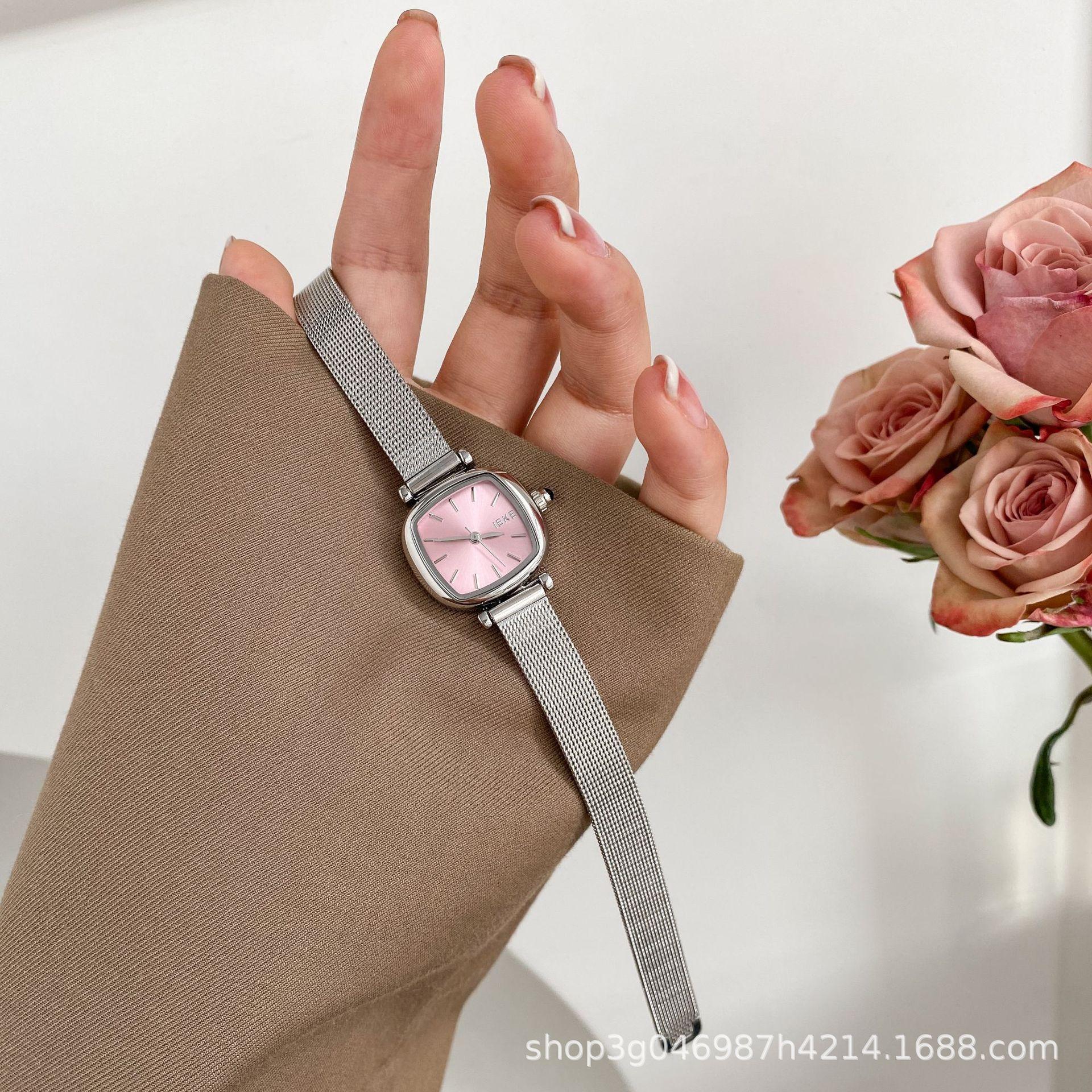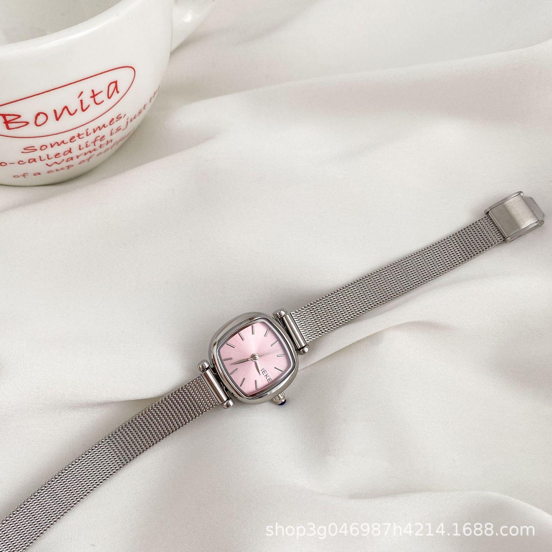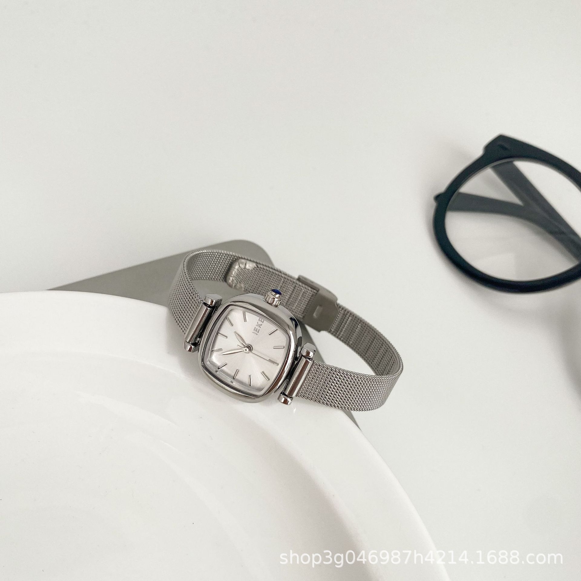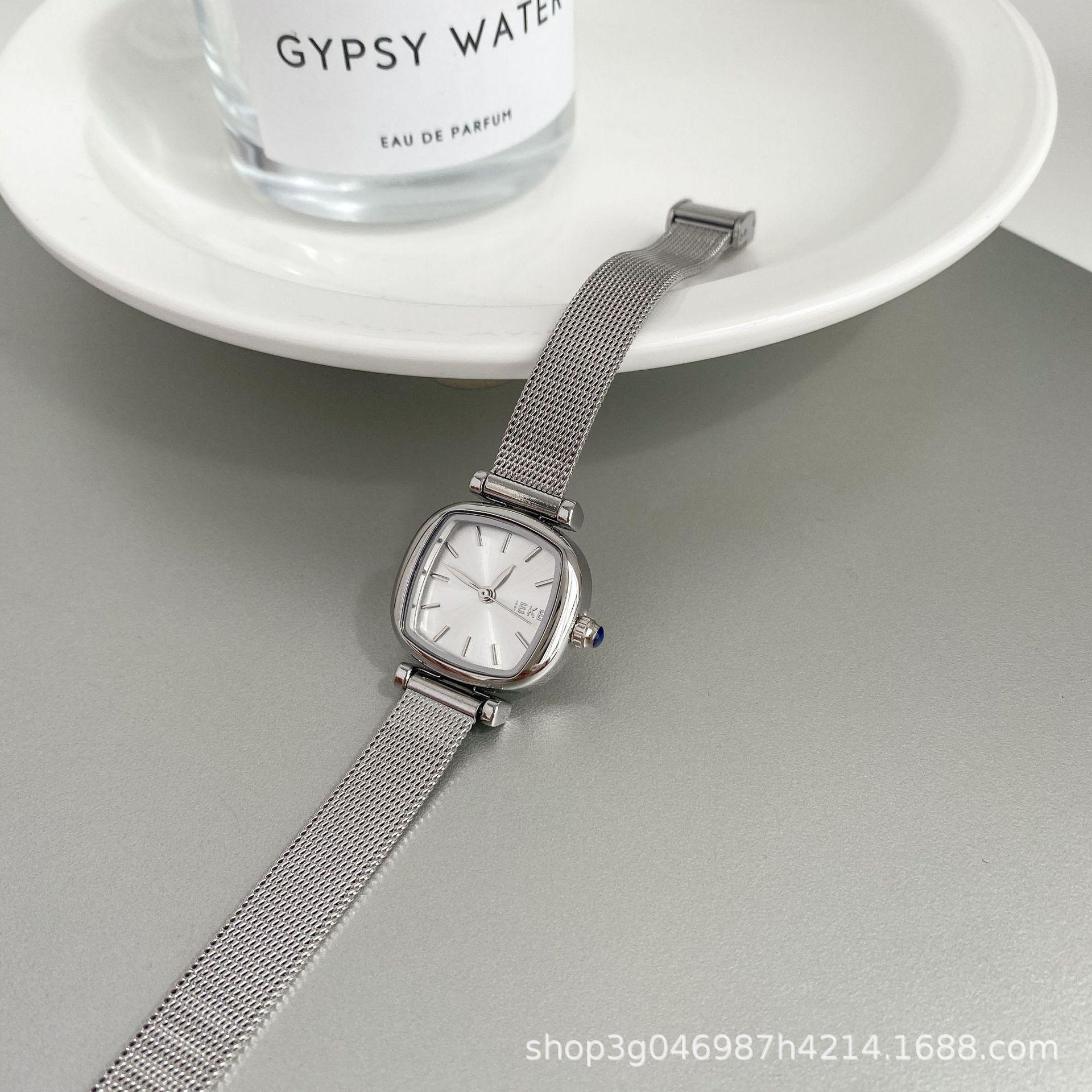 IEKE Exquisito Lujo Ligero de Alta Gama Artístico Cuadrado Pequeño Azúcar Esfera Pequeña Temperamento Correa de Acero Reloj Estudiante Femenino Casual Combinable