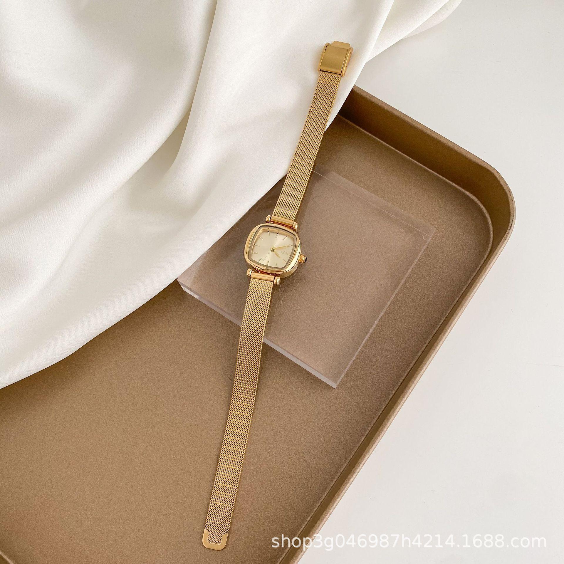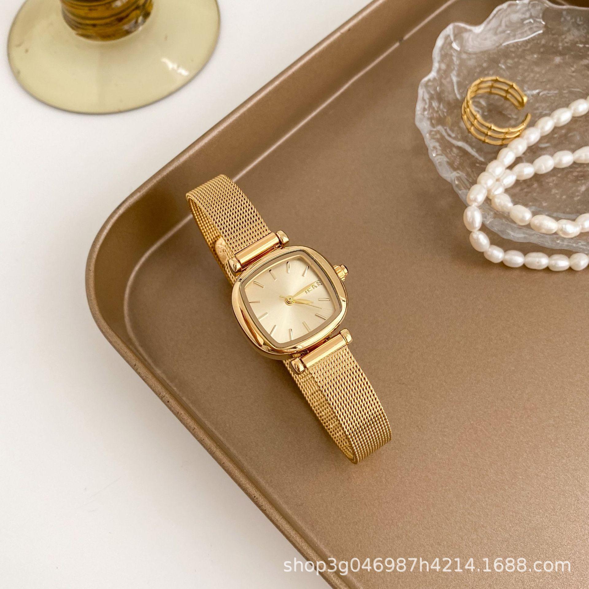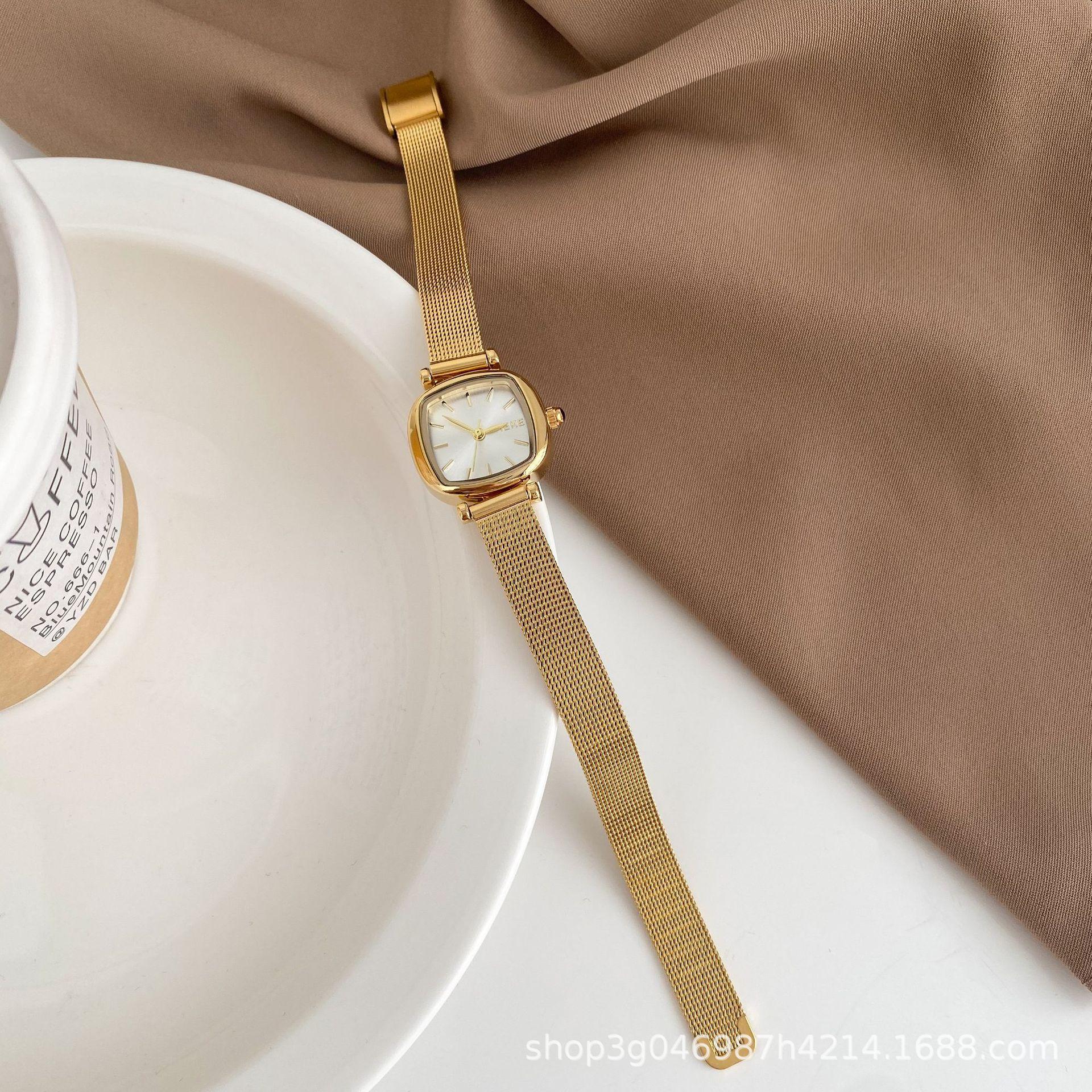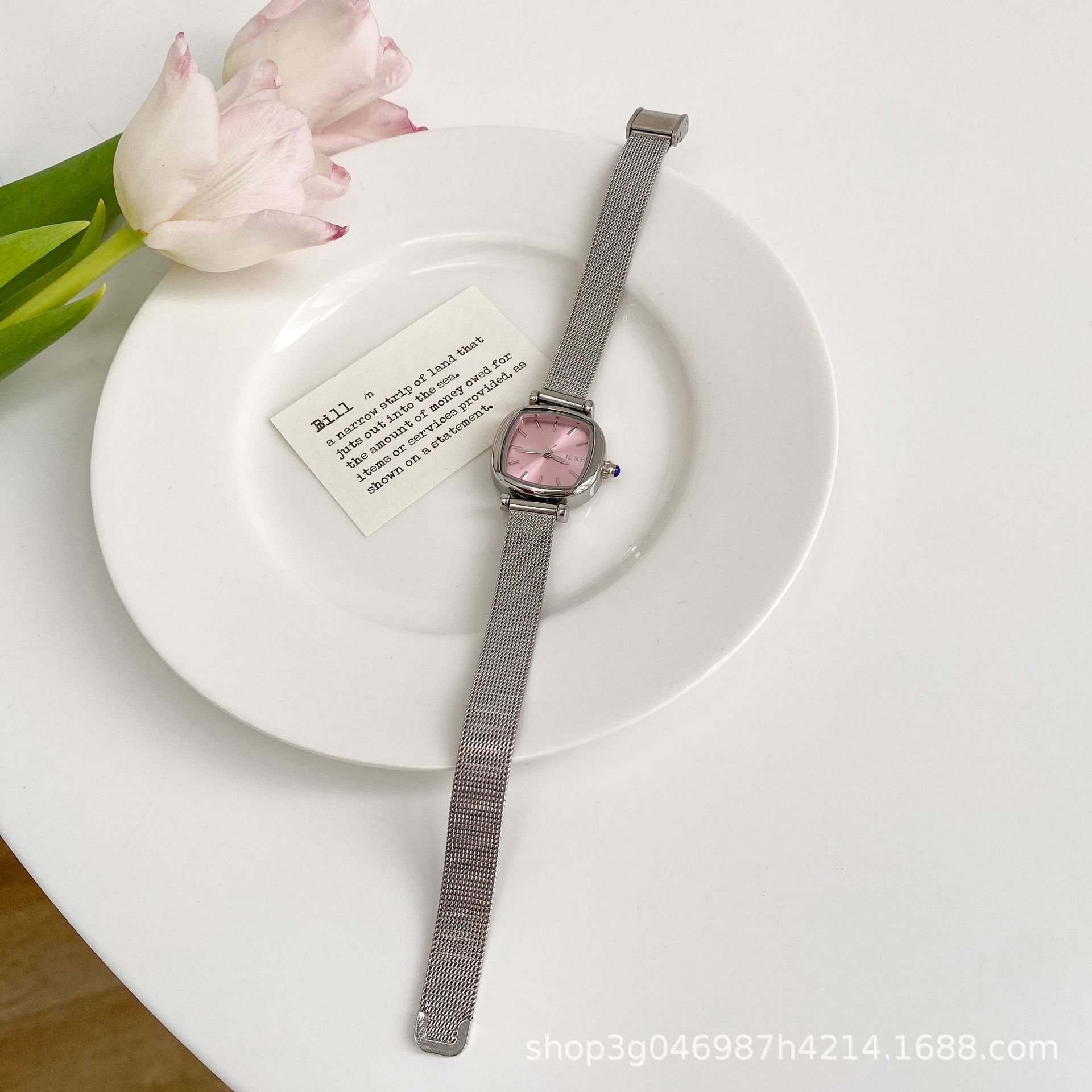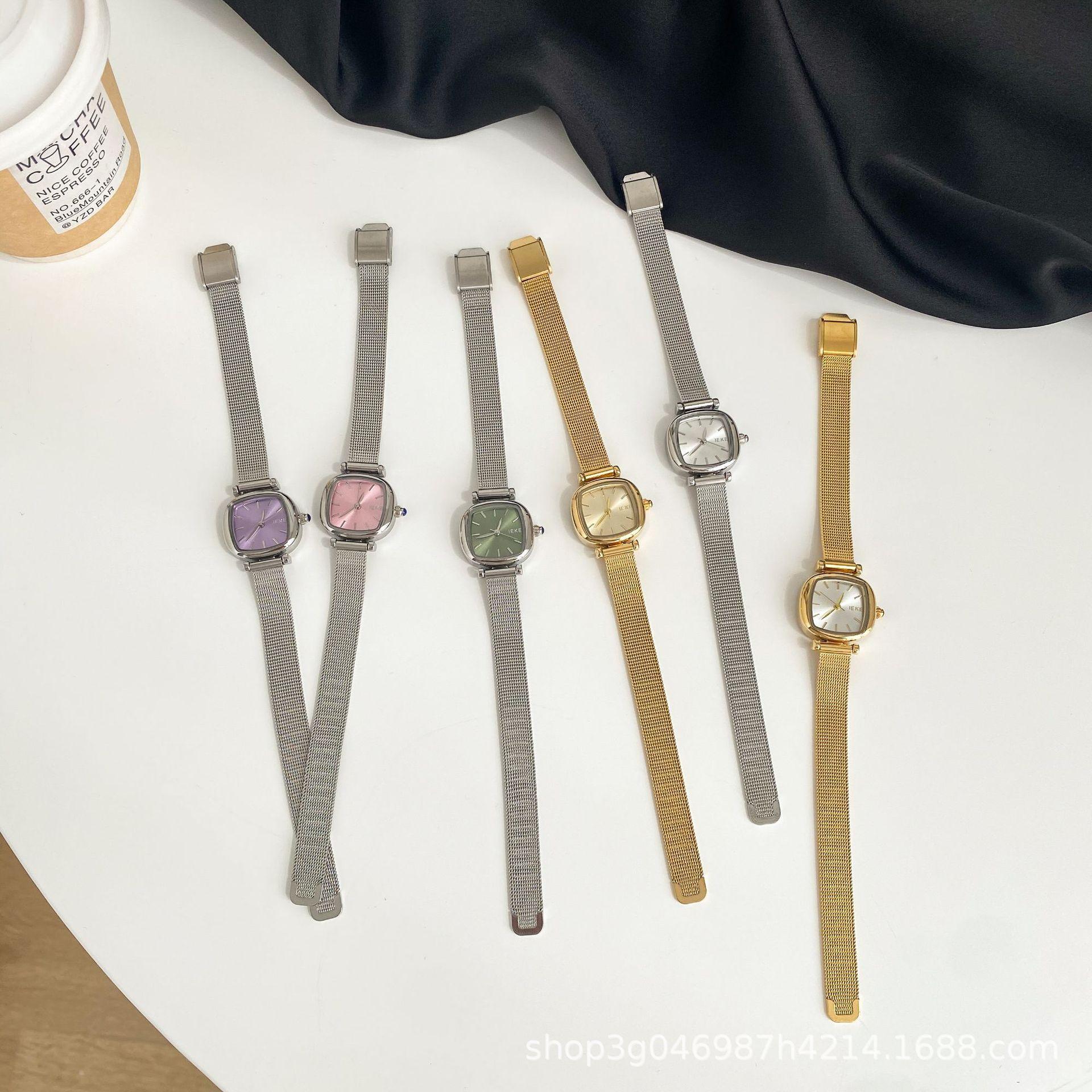 IEKE Exquisito Lujo Ligero de Alta Gama Artístico Cuadrado Pequeño Azúcar Esfera Pequeña Temperamento Correa de Acero Reloj Estudiante Femenino Casual Combinable