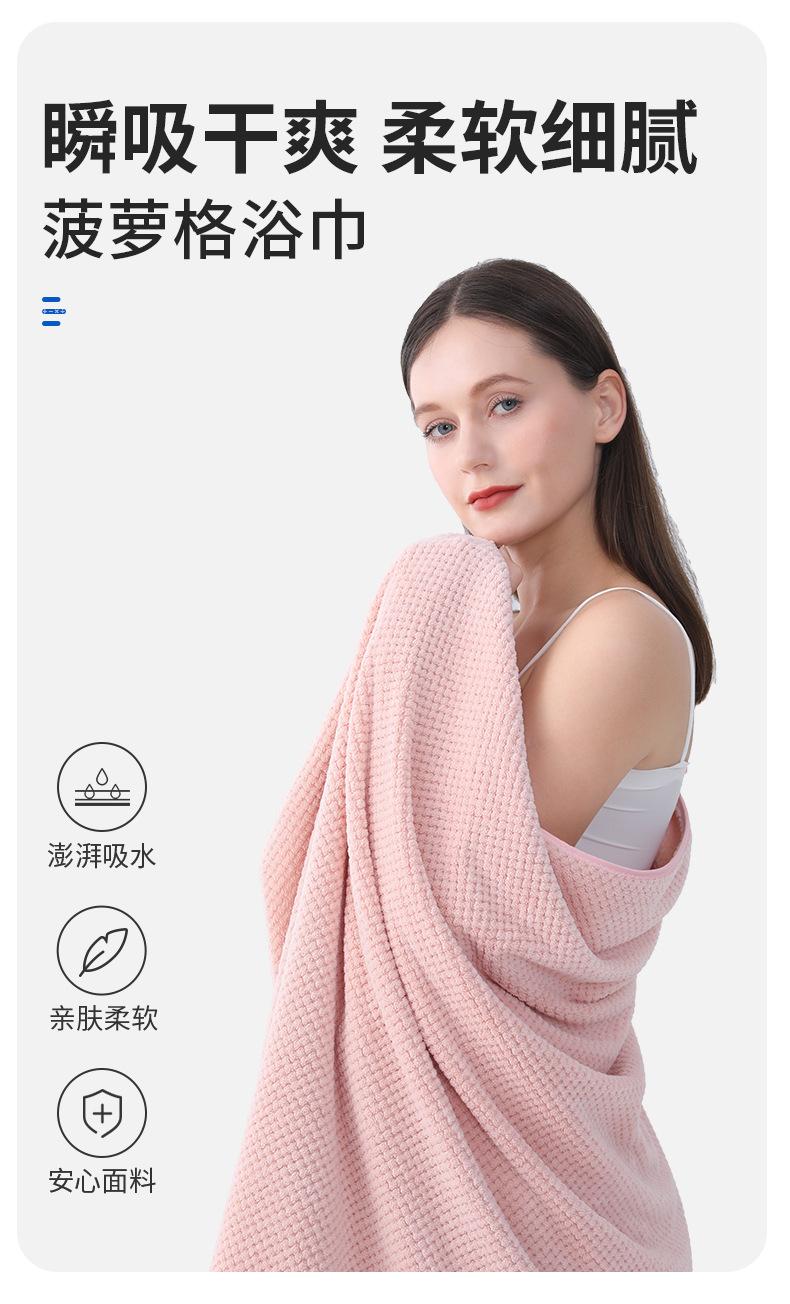 Toalla de Baño a Cuadros de Piña Terciopelo Coral para Mujer Nueva Toalla de Baño Gruesa Portátil Suave Fuerte Absorción de Agua Secado Rápido Estilo Ins Toalla Grande