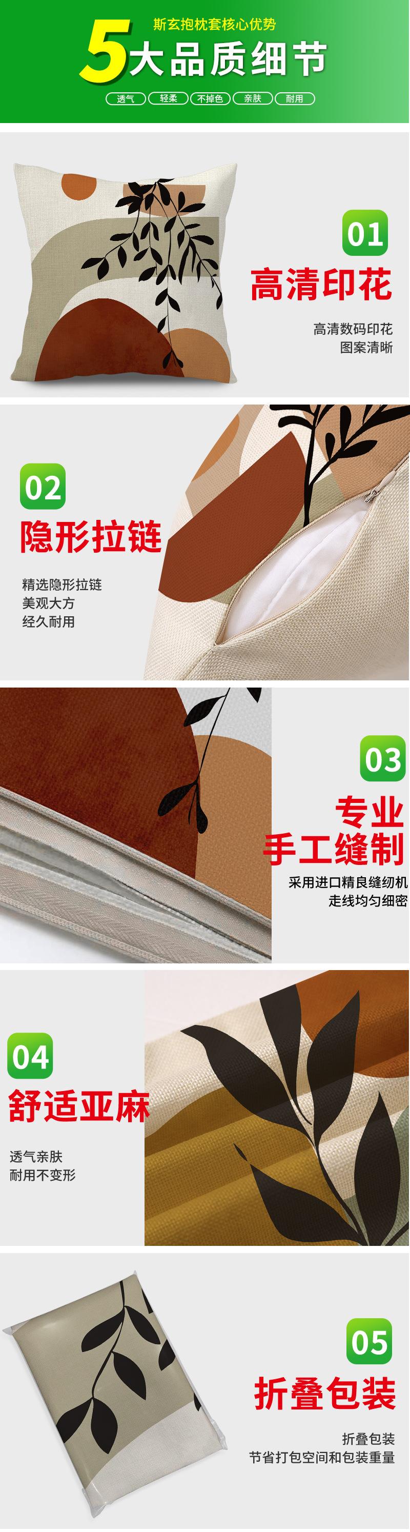 Funda de almohada nórdica Ins con estampado de hojas de olivo y atardecer, cojín decorativo de lino, cojín suave para sofá y sala de estar.
