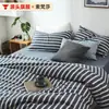Sábana de algodón puro de color liso, funda nórdica de cuatro piezas, algodón lavado simple, ropa de cama de algodón para dormitorio de estudiantes