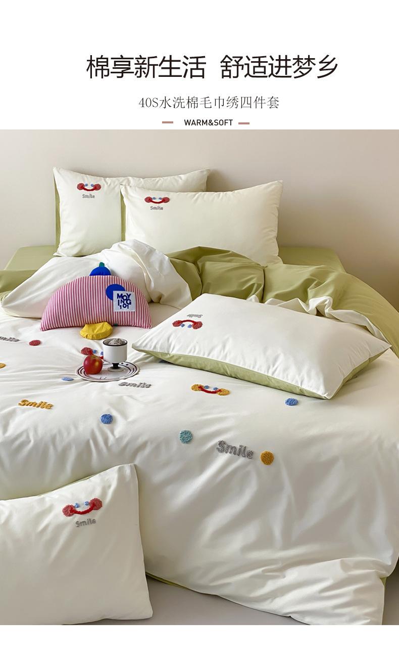 Clase A Lindo Dibujo Animado Algodón para Niños Toalla de Algodón Lavado Juego de Cuatro Piezas Bordado Ropa de Cama de Alta Calidad Nantong Juego de Tres Piezas Materno Infantil