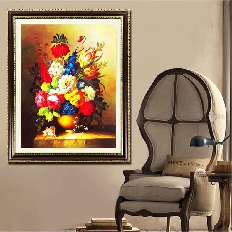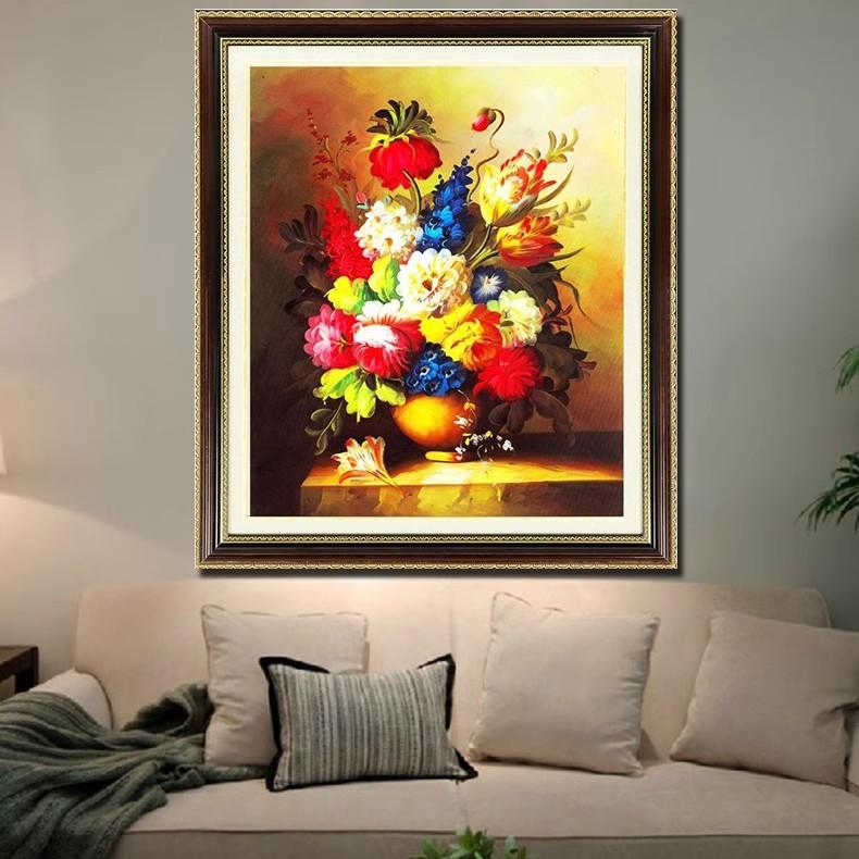 2443 oil painting vase three 79x88 ecological cotton thread precision printing cloth (medium grid 3-strand full embroidery version)