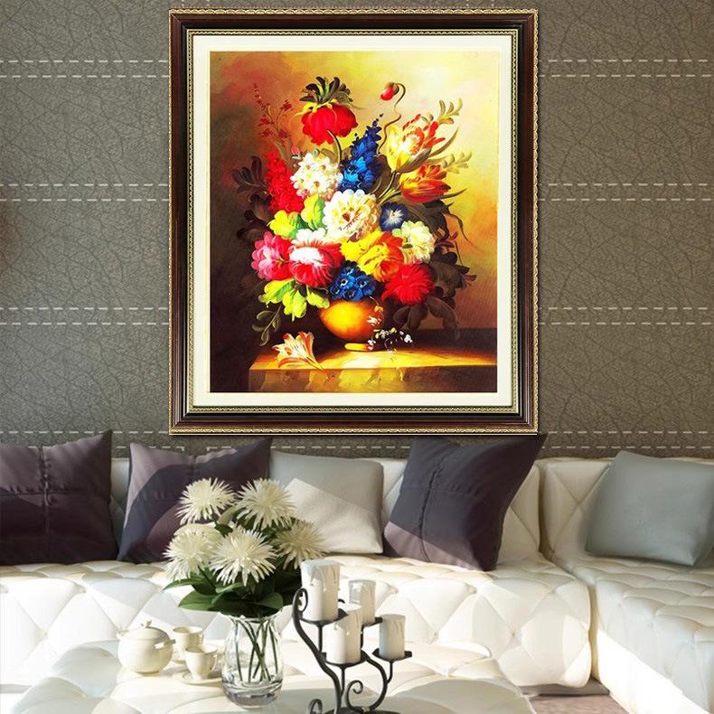 2443 oil painting vase three 65x80 ecological cotton thread precision printing cloth (medium grid 3-strand full embroidery version)