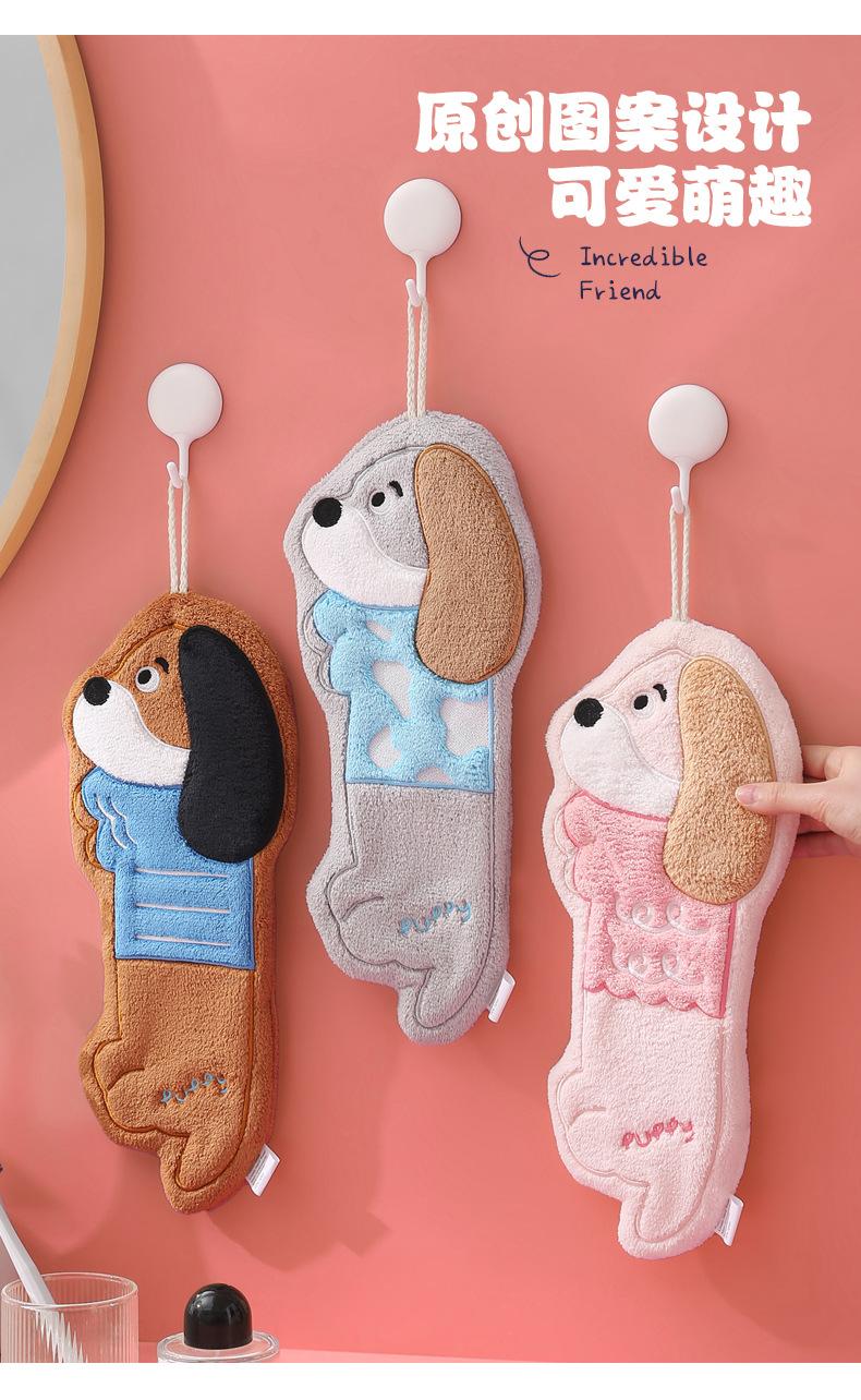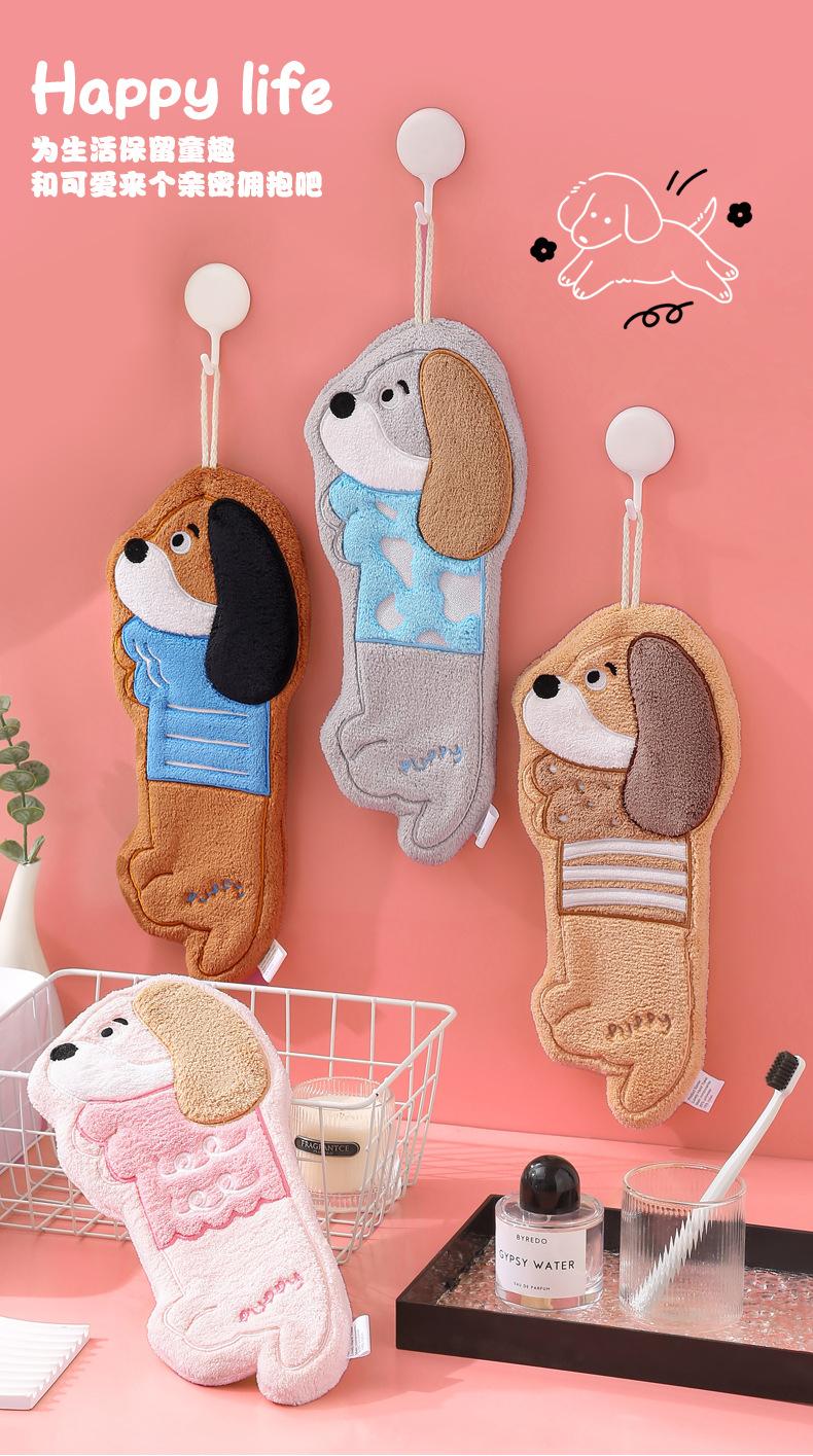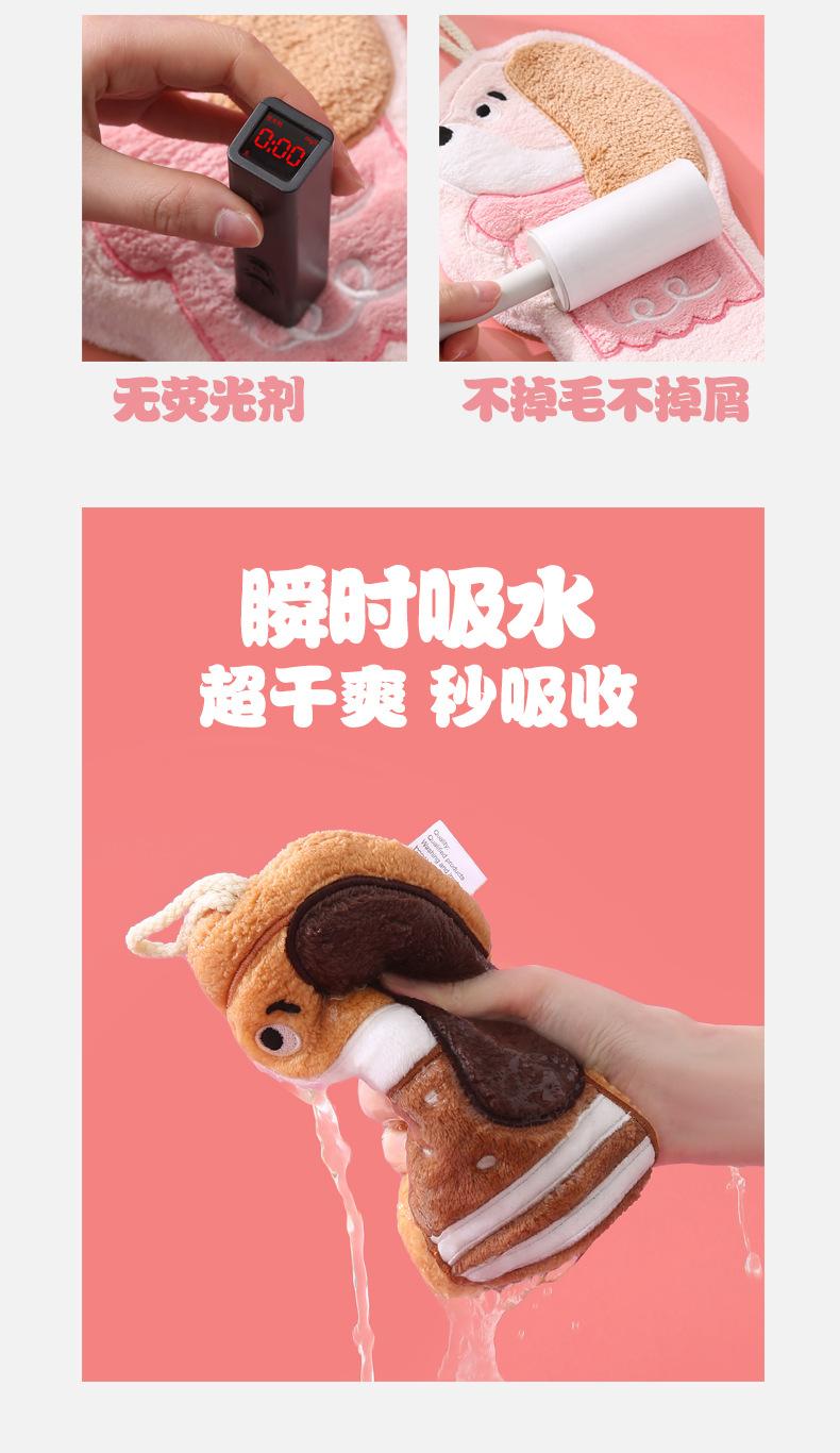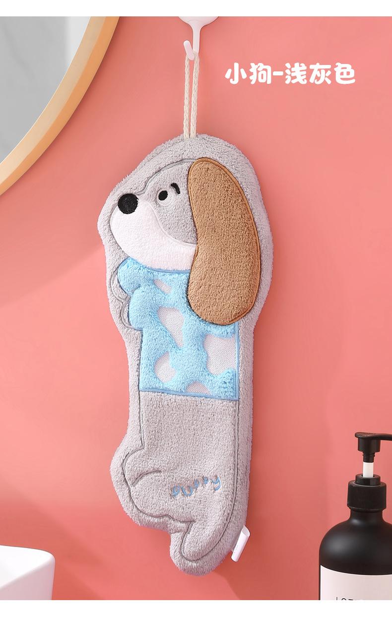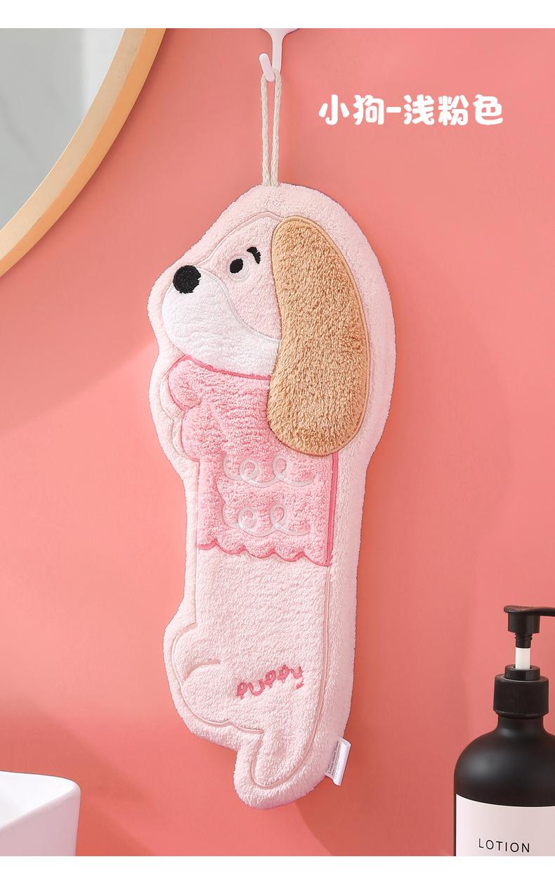 Lindo Toalla Colgante de Dibujos Animados Vellón Coral Engrosado Absorbente de Agua Toalla de Secado Rápido Pañuelo Toalla de Mano para Niños Regalo de Mano