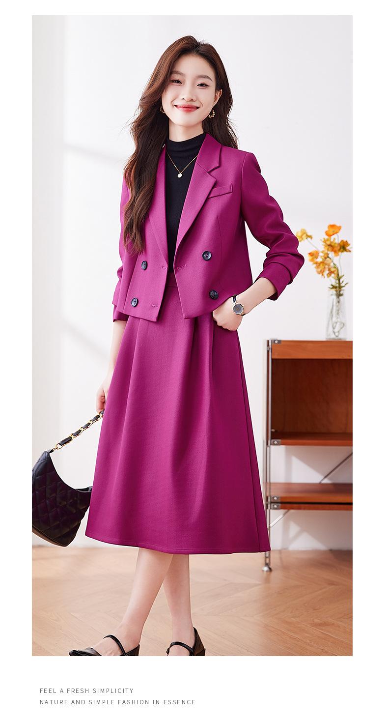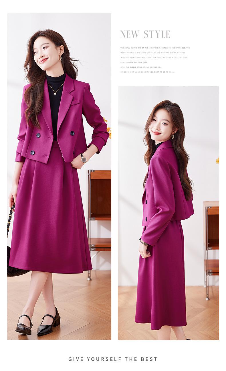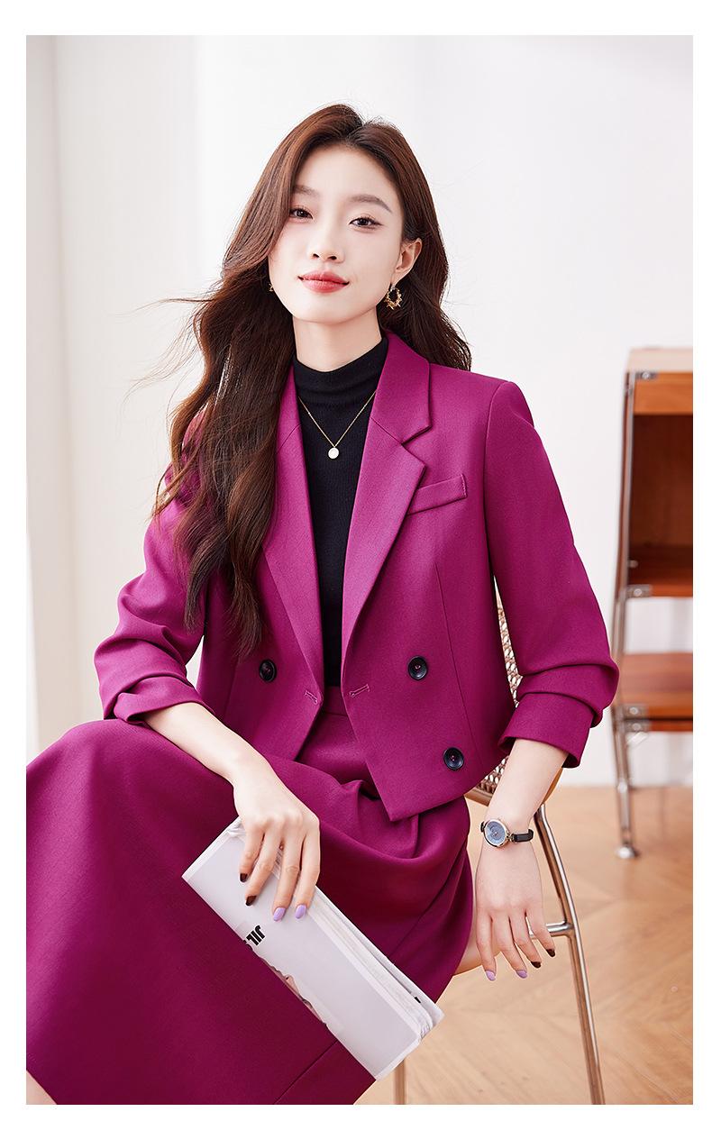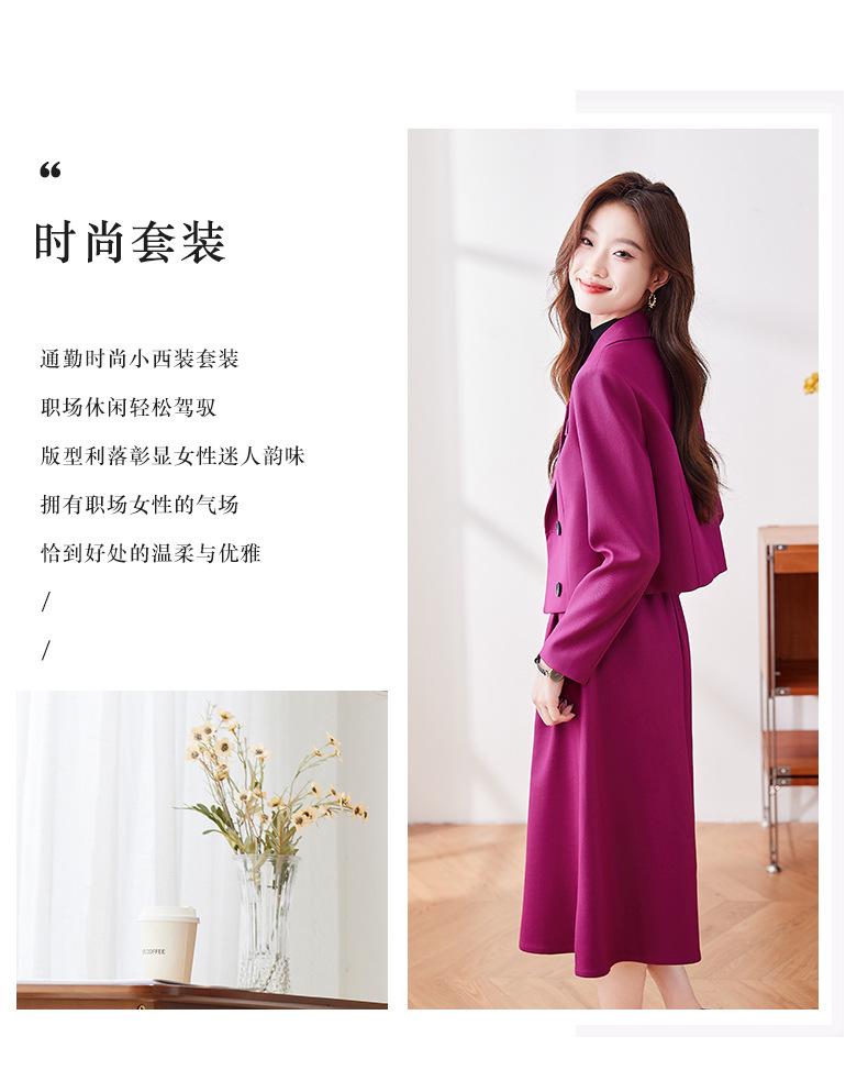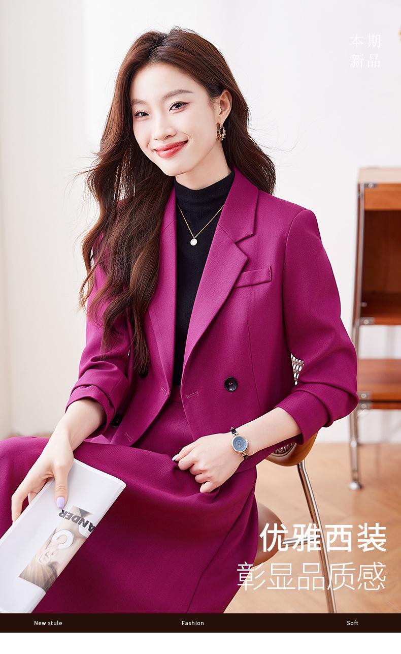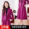 Traje de dos piezas para mujer, chaqueta, falda y cuello, color morado, manga larga, profesional, primavera y otoño de 2024