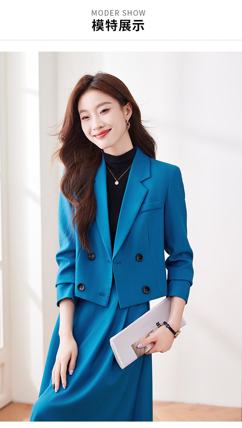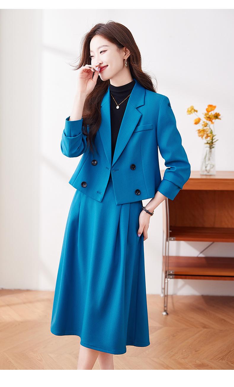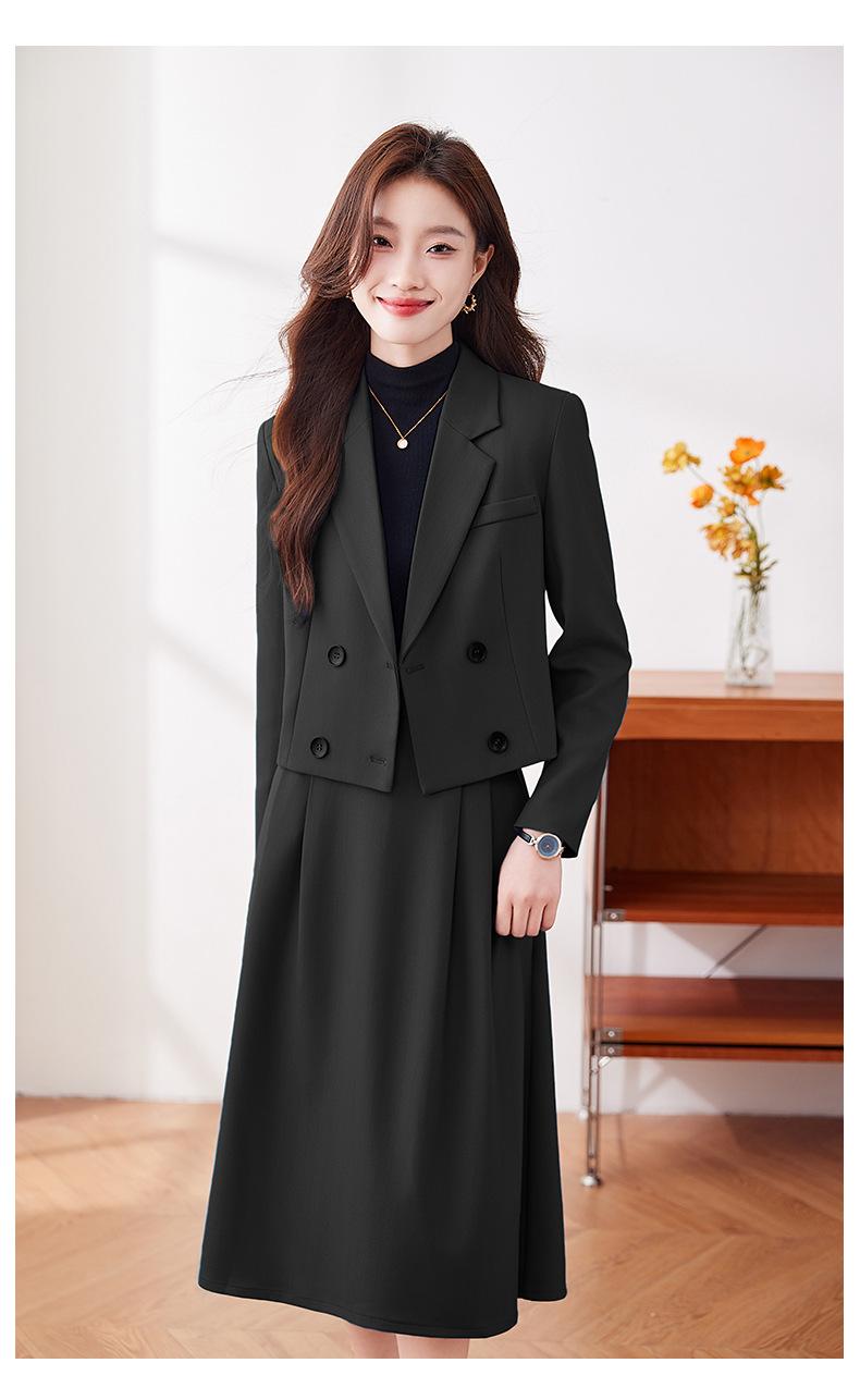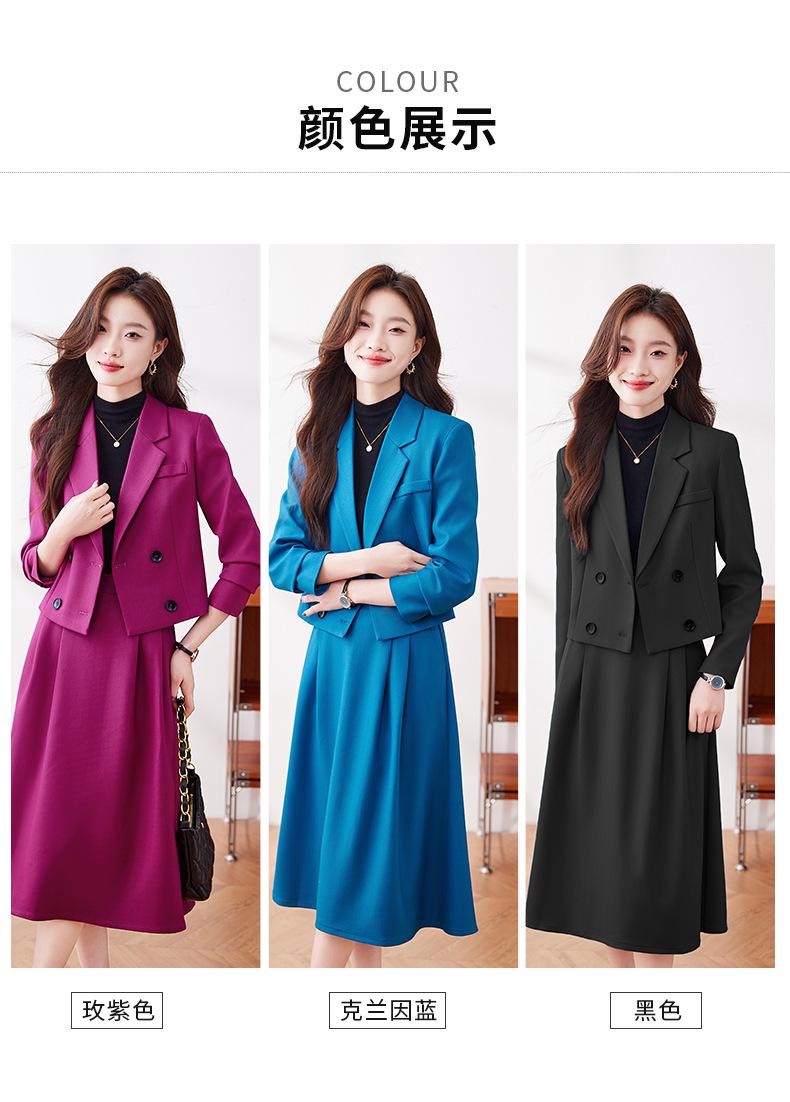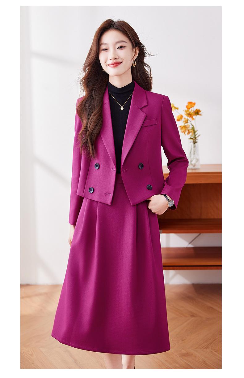 Traje de dos piezas para mujer, chaqueta, falda y cuello, color morado, manga larga, profesional, primavera y otoño de 2024