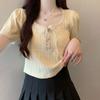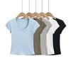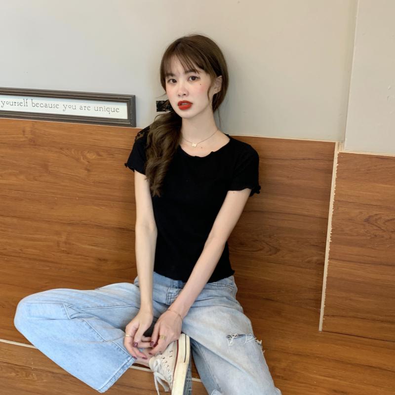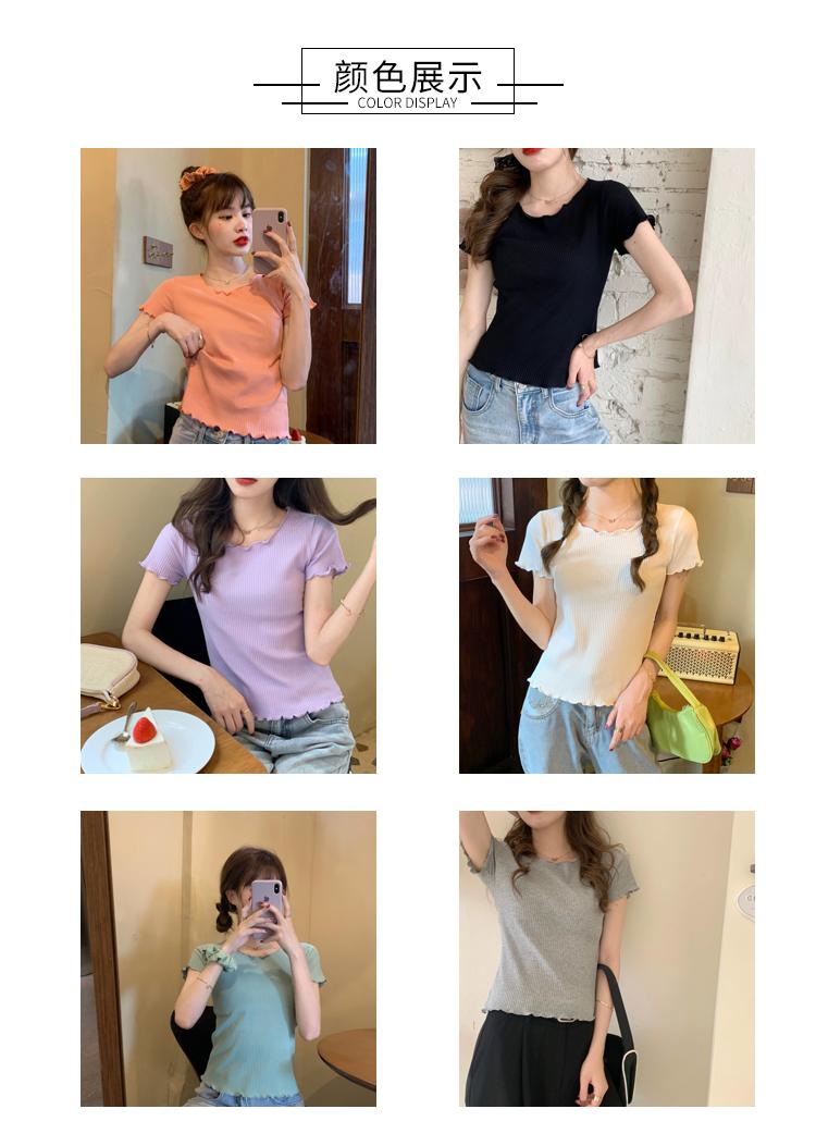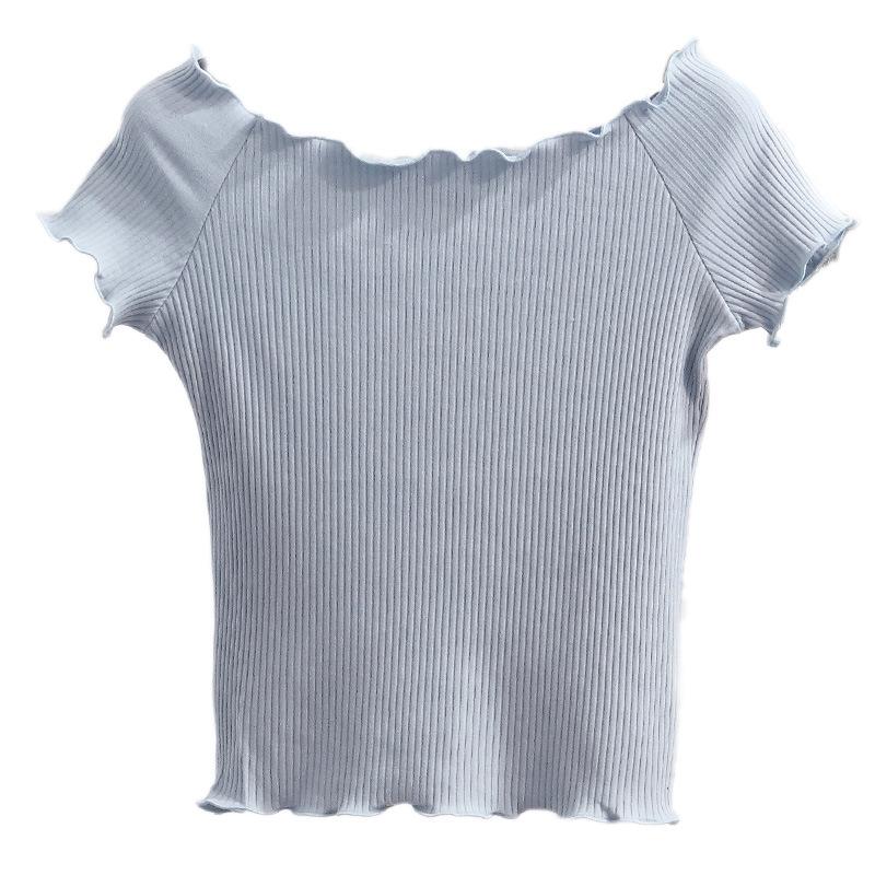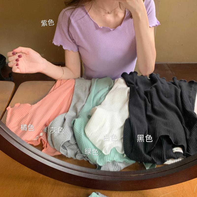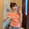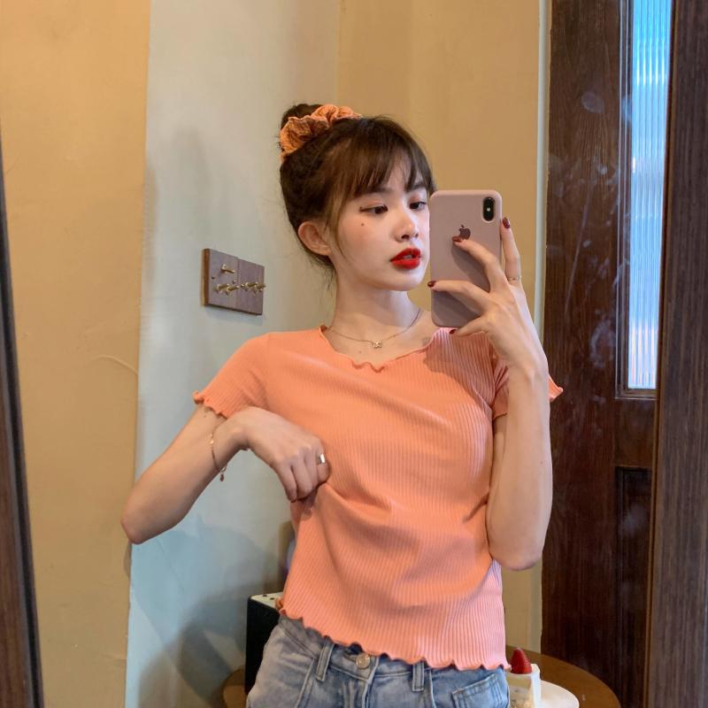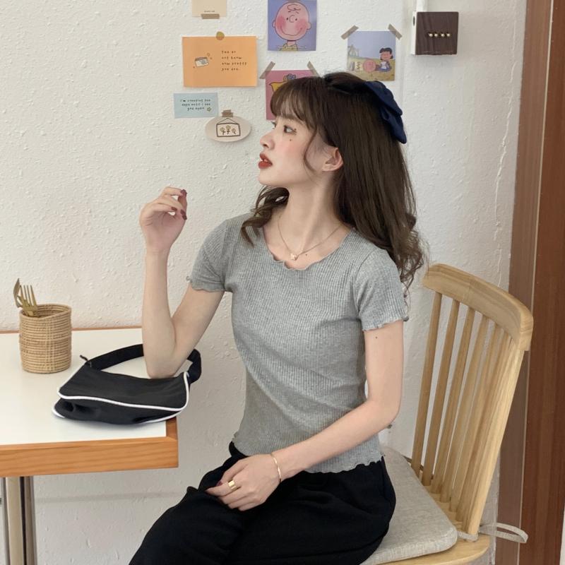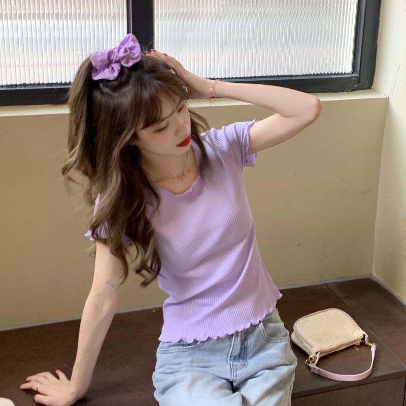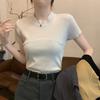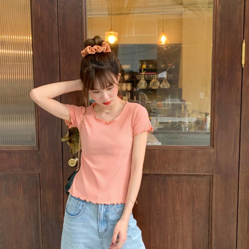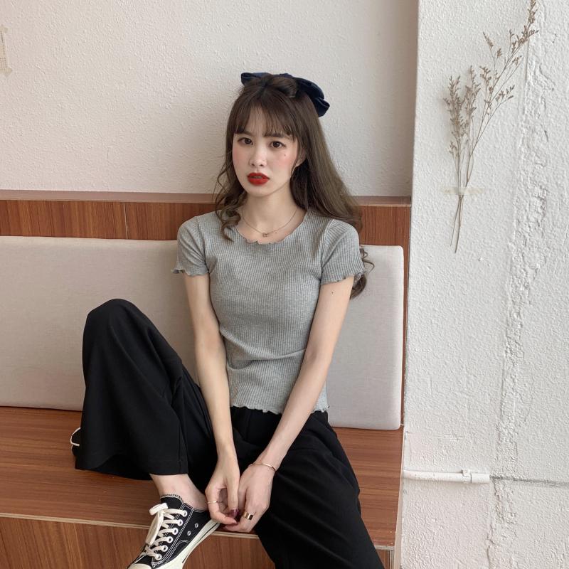 Camiseta Simple de Verano 2024 con Hongo Estilo Coreano Manga Corta Ajustada Tejida Camiseta Básica Top Delgado