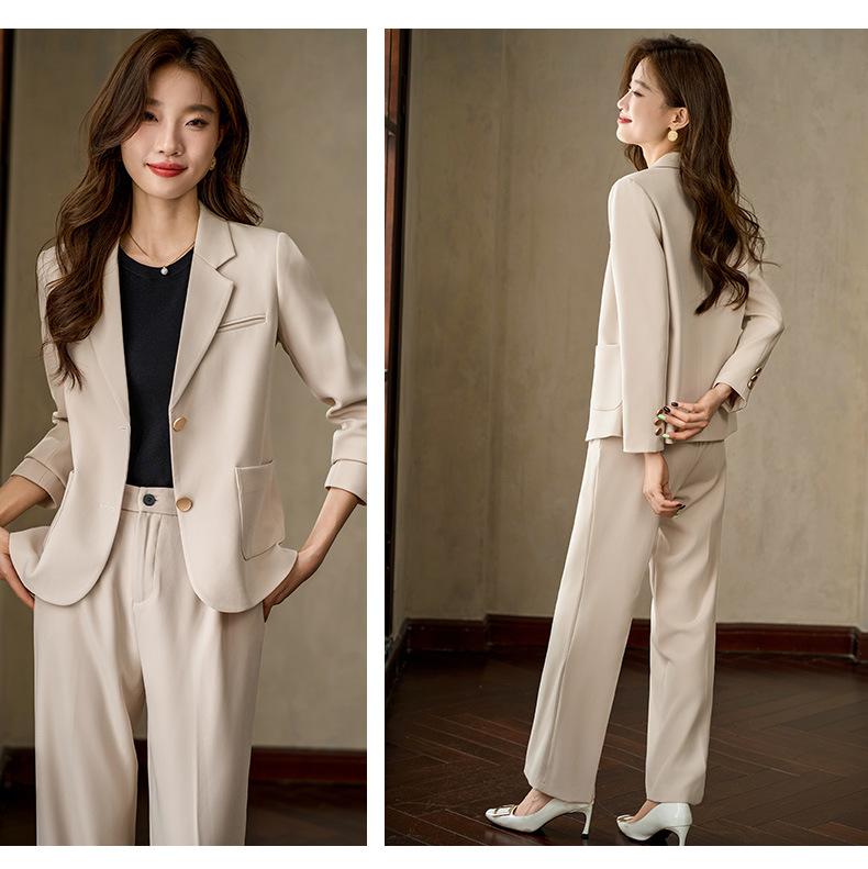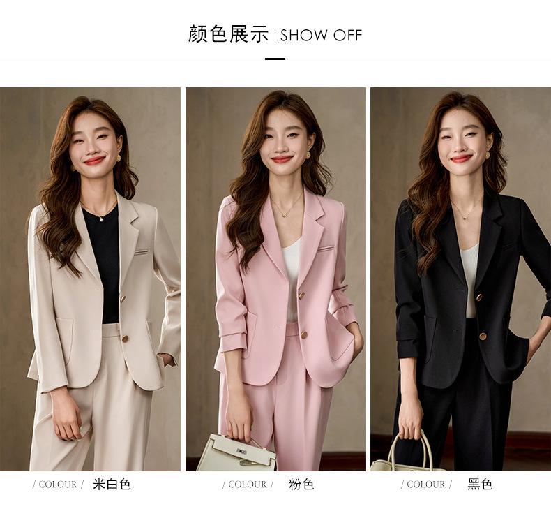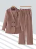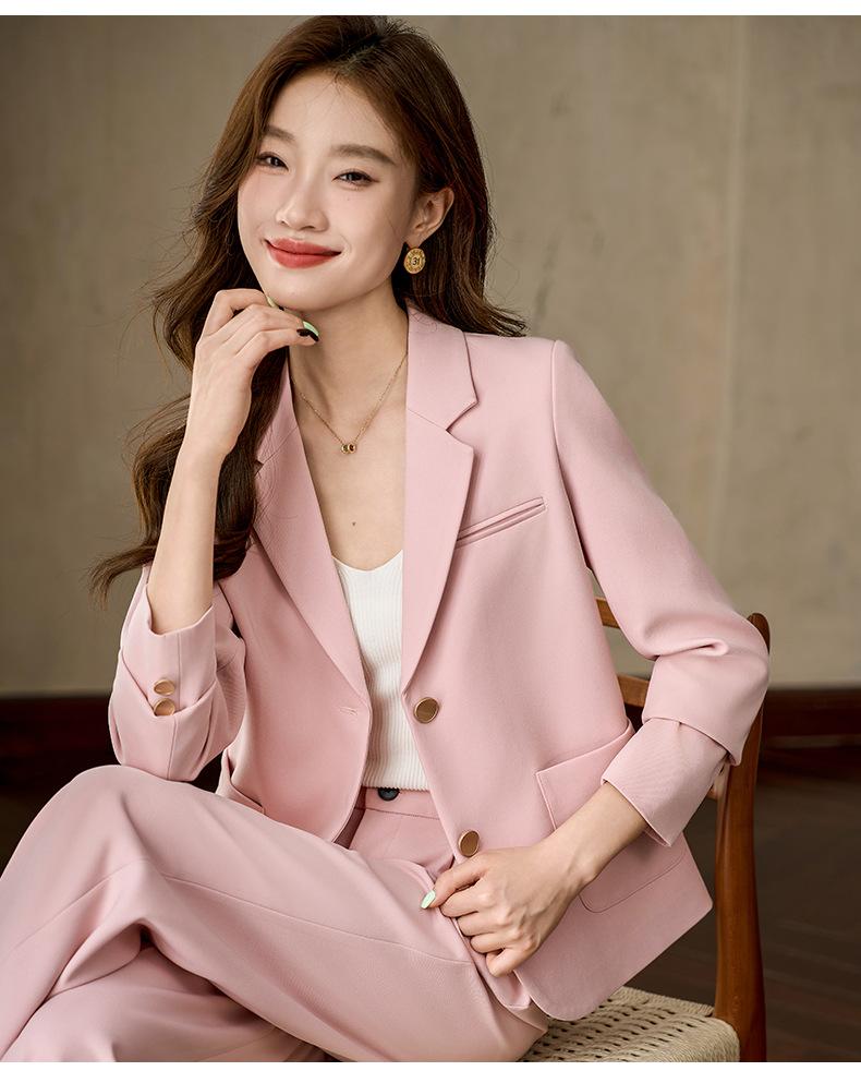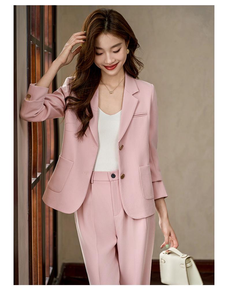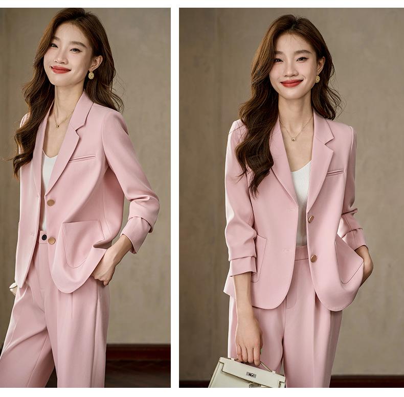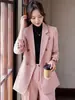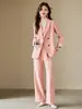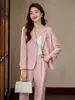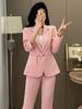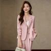 2024 Primavera Otoño e Invierno Nuevo Manga Larga Rosa Chaqueta Cuello Traje Pequeño Pantalones para Mujer Traje de Dos Piezas Elegante para Ir al Trabajo
