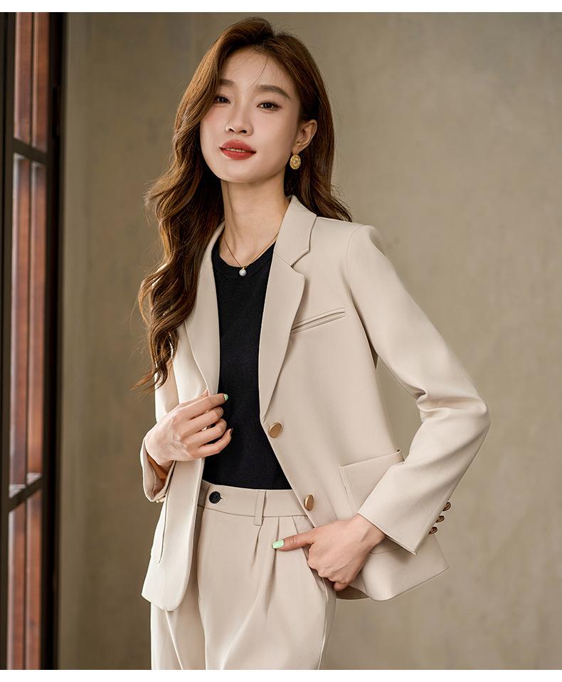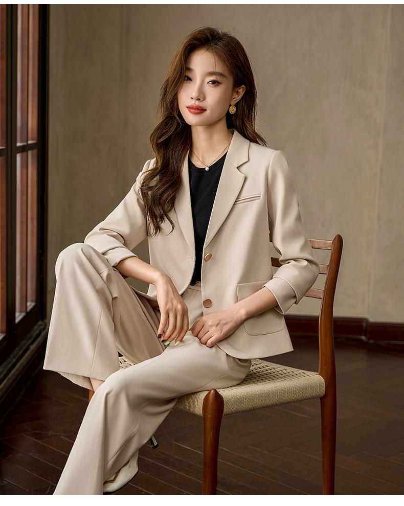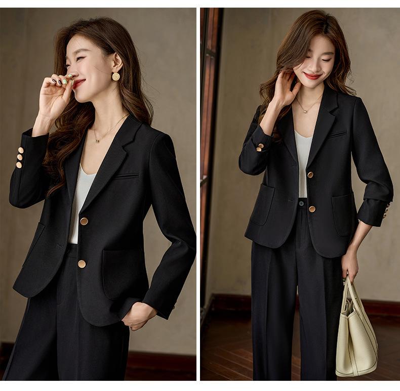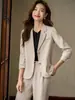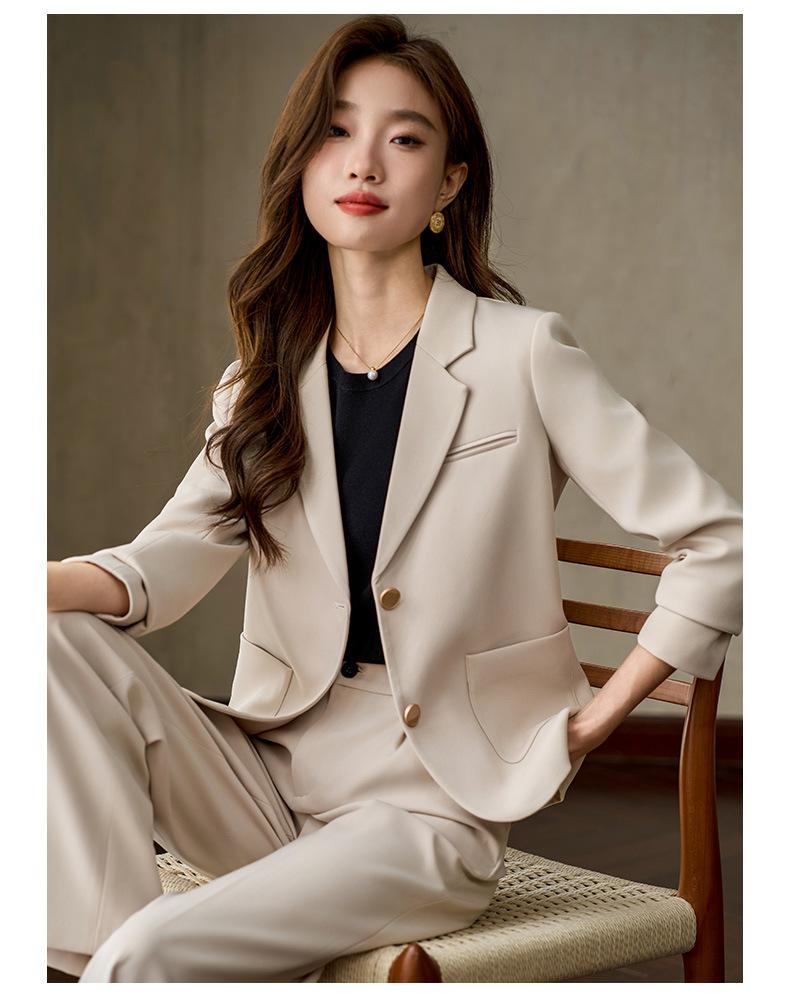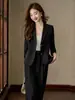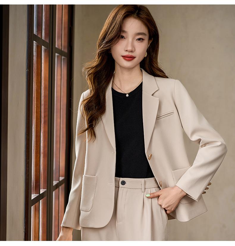 2024 Primavera Otoño e Invierno Nuevo Manga Larga Rosa Chaqueta Cuello Traje Pequeño Pantalones para Mujer Traje de Dos Piezas Elegante para Ir al Trabajo