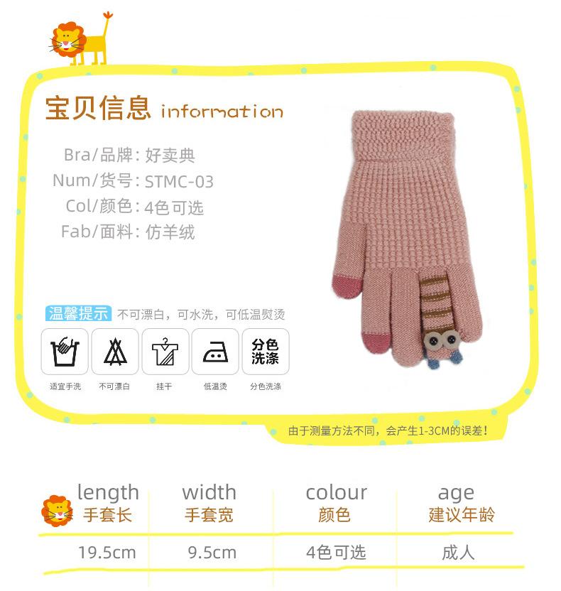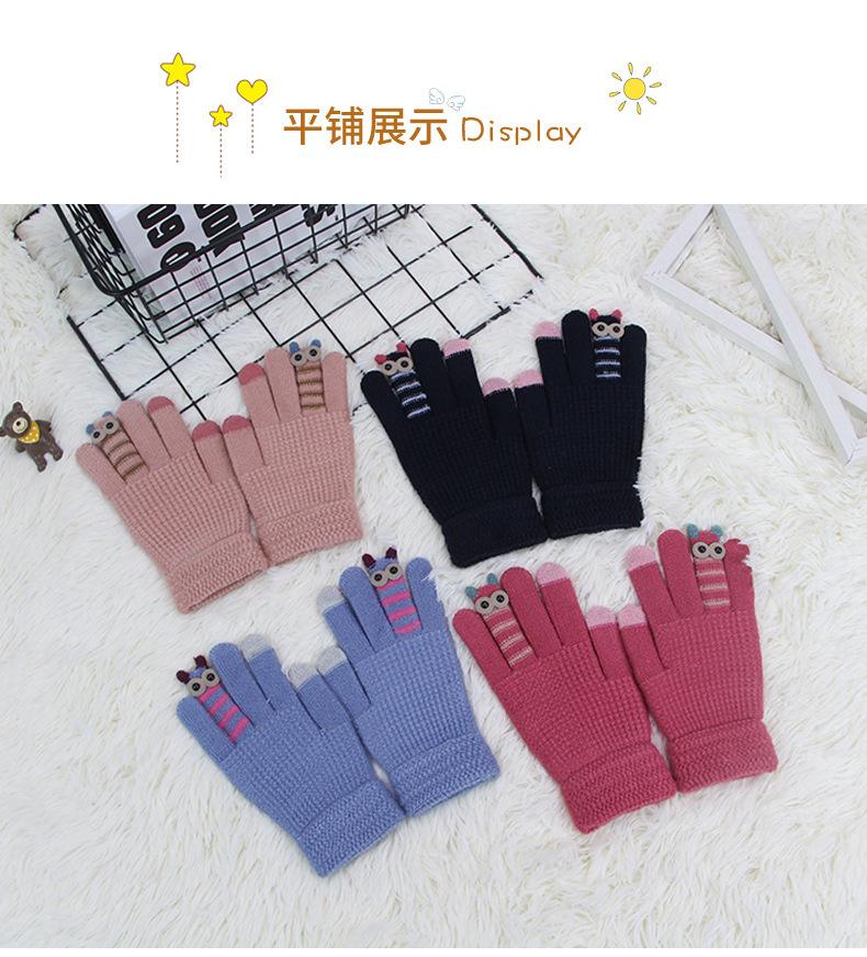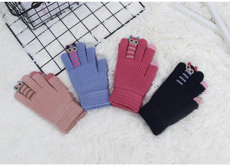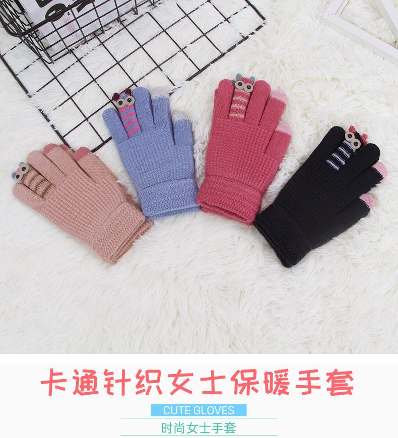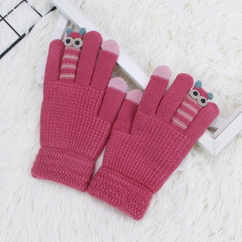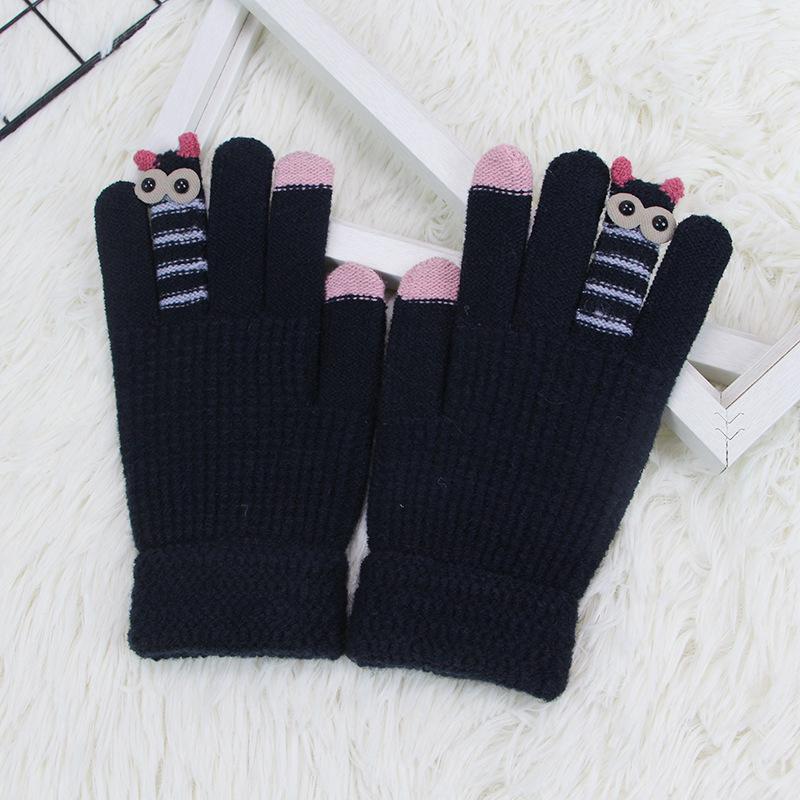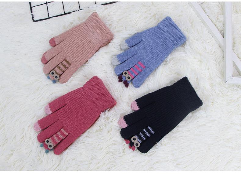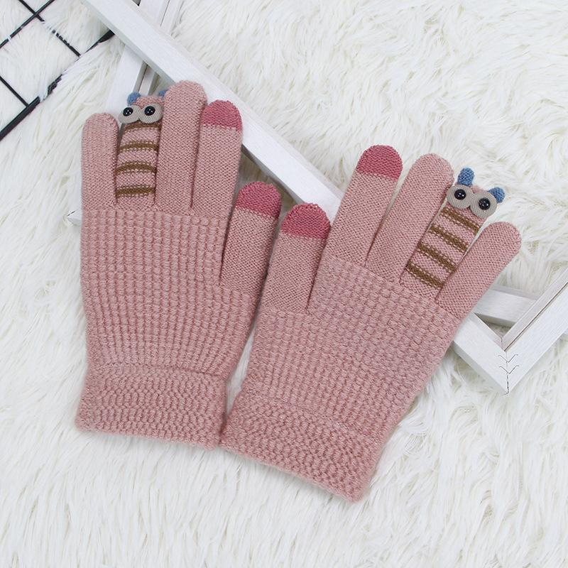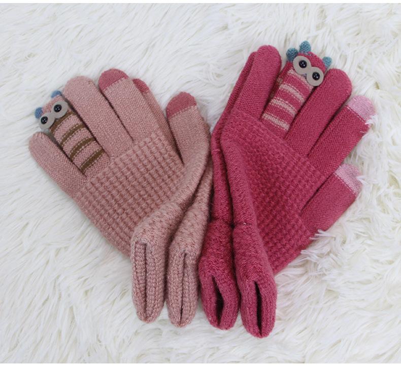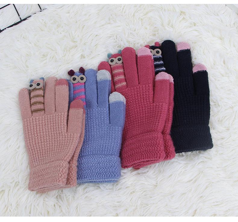 Guantes de jacquard para mujer, de invierno, cálidos, resistentes al frío, de punto, de lana, para estudiantes, con un bonito estilo de dibujos animados coreanos y japoneses.