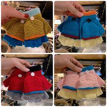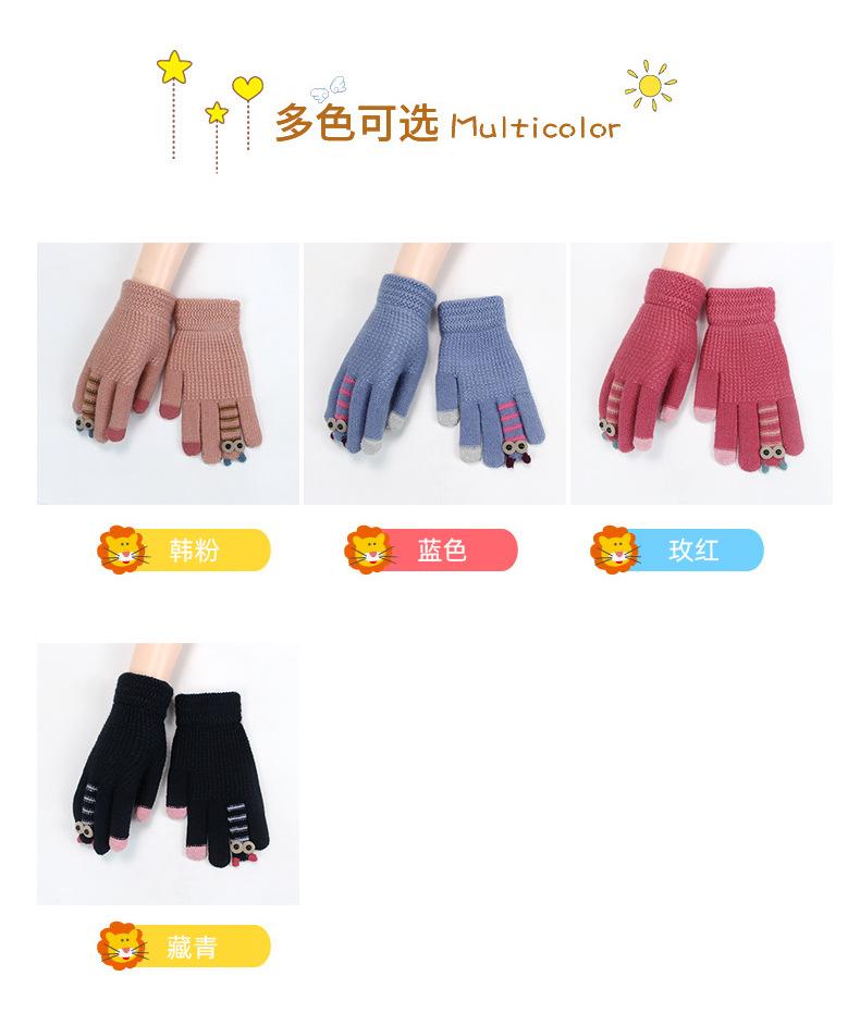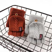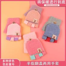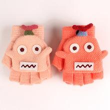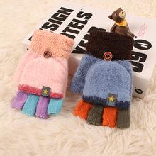 [3-8 años] Invierno cálido niños y niñas uso dual estudiantes de primaria dibujos animados medio dedo abatible guantes de punto sin dedos