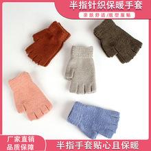 Guantes cálidos de punto de doble uso para otoño e invierno para niños, niños y niñas, niños de mediana edad, guantes de lana jacquard de medio dedo para estudiantes de primaria