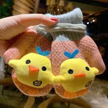 Nuevos guantes de otoño e invierno para niños con dedo, de pollo de dibujos animados para bebé, jardín de infancia, para colgar del cuello, más terciopelo grueso y cálido