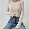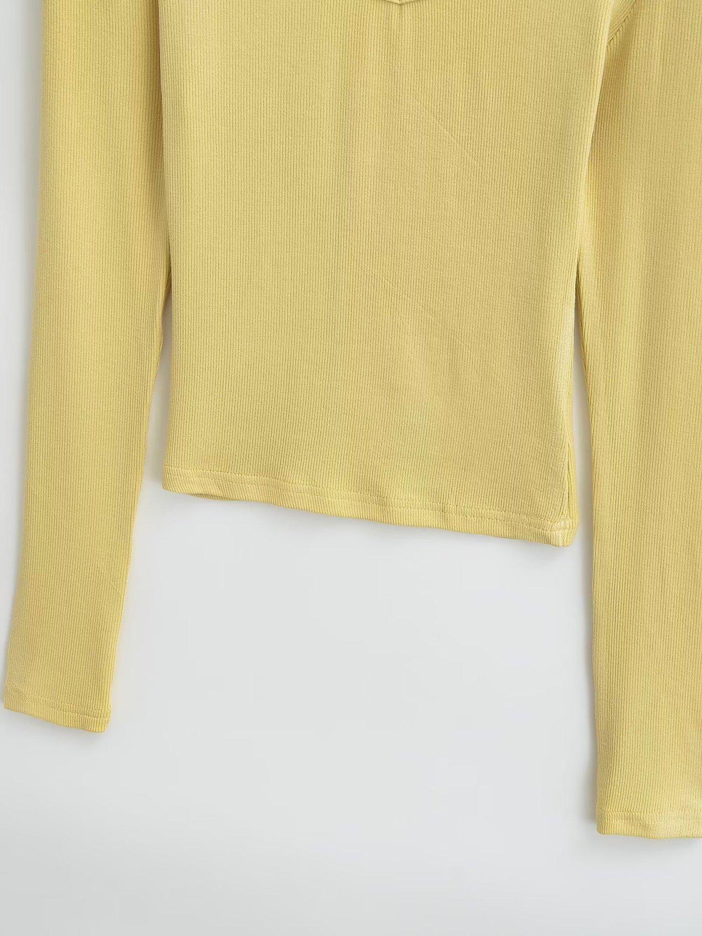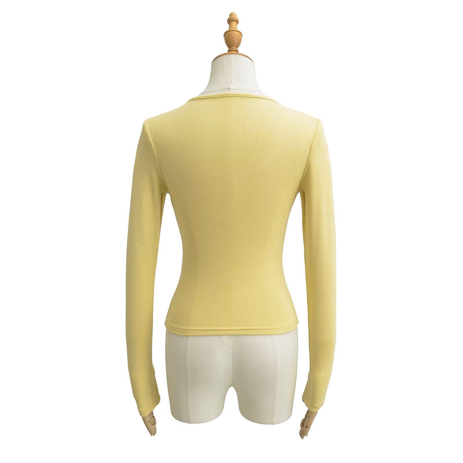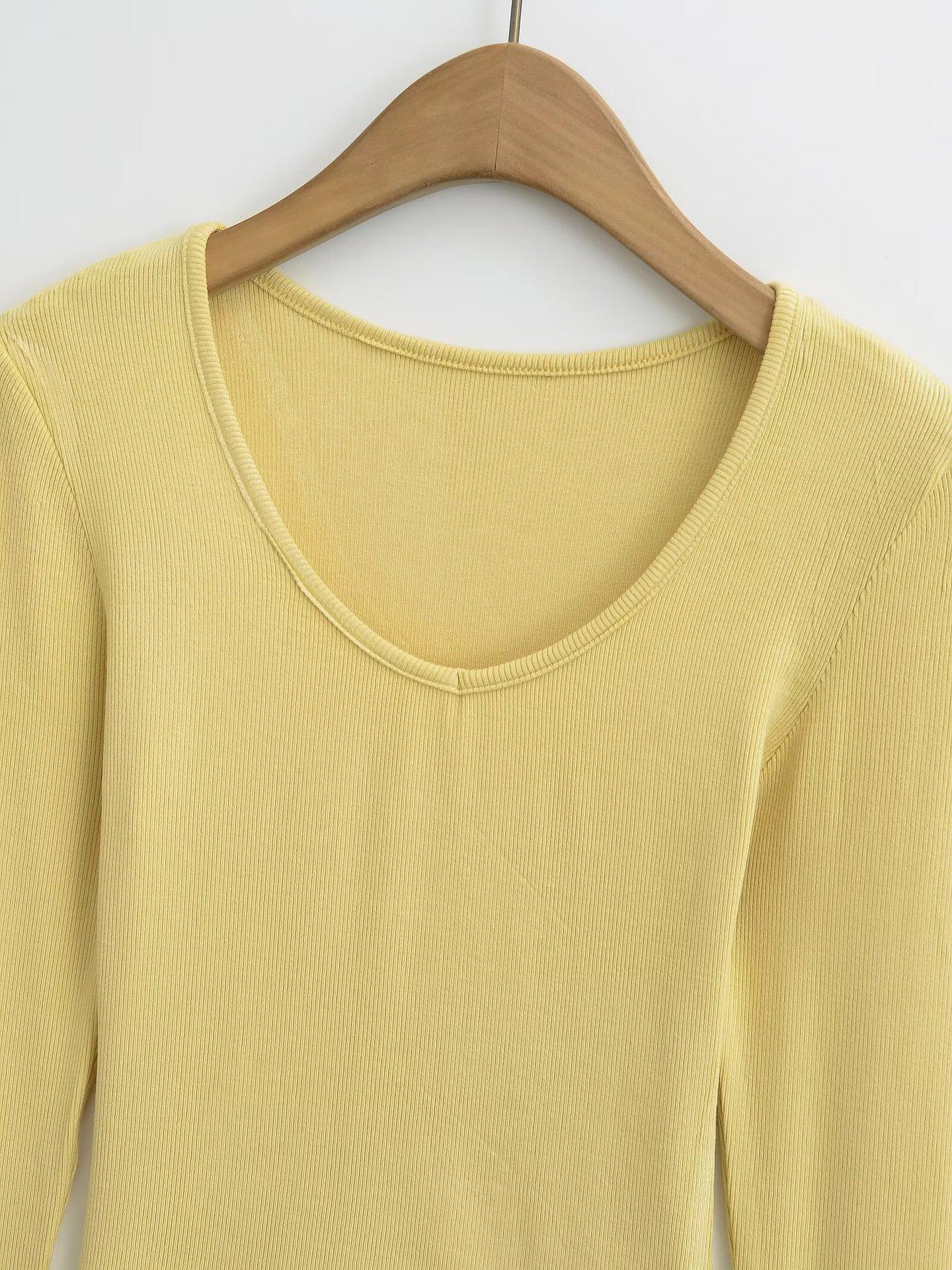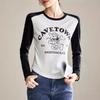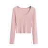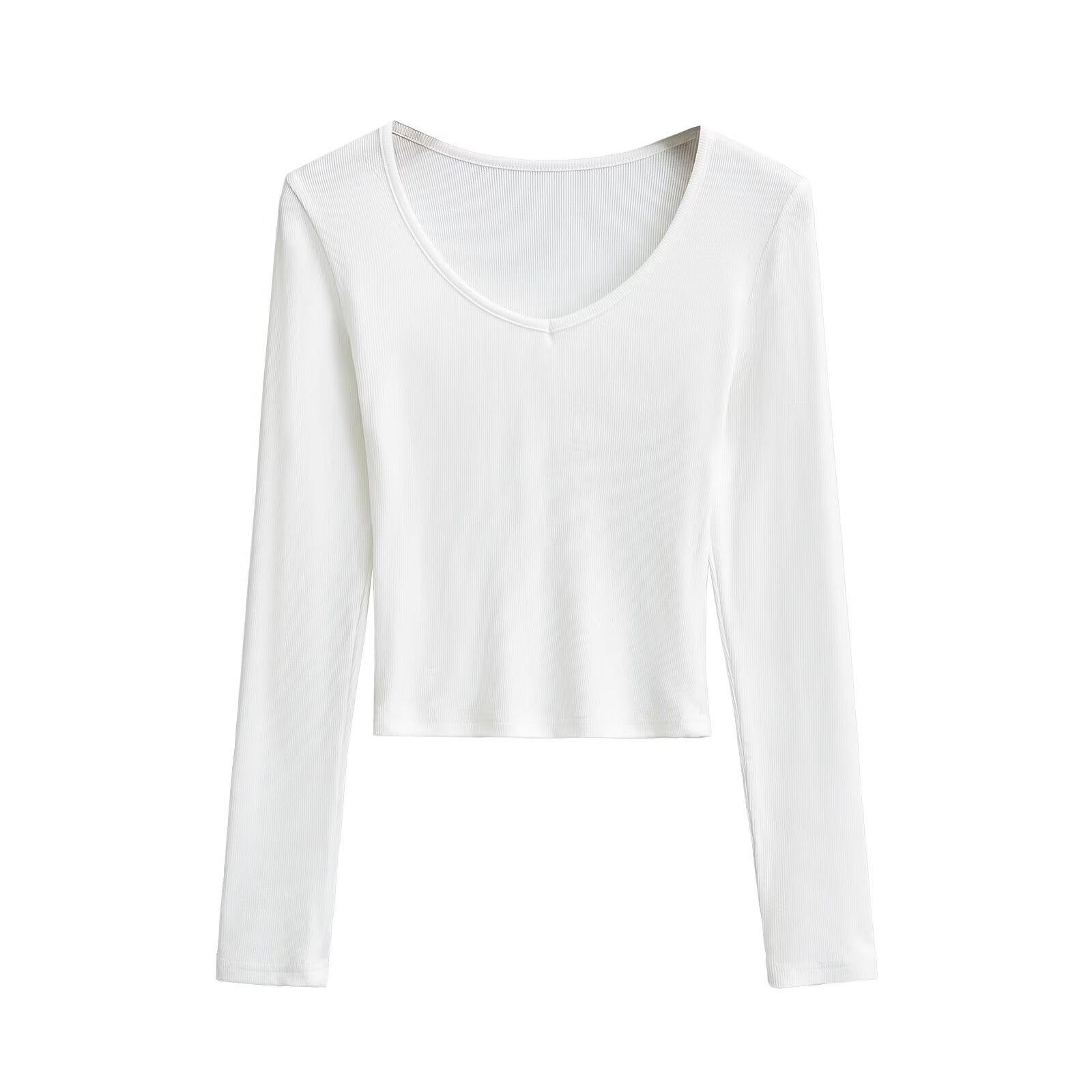 Camiseta de manga larga con cuello redondo para mujer, estilo europeo y americano, primavera 2025, color liso, ajustada, básica