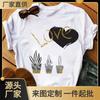 Moda Verano 2025 Camiseta de Manga Corta para Mujer Estampado de Leopardo de Dibujos Animados Corazón Camiseta Manga Corta Venta al por Mayor para Mujer