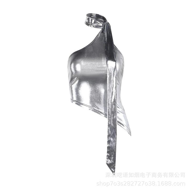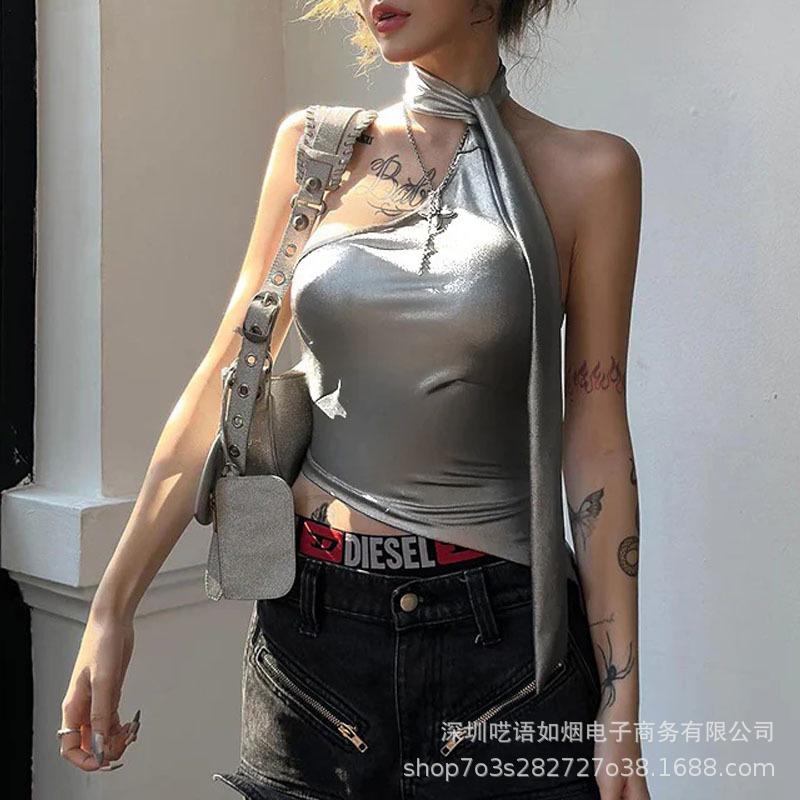 Camisola estilo halter de moda urbana personalizada, sexy, ajustada, de color sólido, transfronteriza, europea y americana, 2025