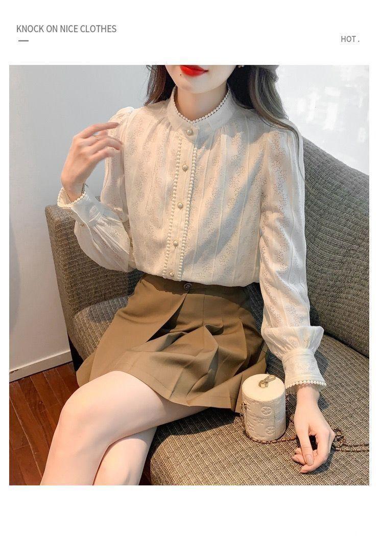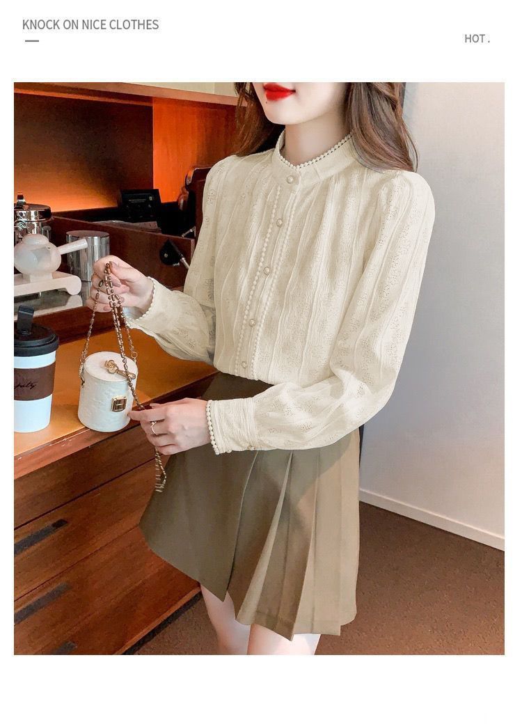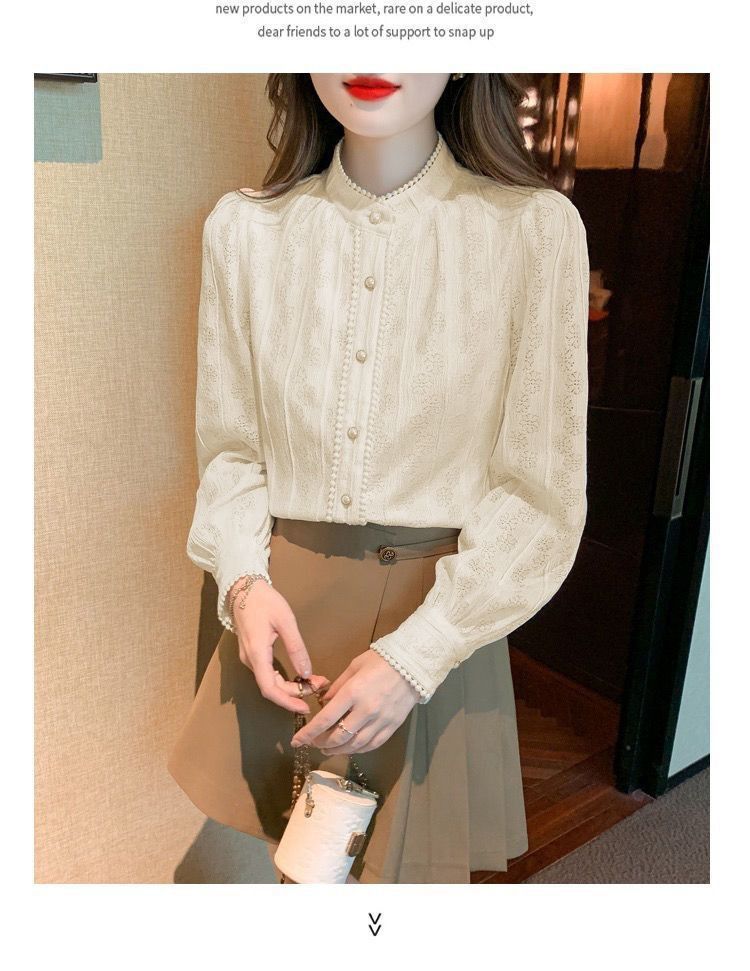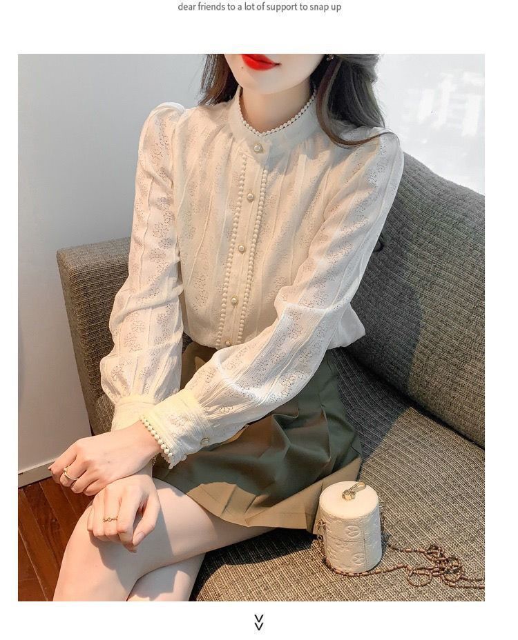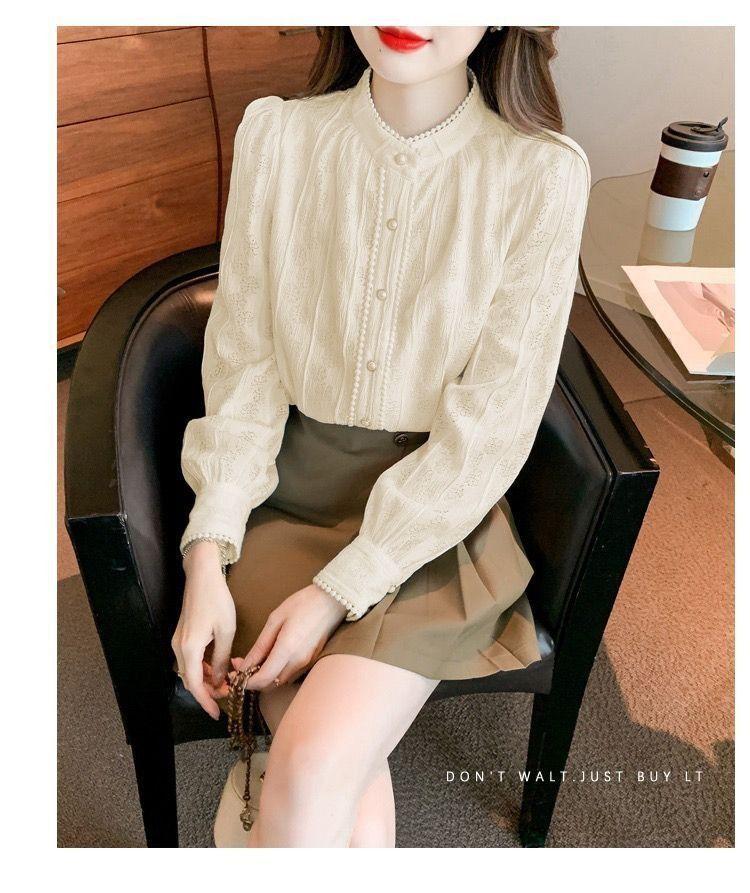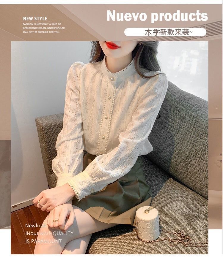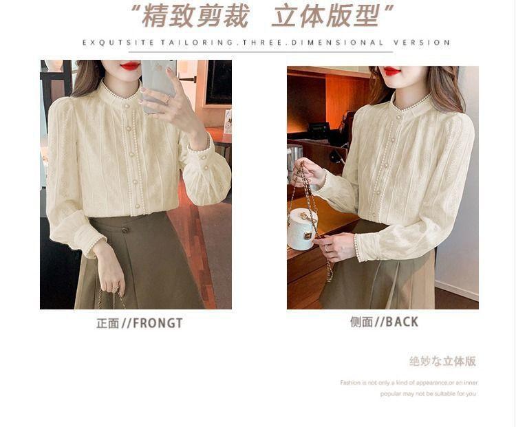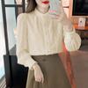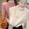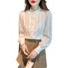 Camisa de encaje con forro polar y cuello medio alto para mujer, otoño e invierno 2025, nueva camisa interior de estilo extranjero, top de manga larga
