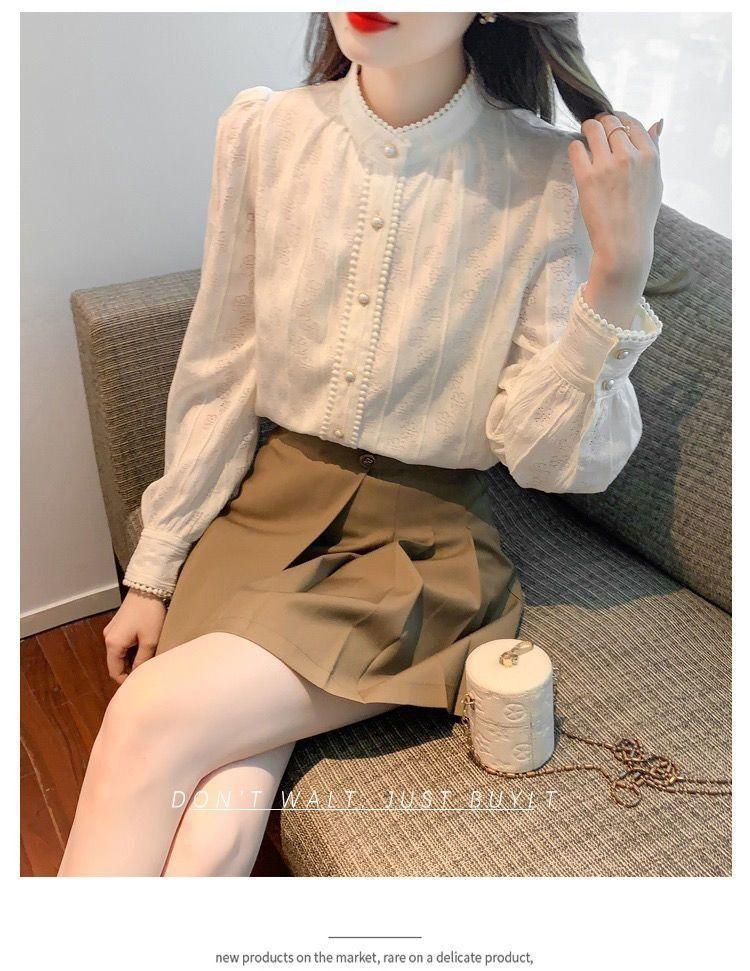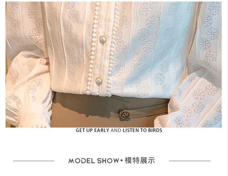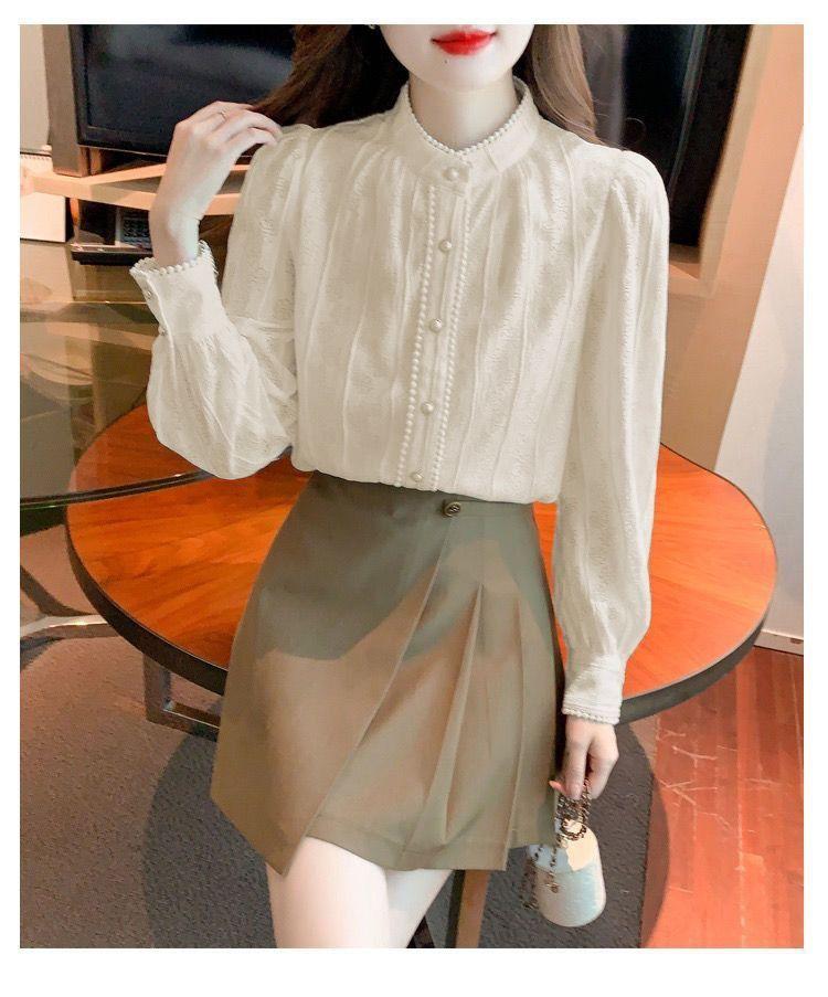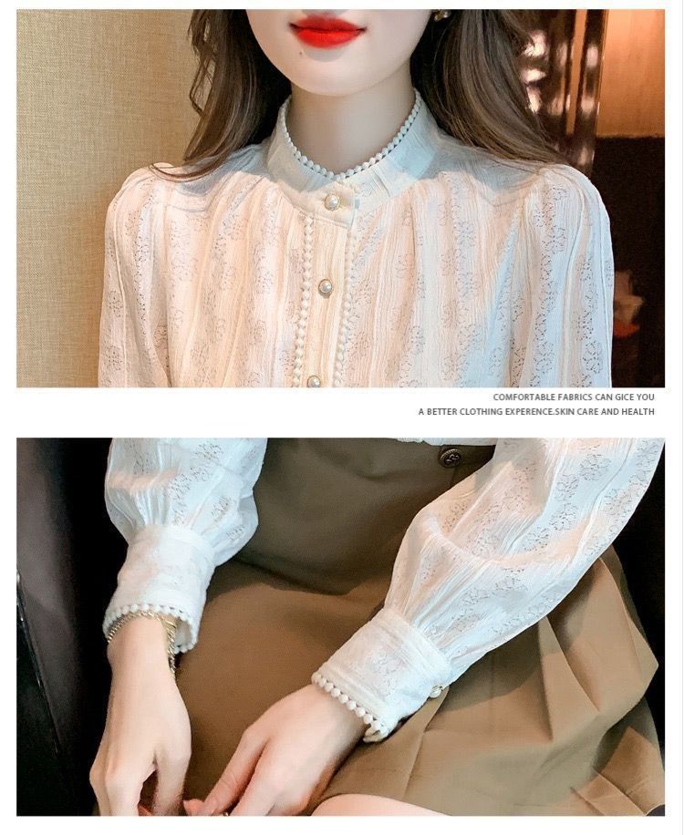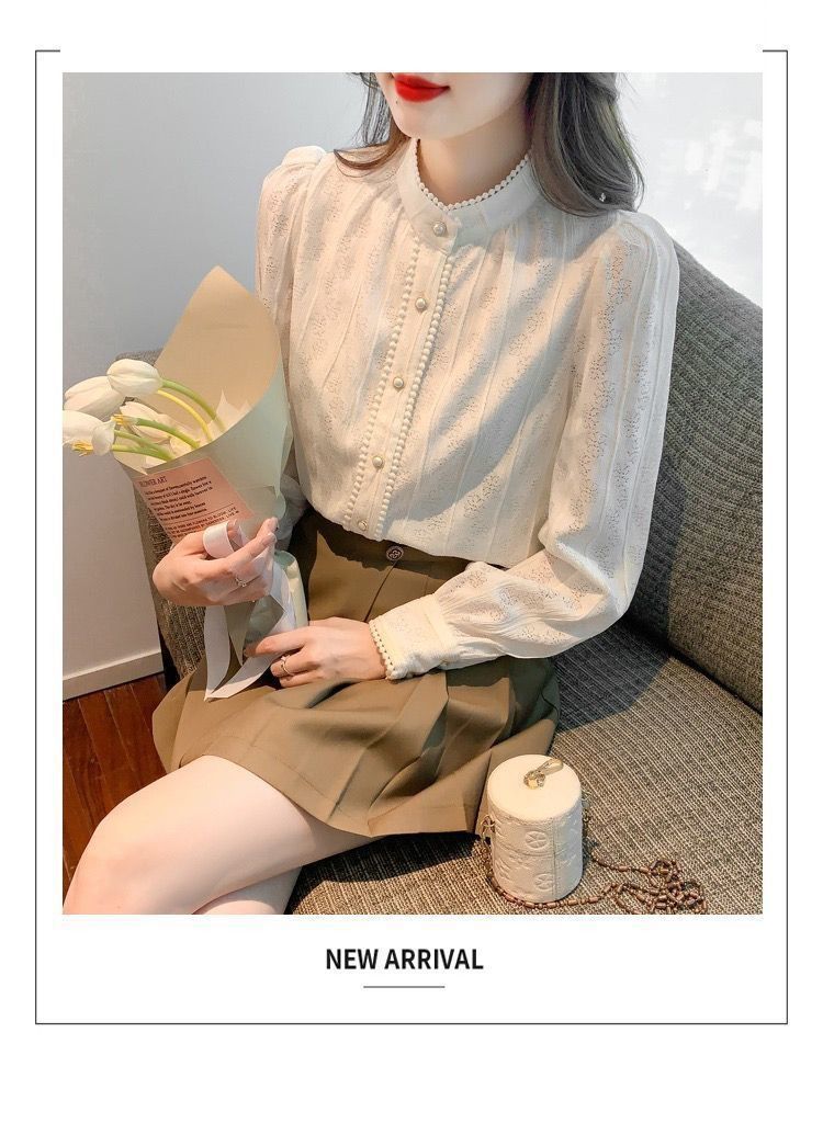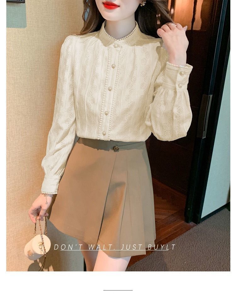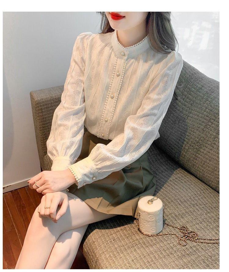 Camisa de encaje con forro polar y cuello medio alto para mujer, otoño e invierno 2025, nueva camisa interior de estilo extranjero, top de manga larga