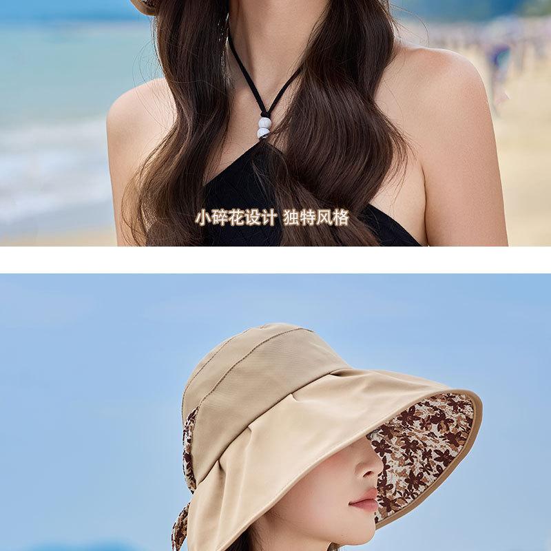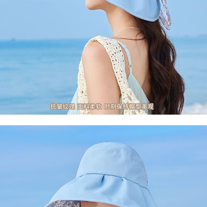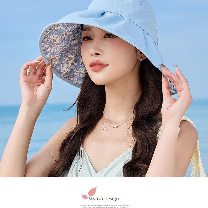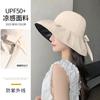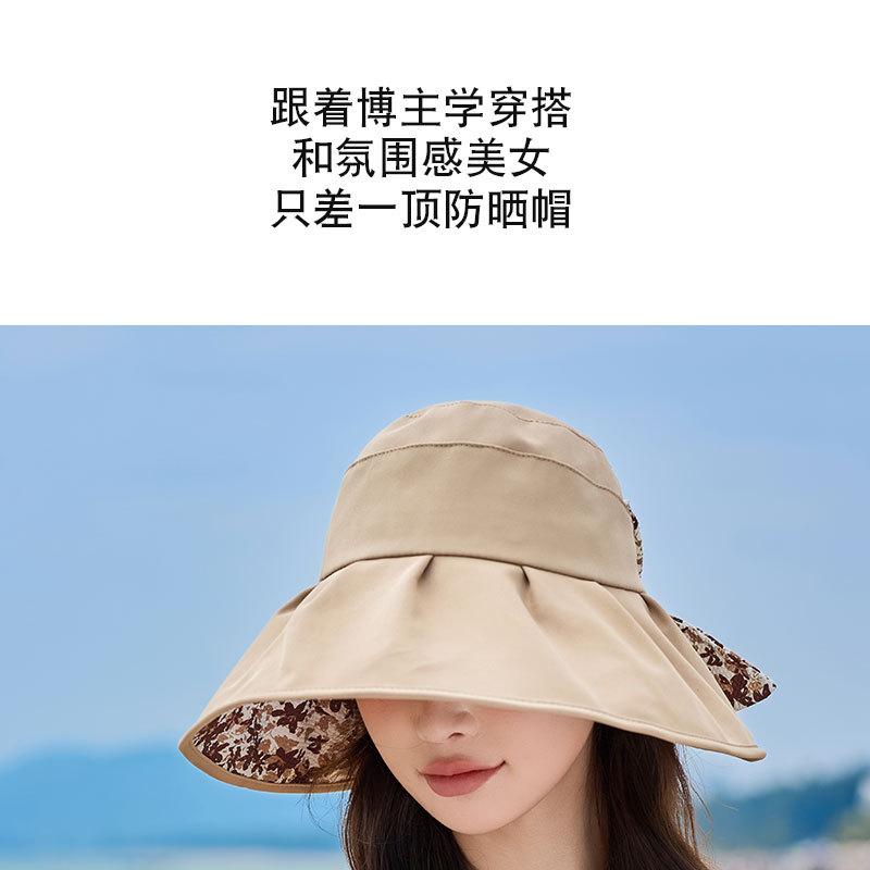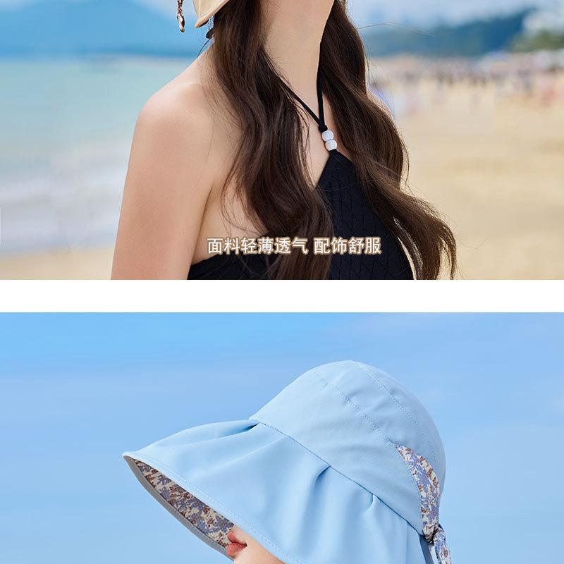 Sombrero de pescador con lazo y protector solar de doble capa UPF50 para mujer, de verano, con borde grande y protector solar UV