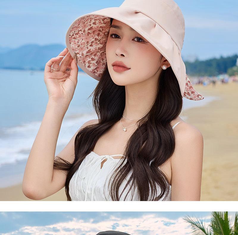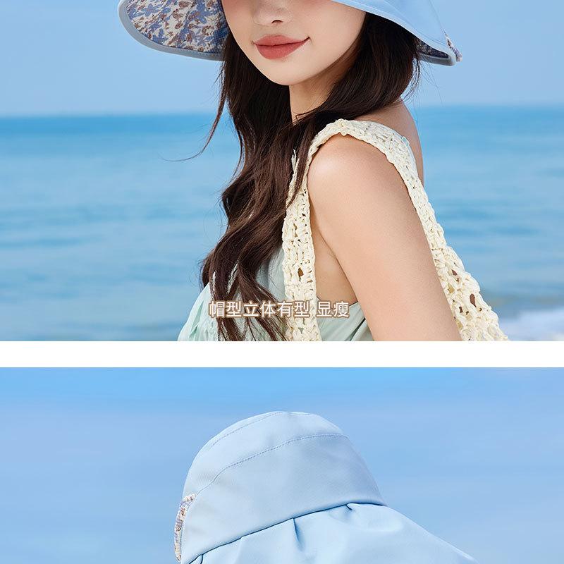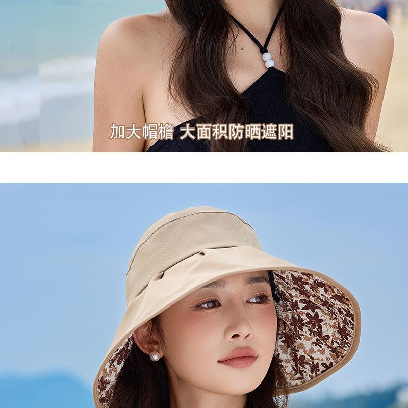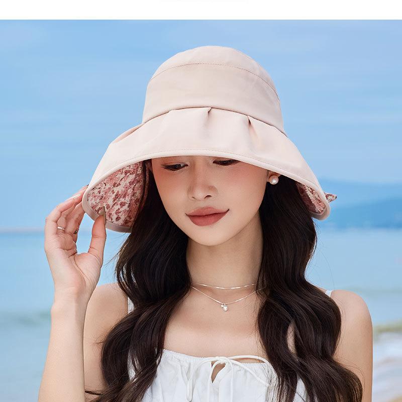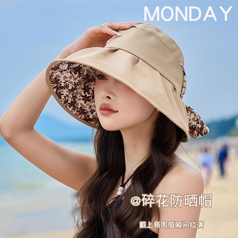 Sombrero de pescador con lazo y protector solar de doble capa UPF50 para mujer, de verano, con borde grande y protector solar UV