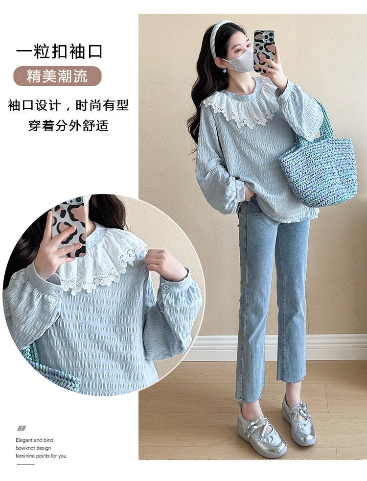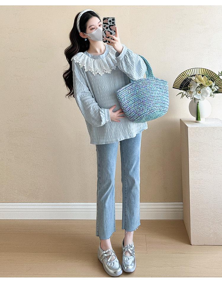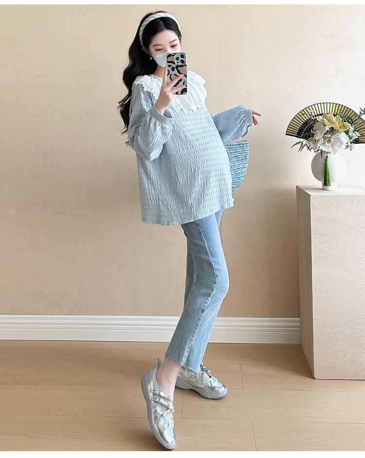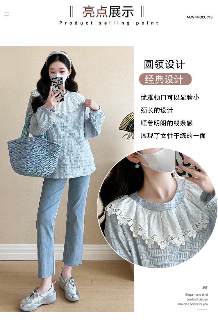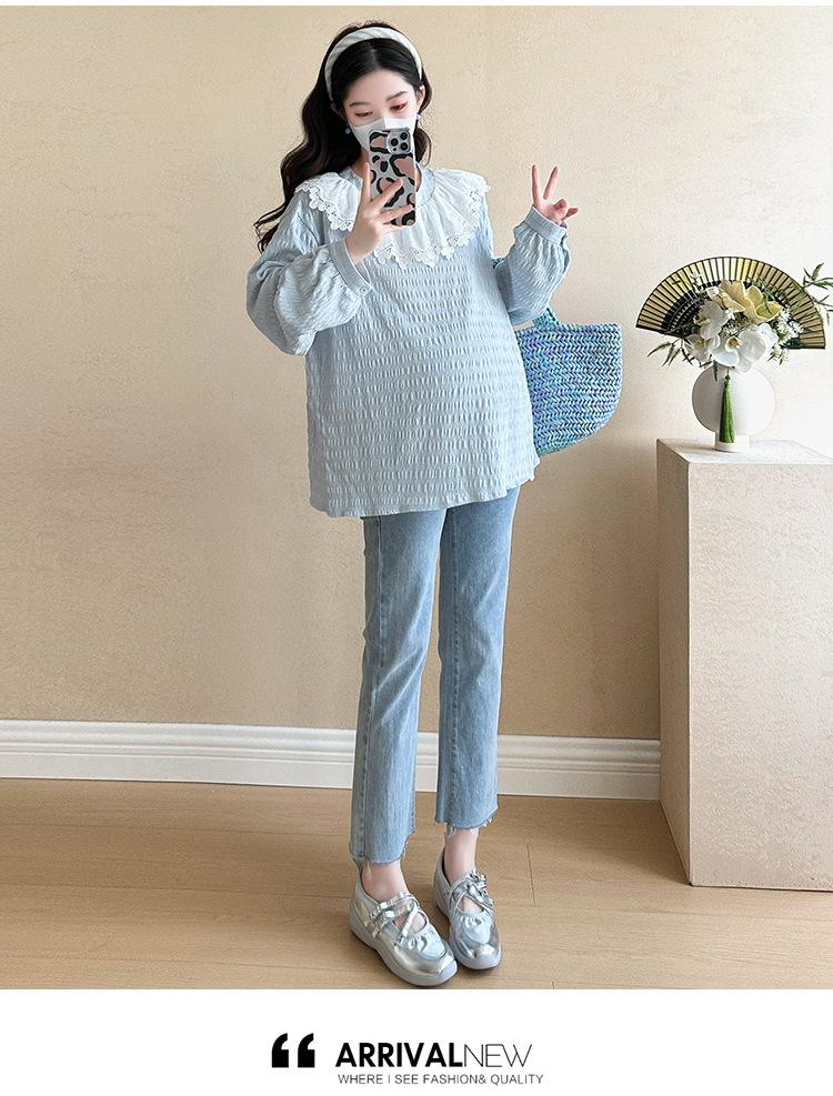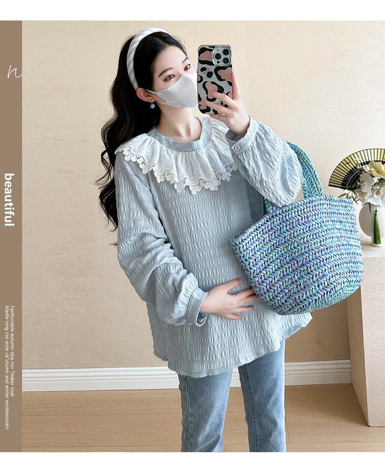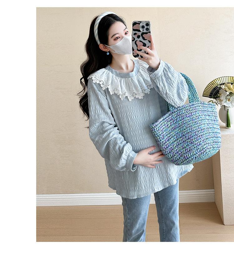 Top Nuevo de Primavera 2025 para Mujeres Embarazadas, Fresco con Costuras de Encaje, Camiseta Básica para Mujeres Embarazadas
