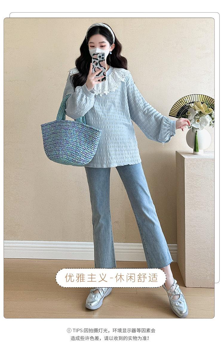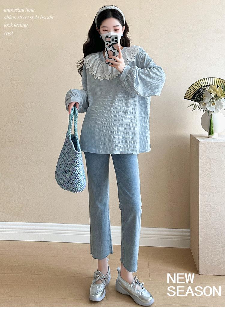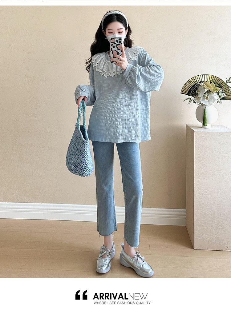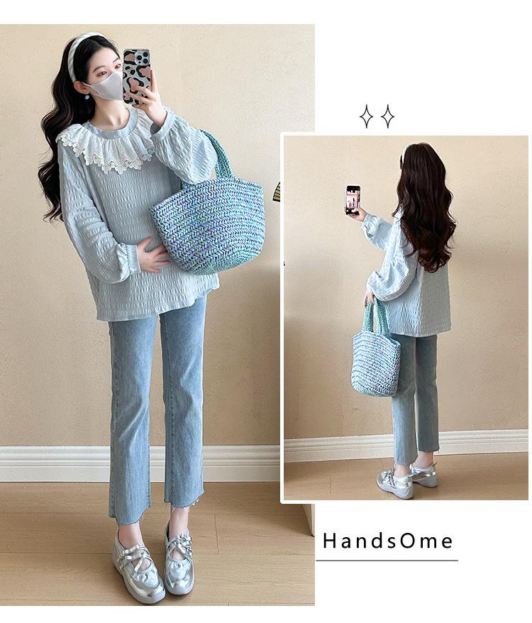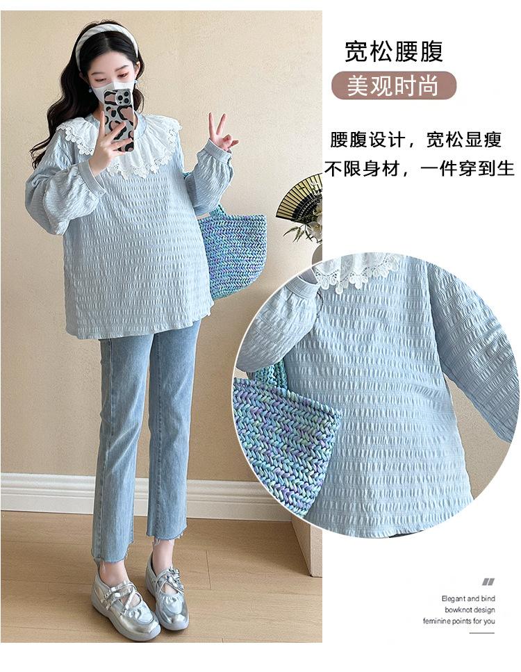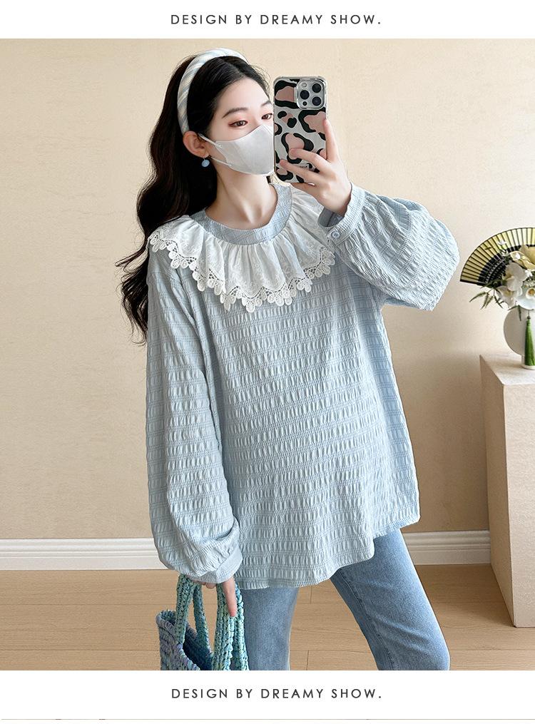 Top Nuevo de Primavera 2025 para Mujeres Embarazadas, Fresco con Costuras de Encaje, Camiseta Básica para Mujeres Embarazadas