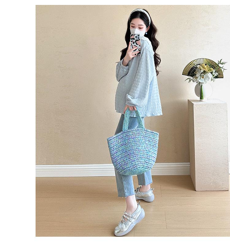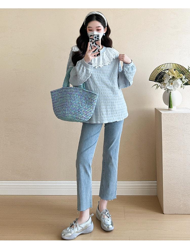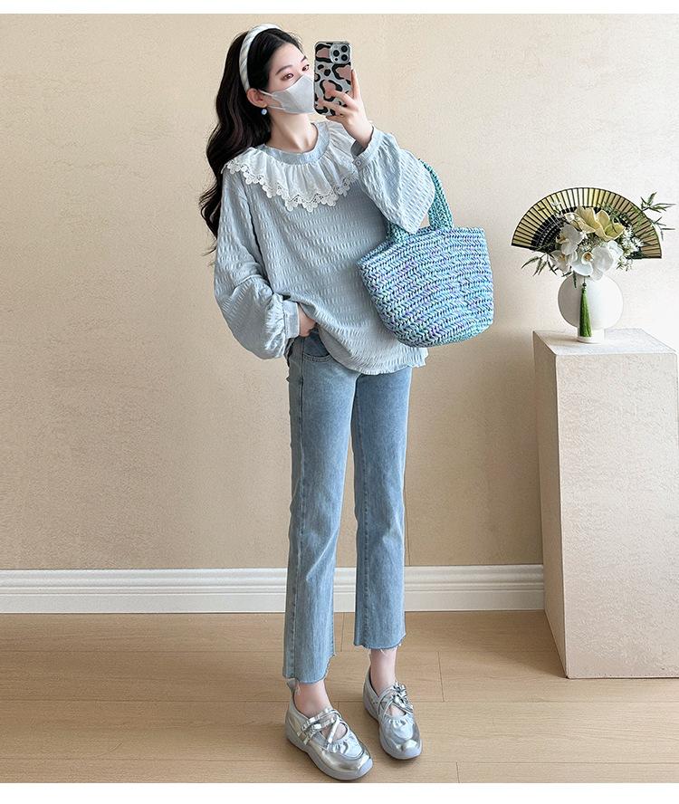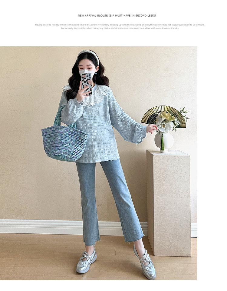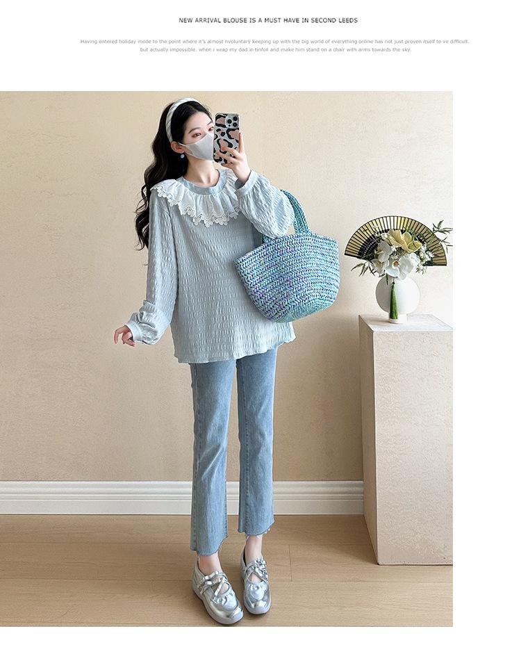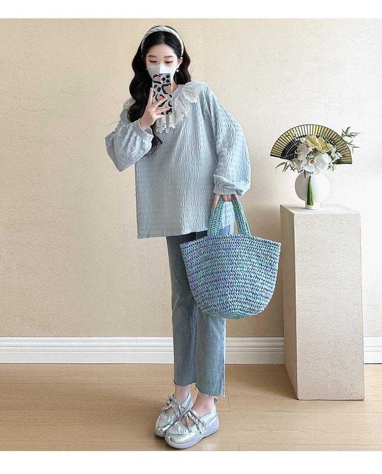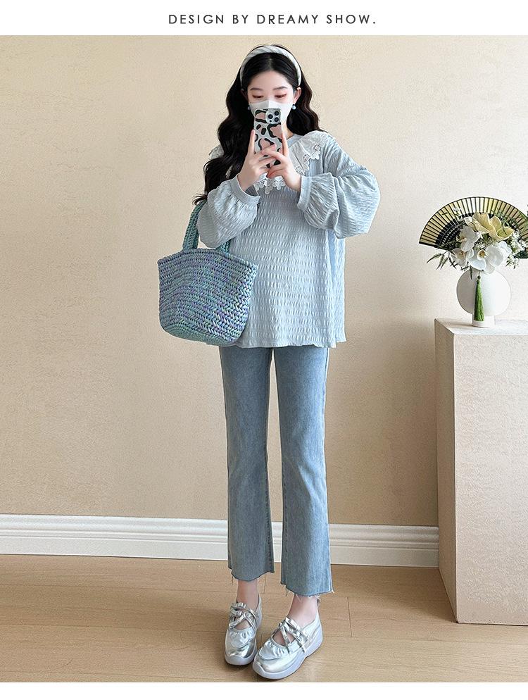 Top Nuevo de Primavera 2025 para Mujeres Embarazadas, Fresco con Costuras de Encaje, Camiseta Básica para Mujeres Embarazadas