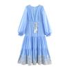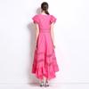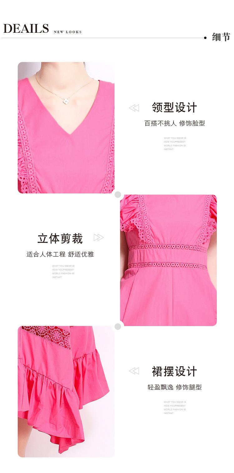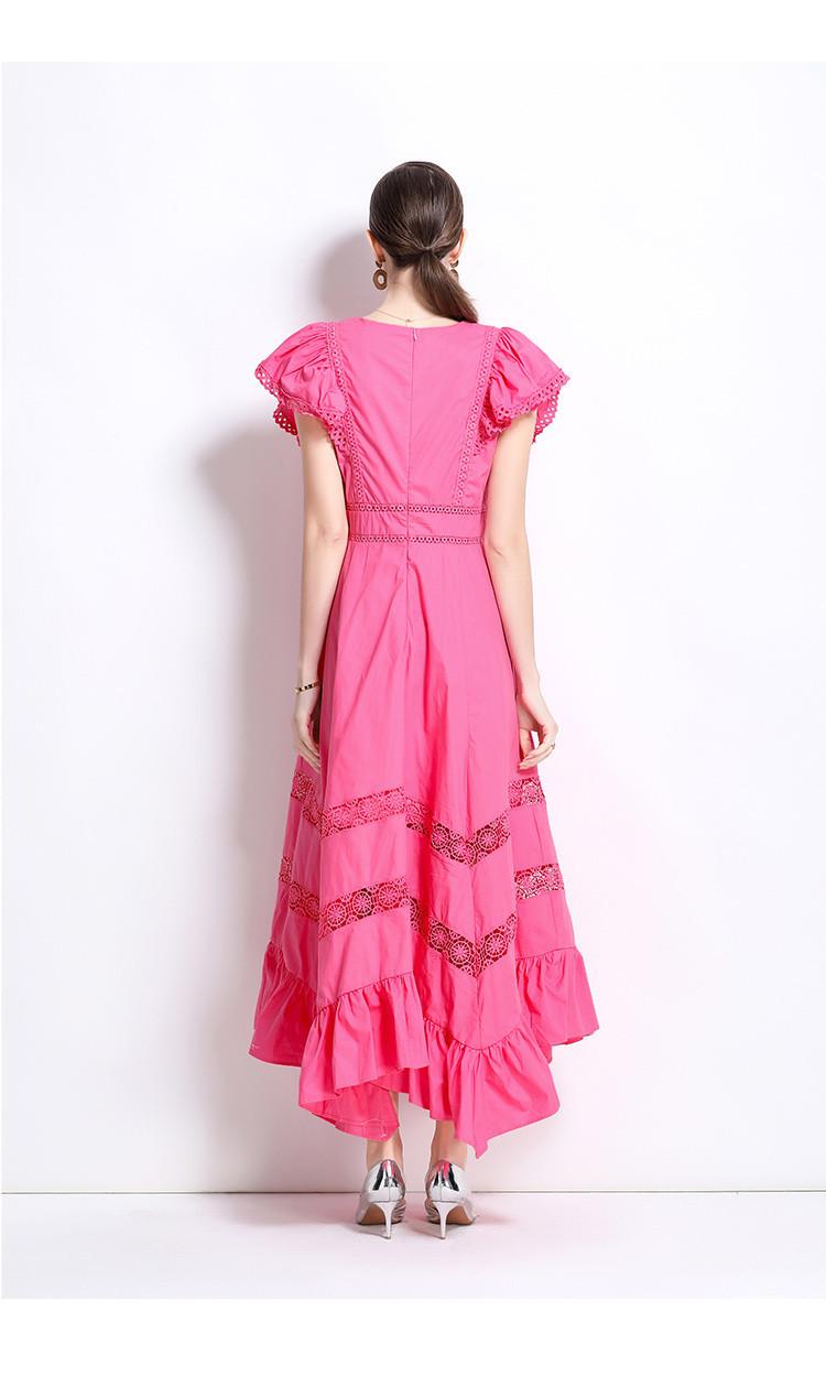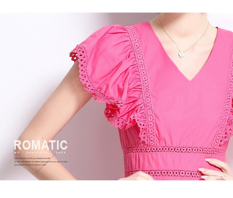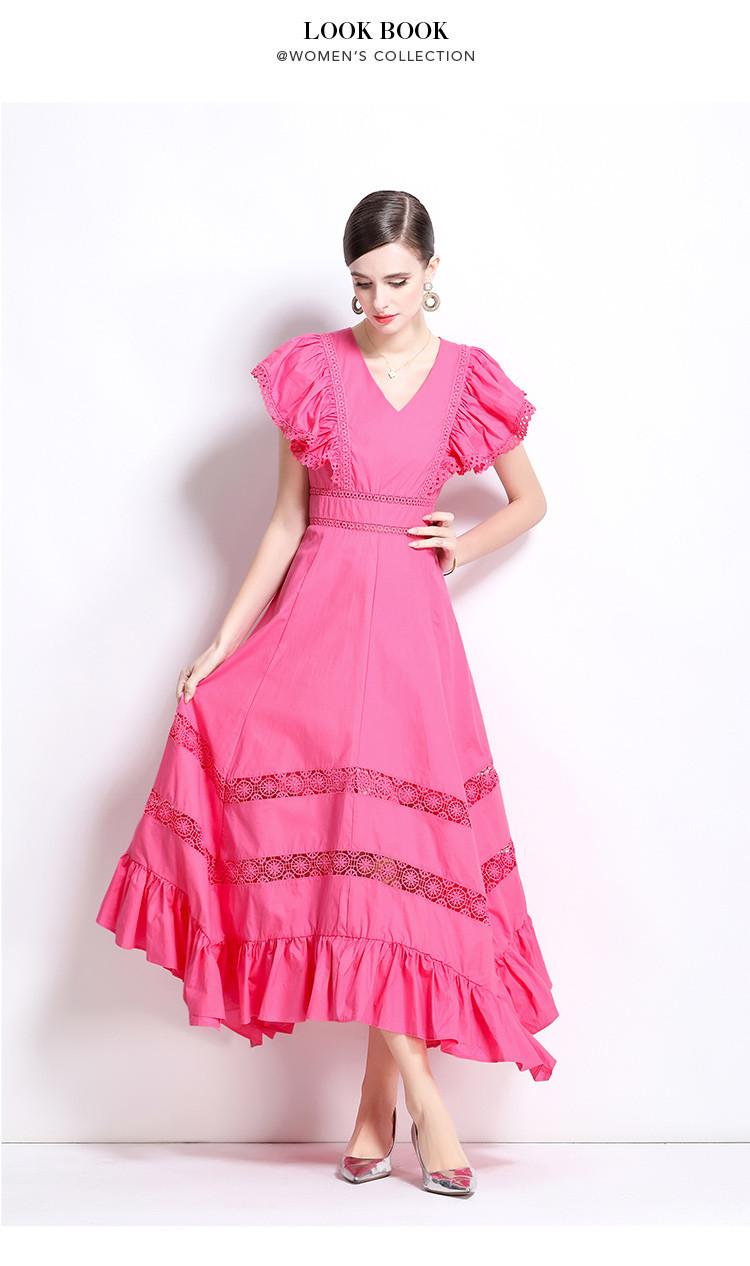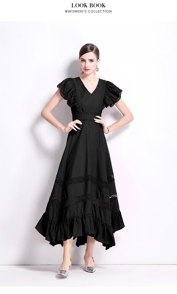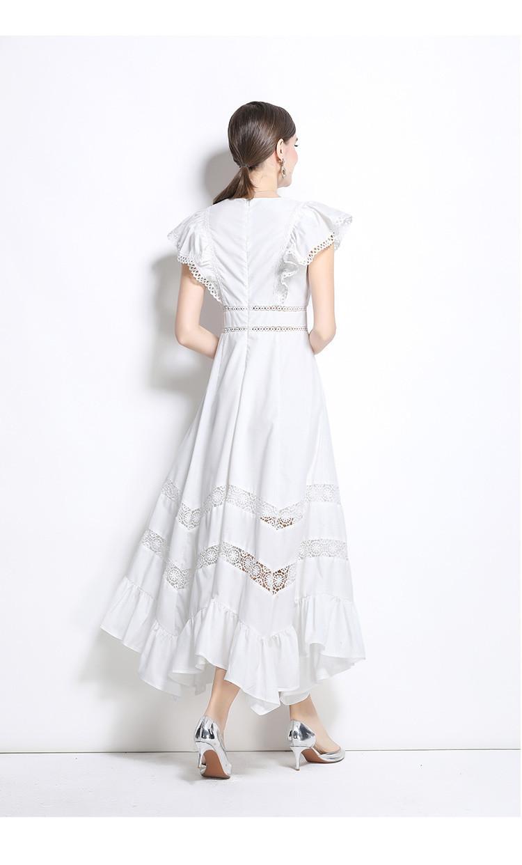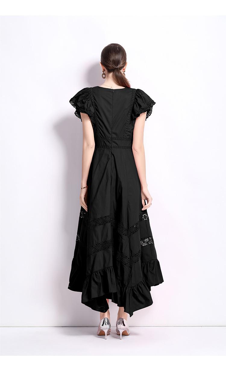 Vestido sexy temperamental transfronterizo europeo y americano estilo vacacional cuello en V manga volada encaje calado vestido