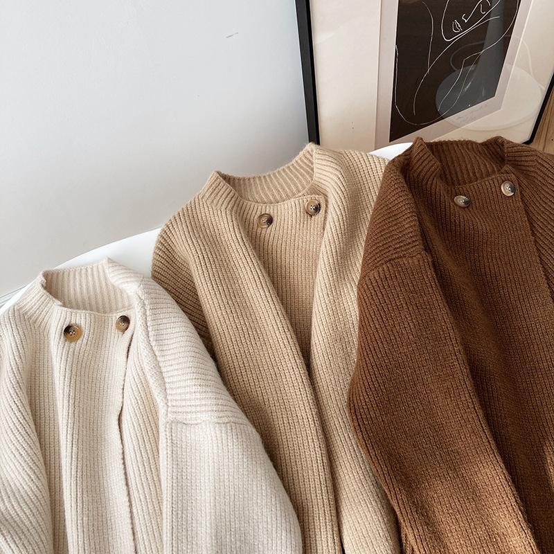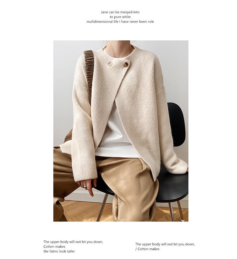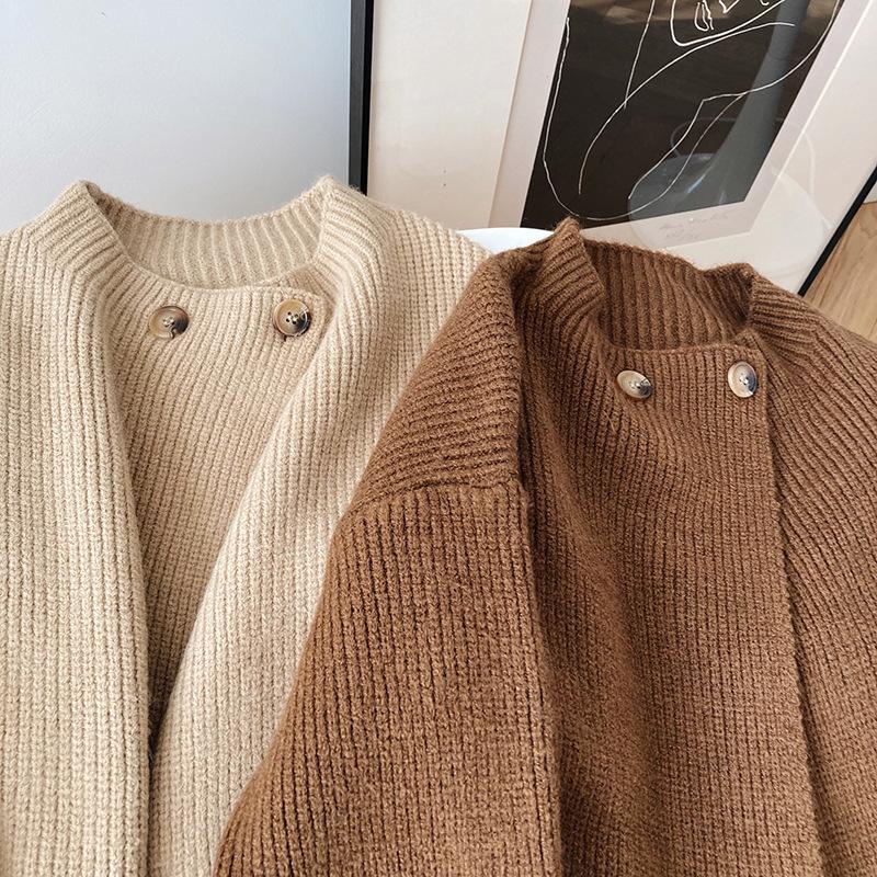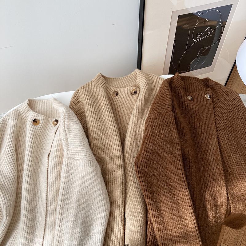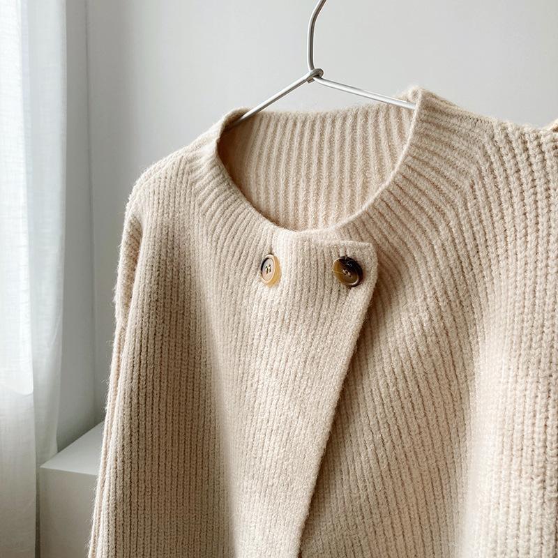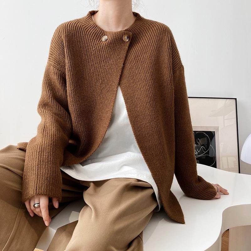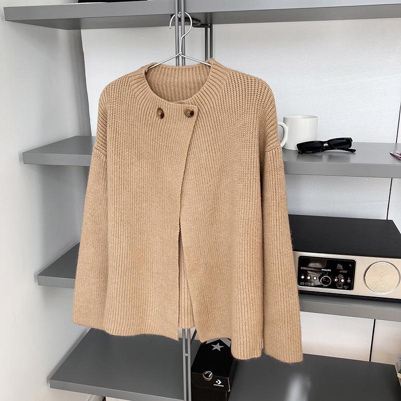 Cárdigan de punto con botones y cuello redondo estilo coreano para mujer, primavera y otoño 2025, nuevo estilo perezoso, suéter informal sencillo, moda para mujer