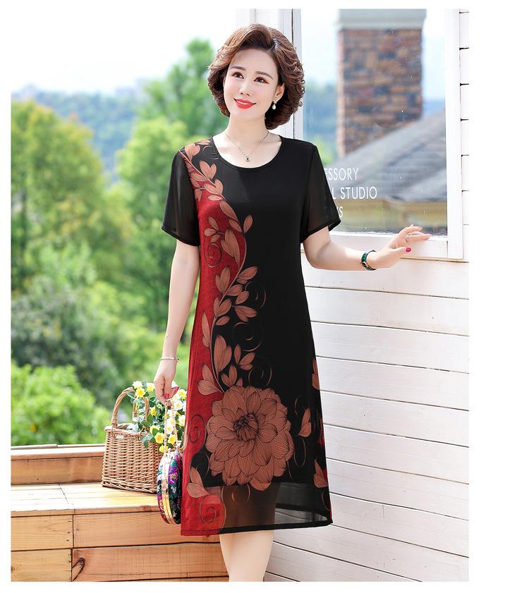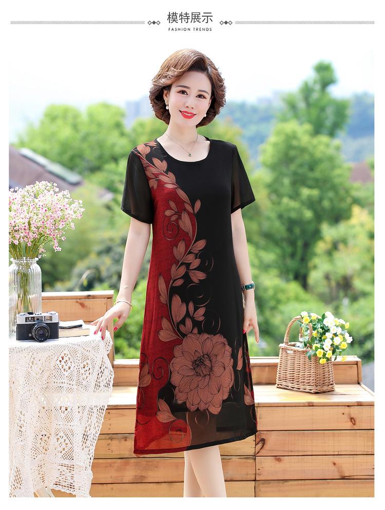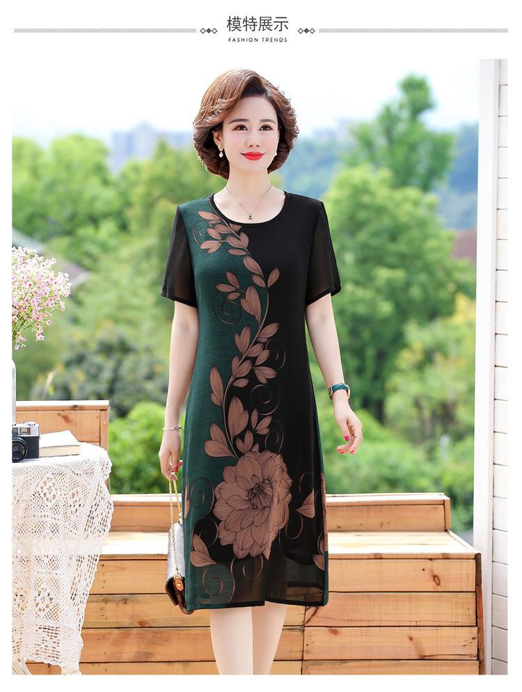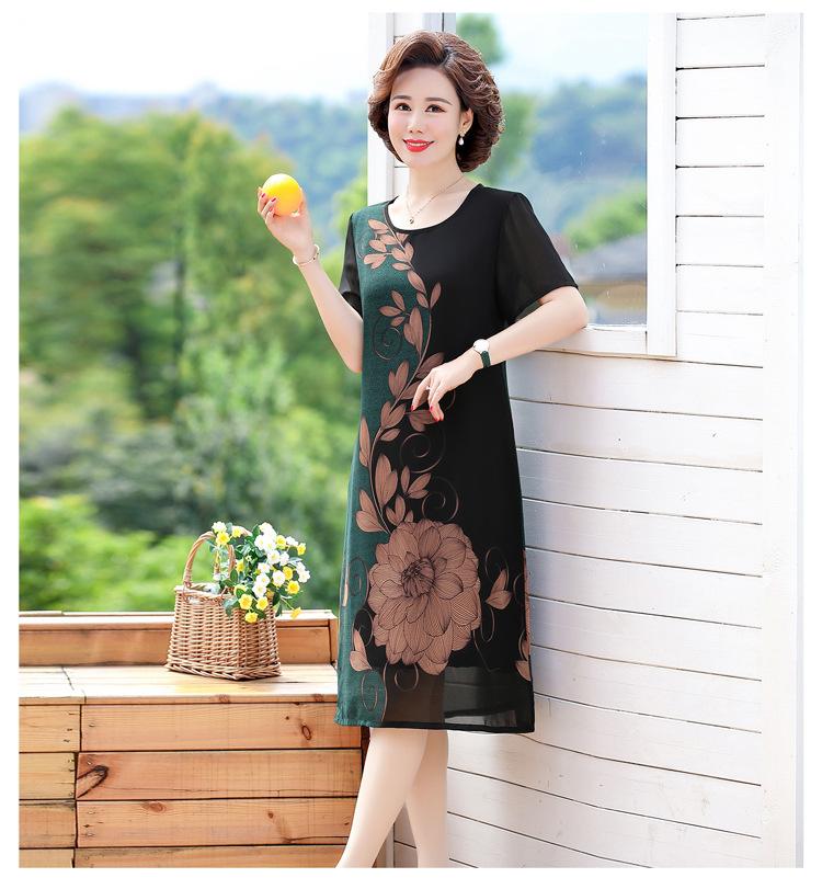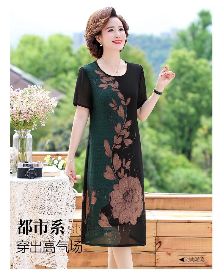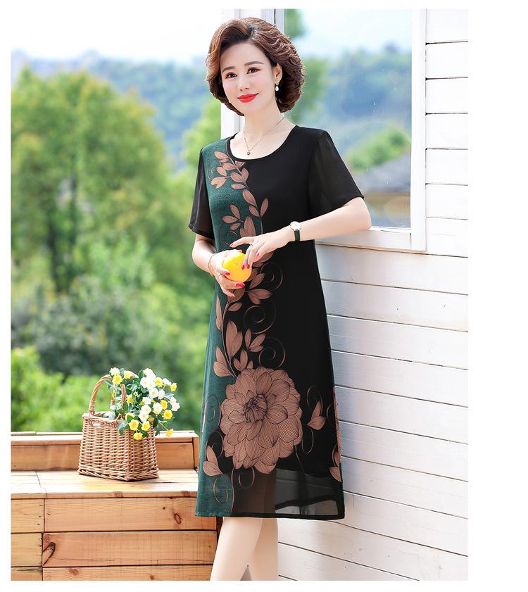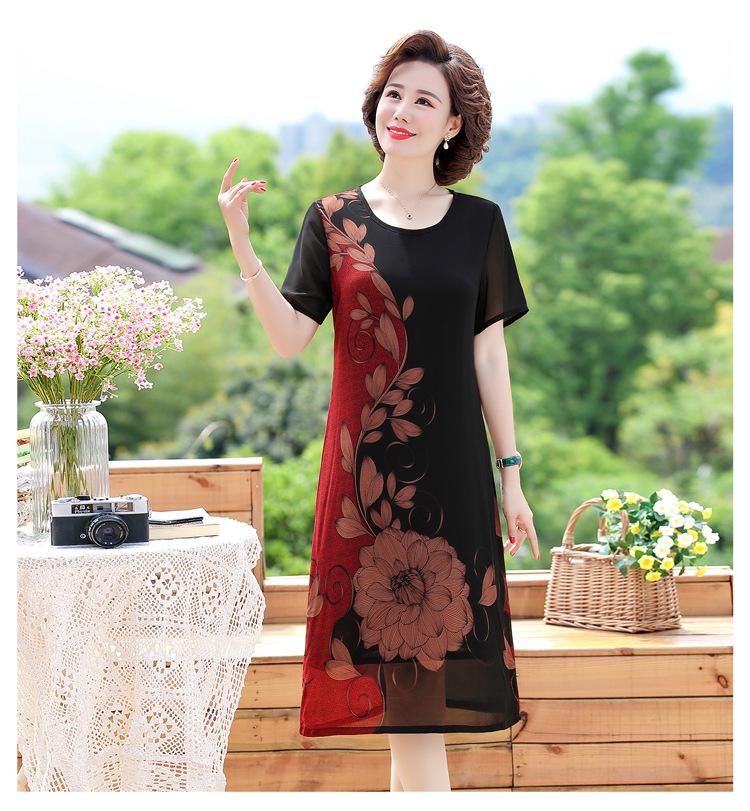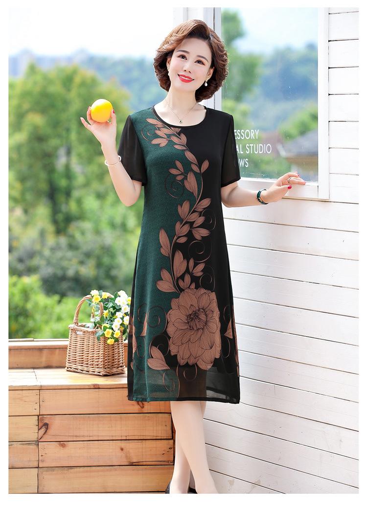 2025 Vestido de Verano para Mamá Nueva Moda para Mujeres de Mediana Edad Falda Midi de Chifón para Mediana Edad y Ancianas 40 y 50 Años