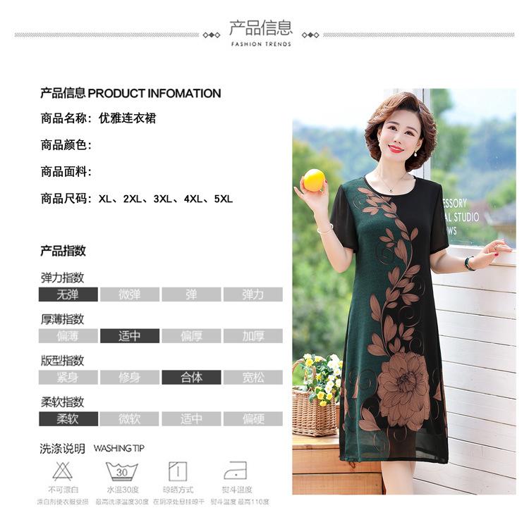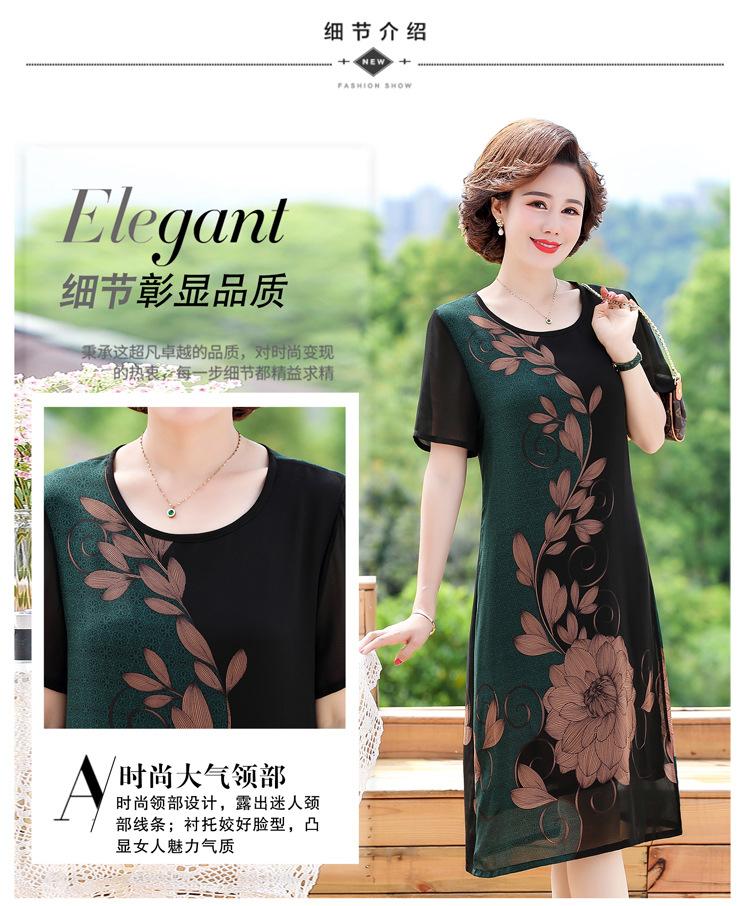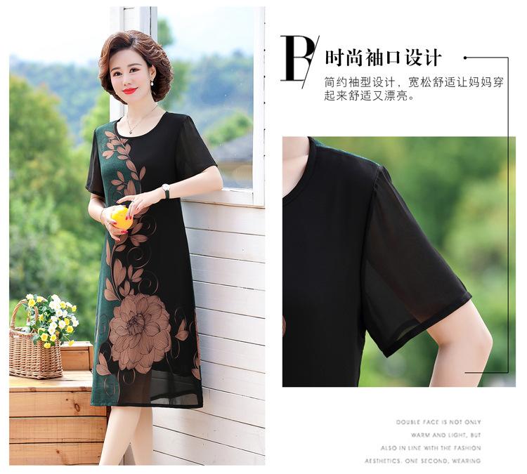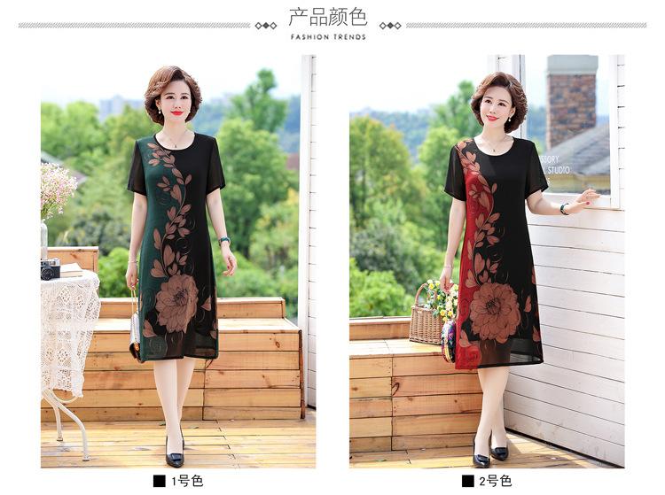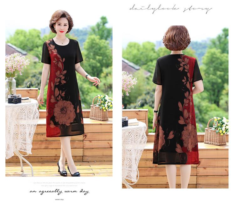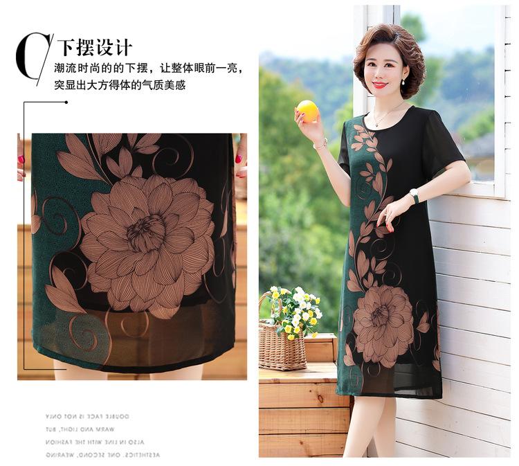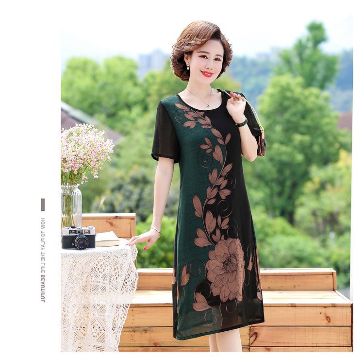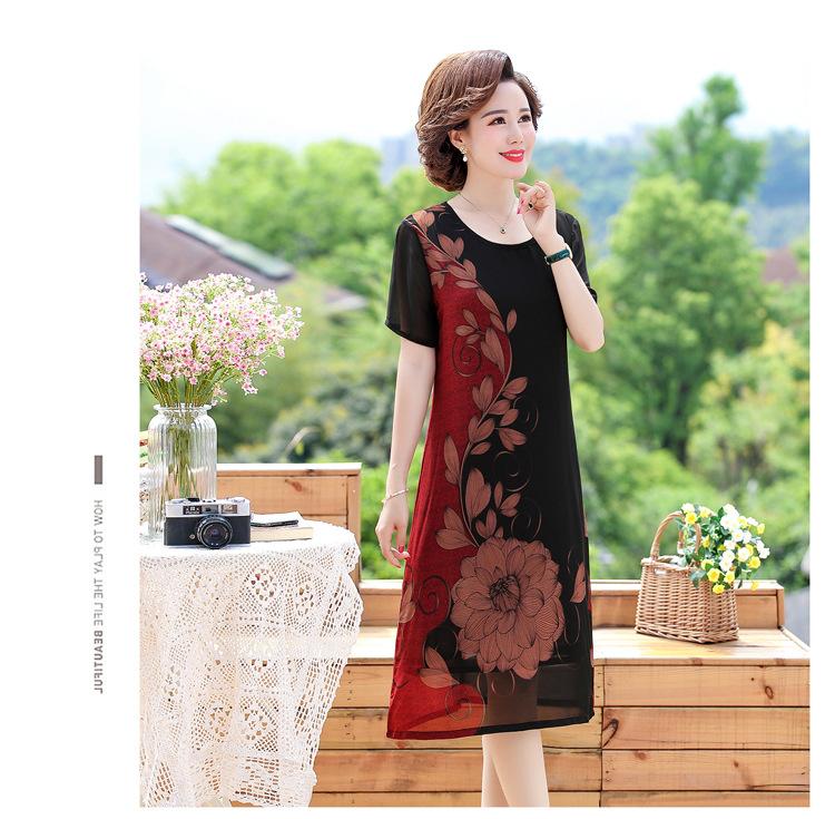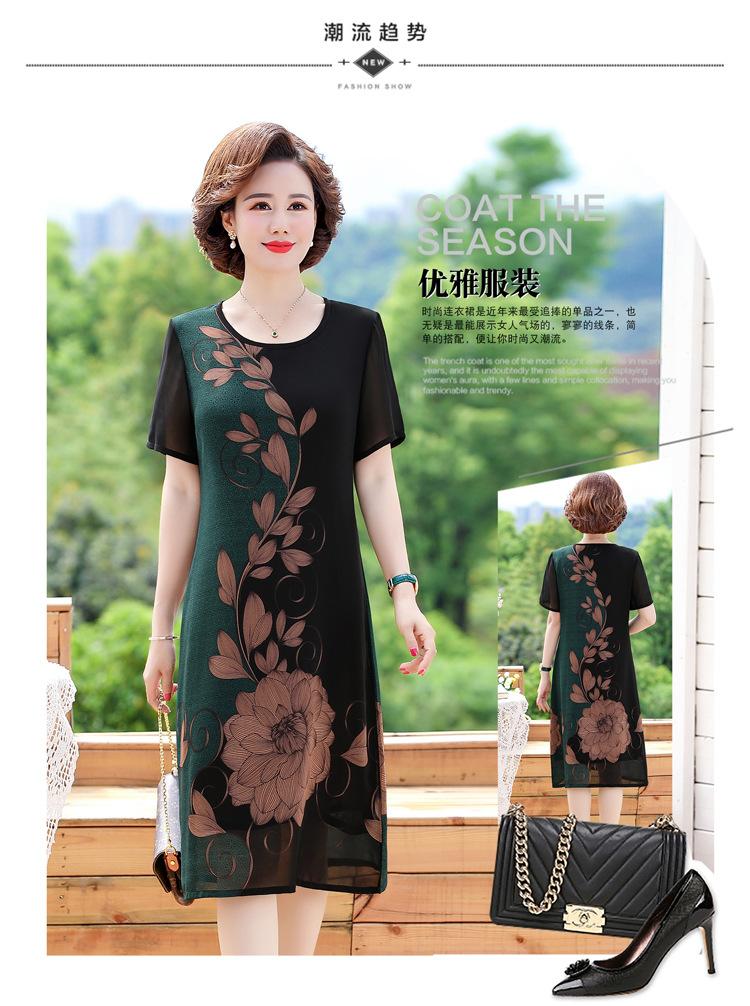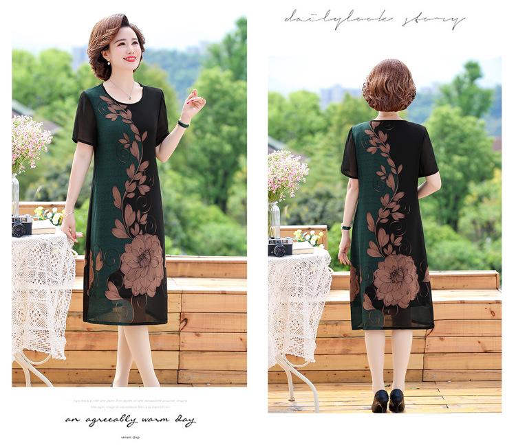 2025 Vestido de Verano para Mamá Nueva Moda para Mujeres de Mediana Edad Falda Midi de Chifón para Mediana Edad y Ancianas 40 y 50 Años