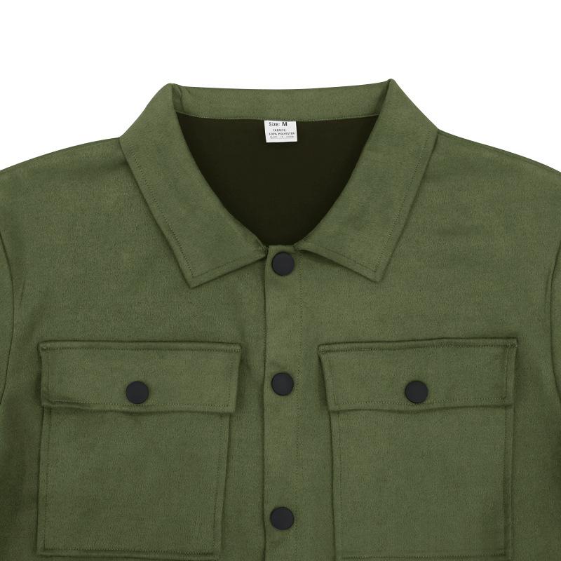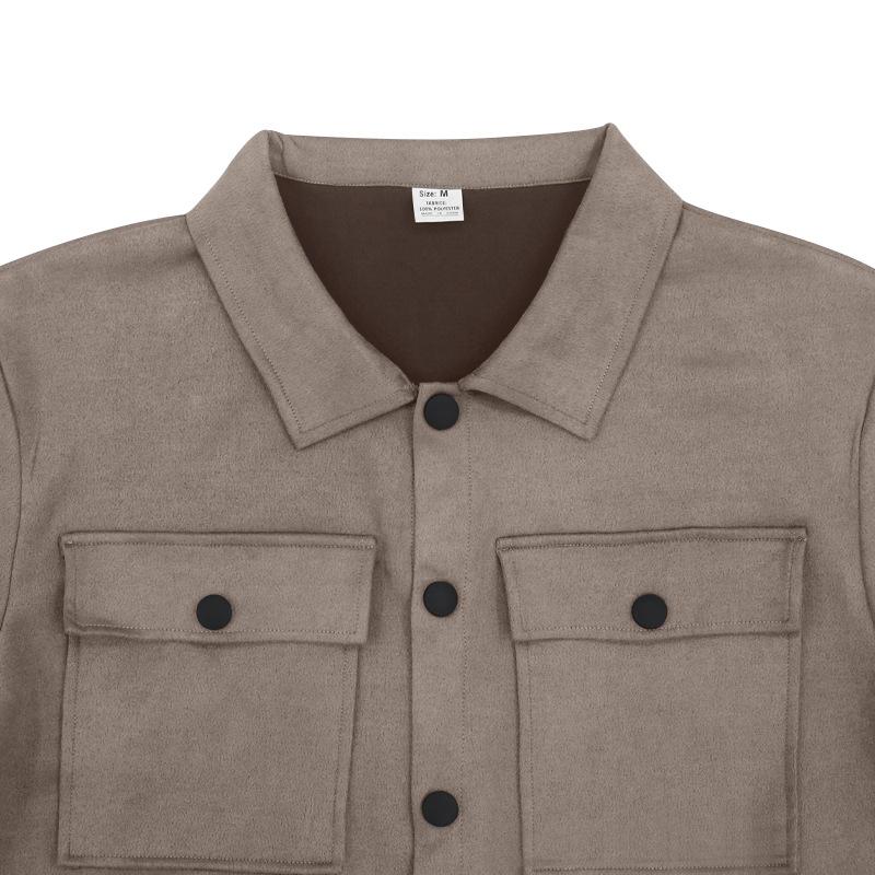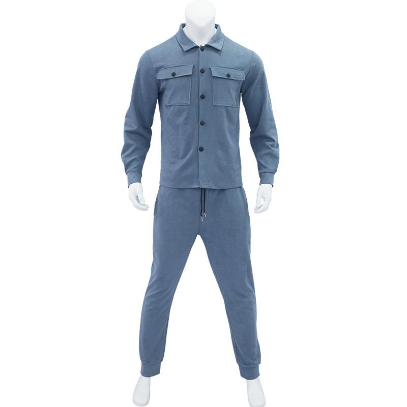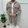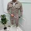 Conjunto de dos piezas de chaqueta informal para hombre, traje de comercio exterior transfronterizo de primavera y otoño, con pantalones de gamuza de color liso y bolsillos.