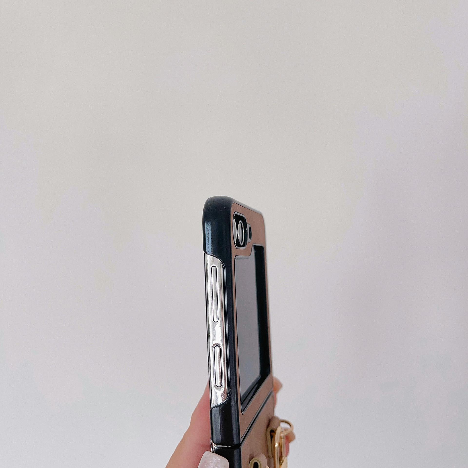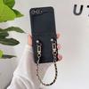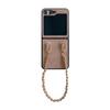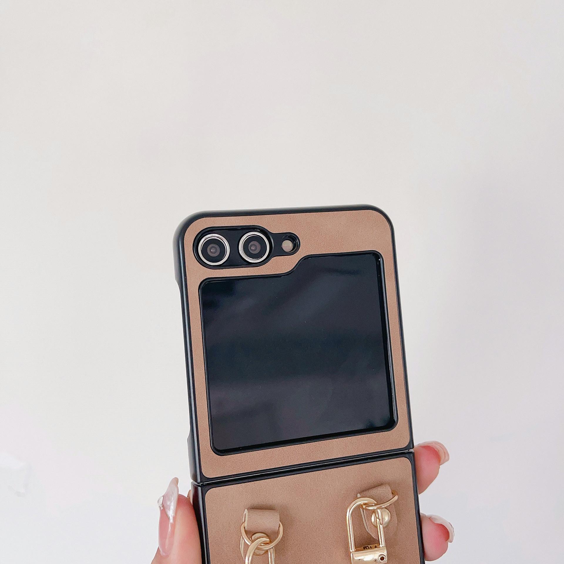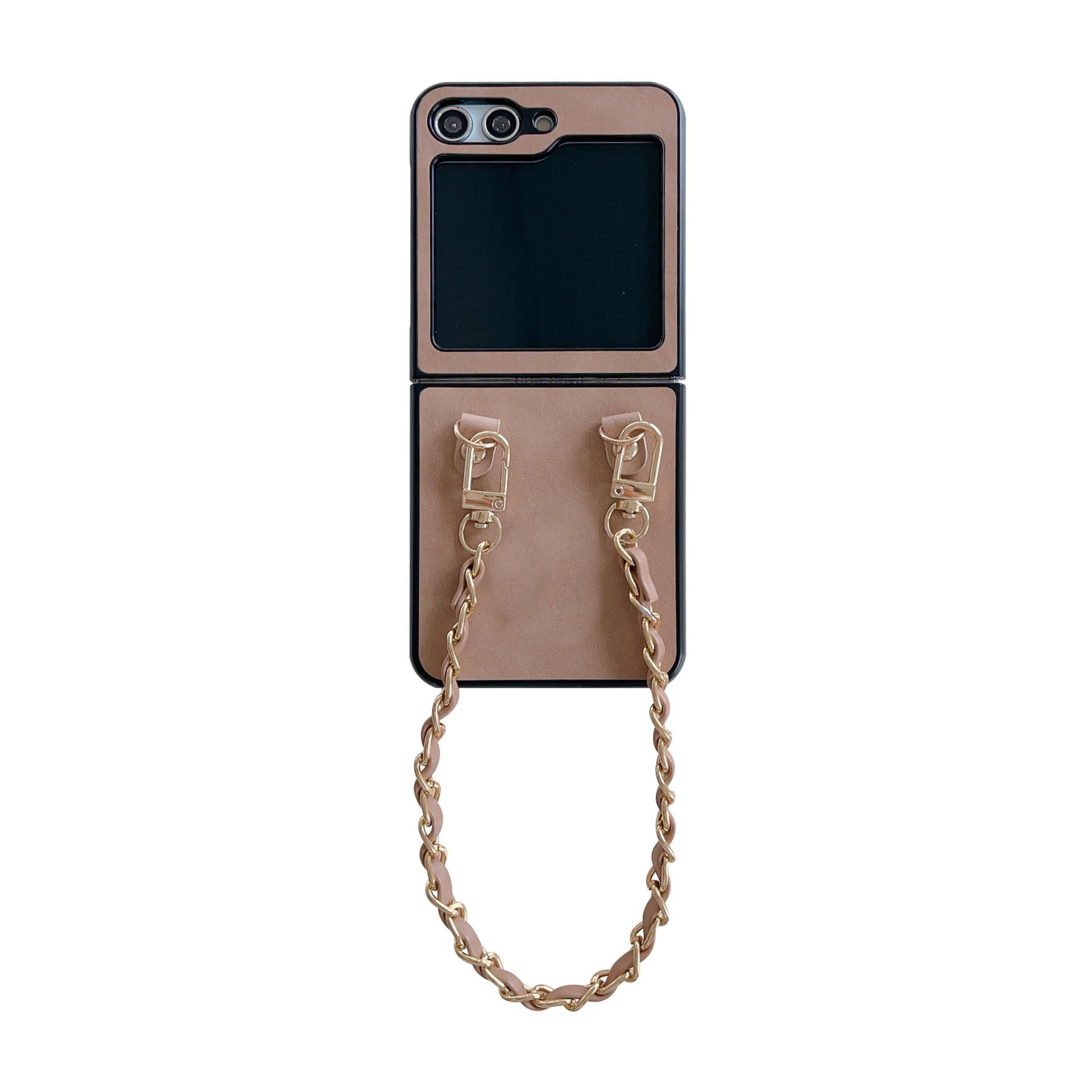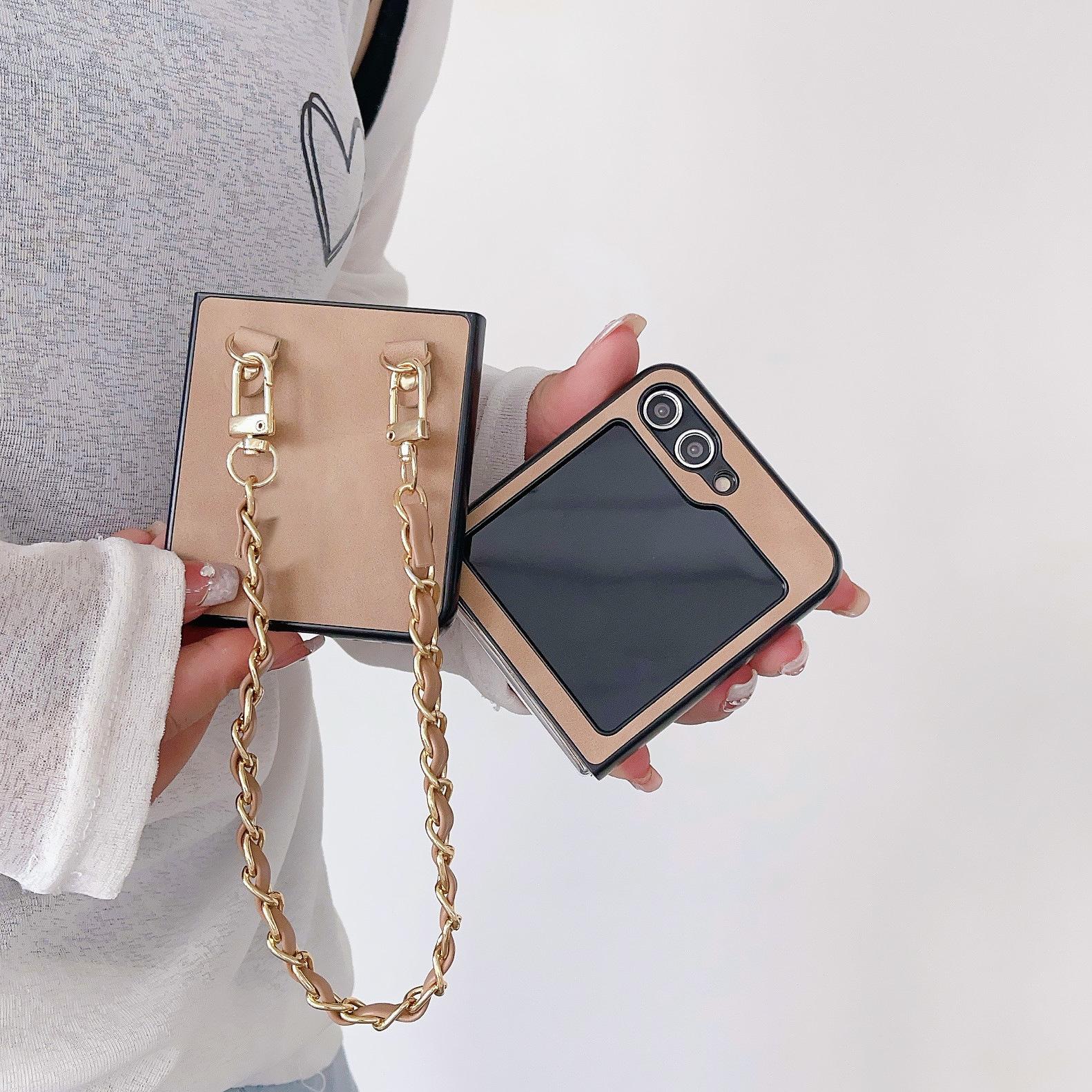 Aplicable a la funda plegable para teléfono Samsung ZFlip5 con cadena de cuero vintage ZFlip4, funda protectora portátil resistente a caídas, Japón y Corea del Sur