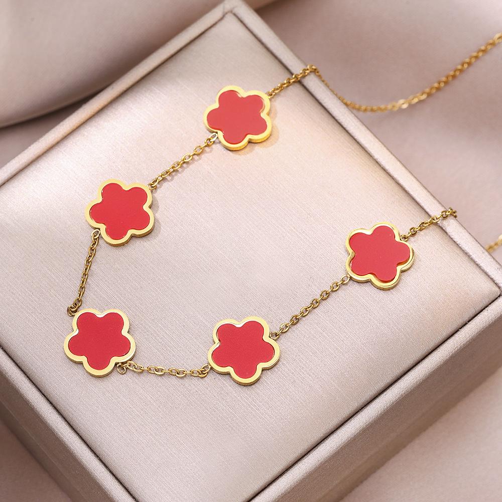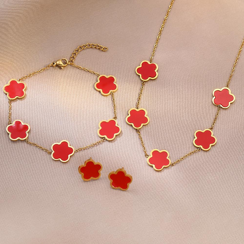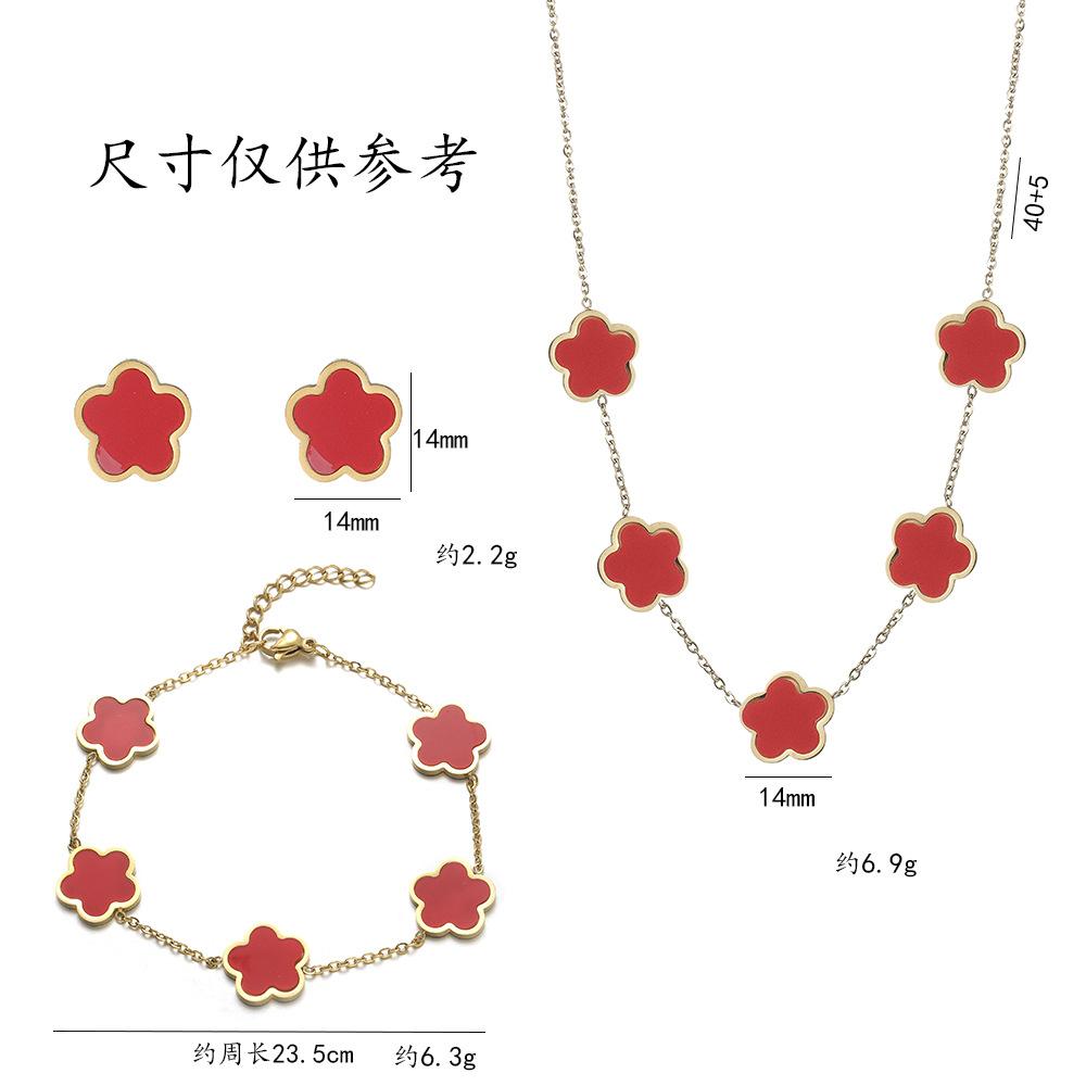 Collar para mujer, estilo europeo y americano, con diseño de trébol de cinco hojas y flor de ciruelo, pulsera y pendientes, elegante collar de moda, joyería.