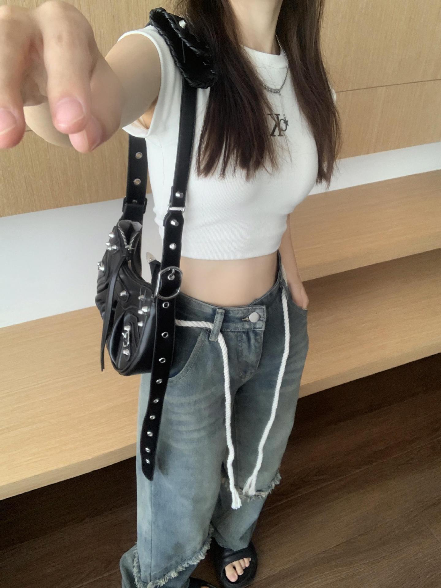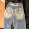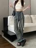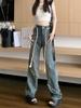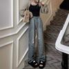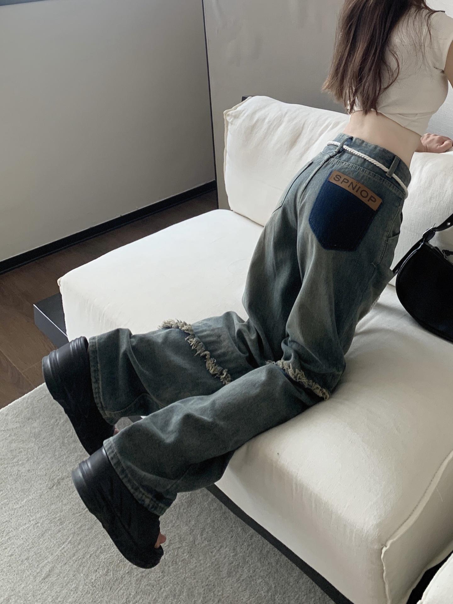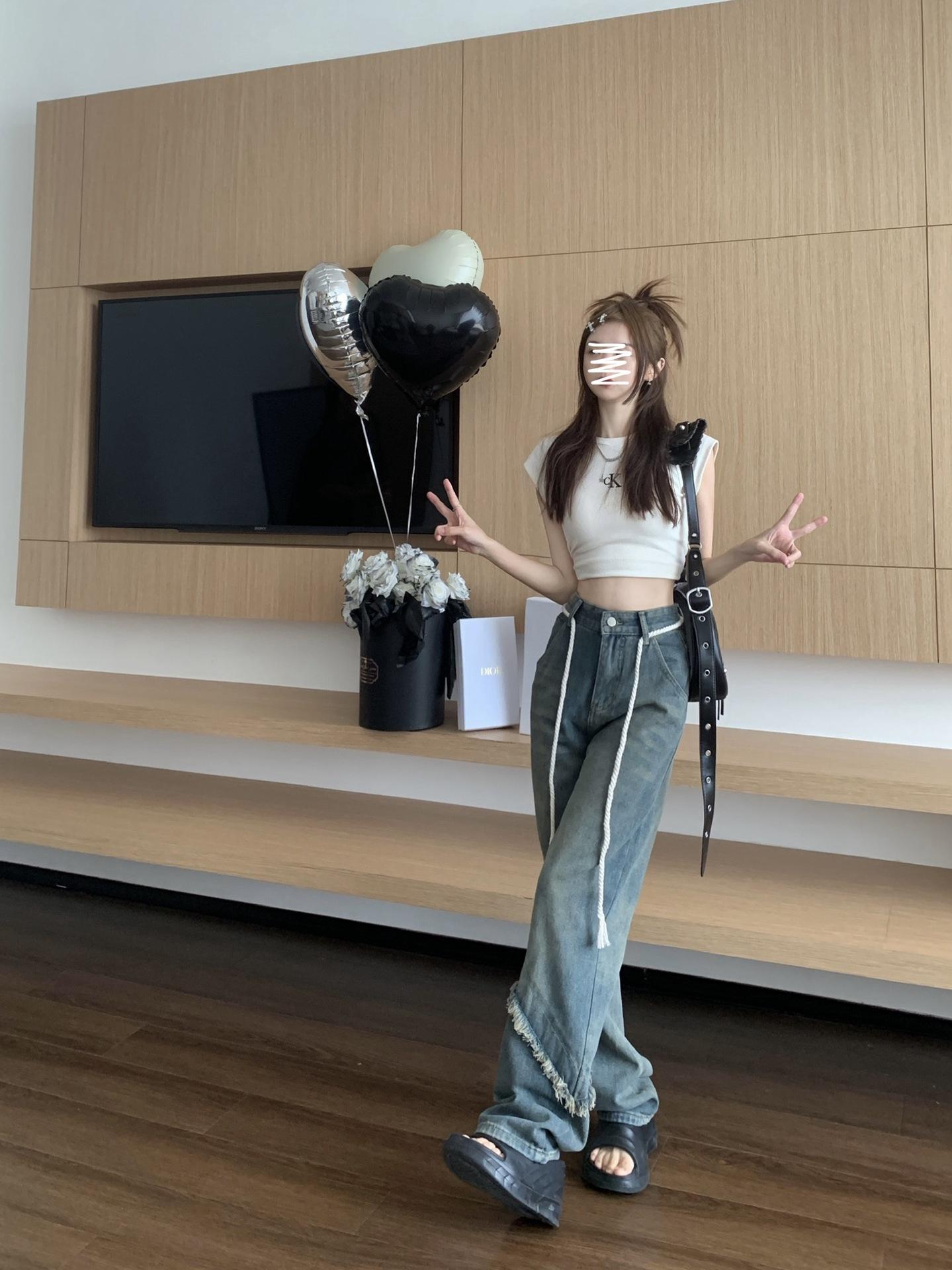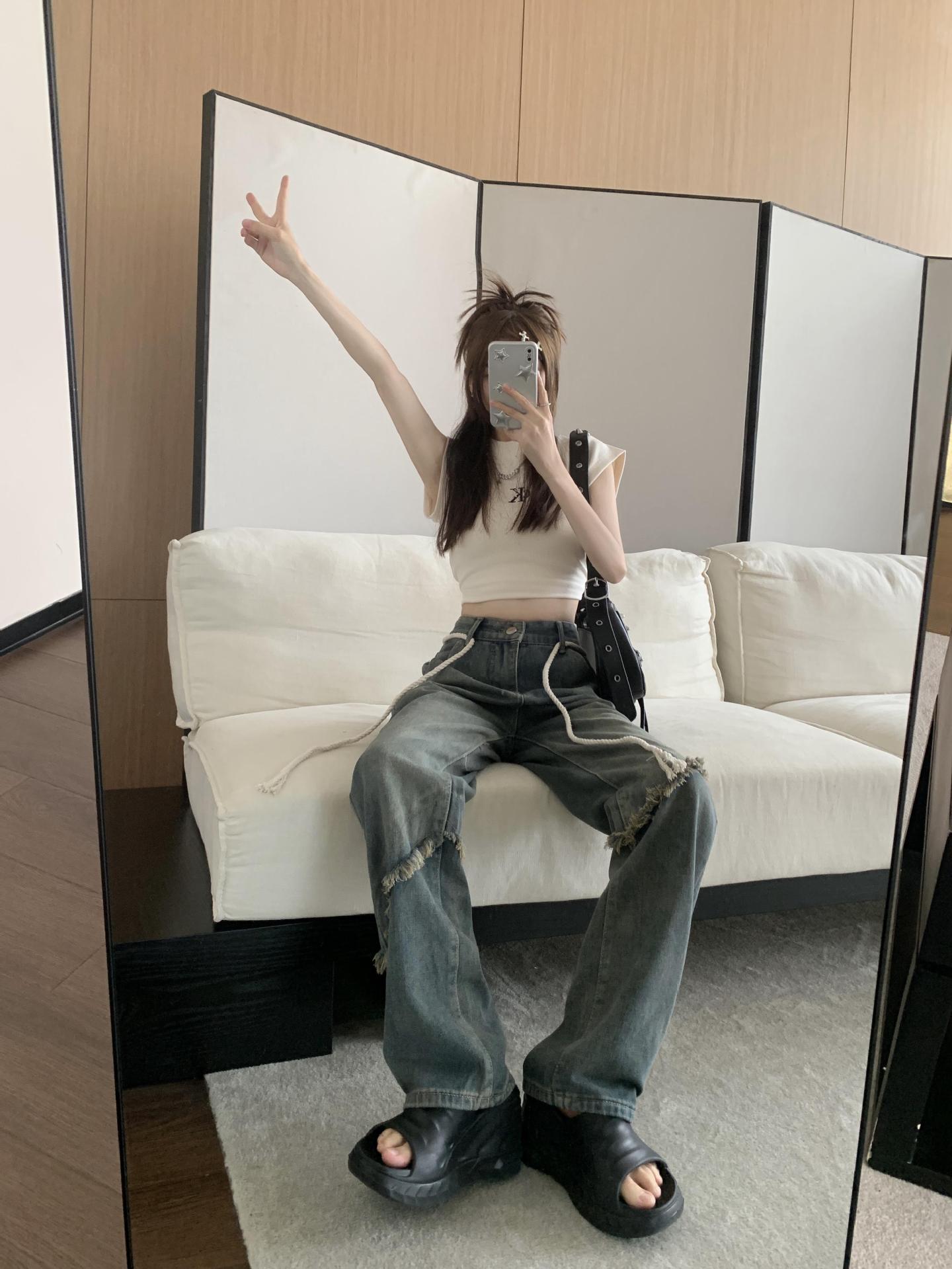 Jeans Americanos Retro de Diseño Nicho de Cintura Alta con Orilla Cruda para Mujer Pantalones Rectos Holgados Adelgazantes de Calle Alta