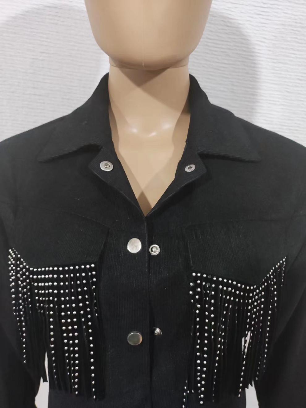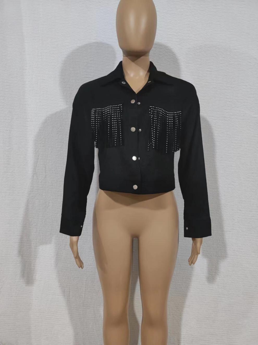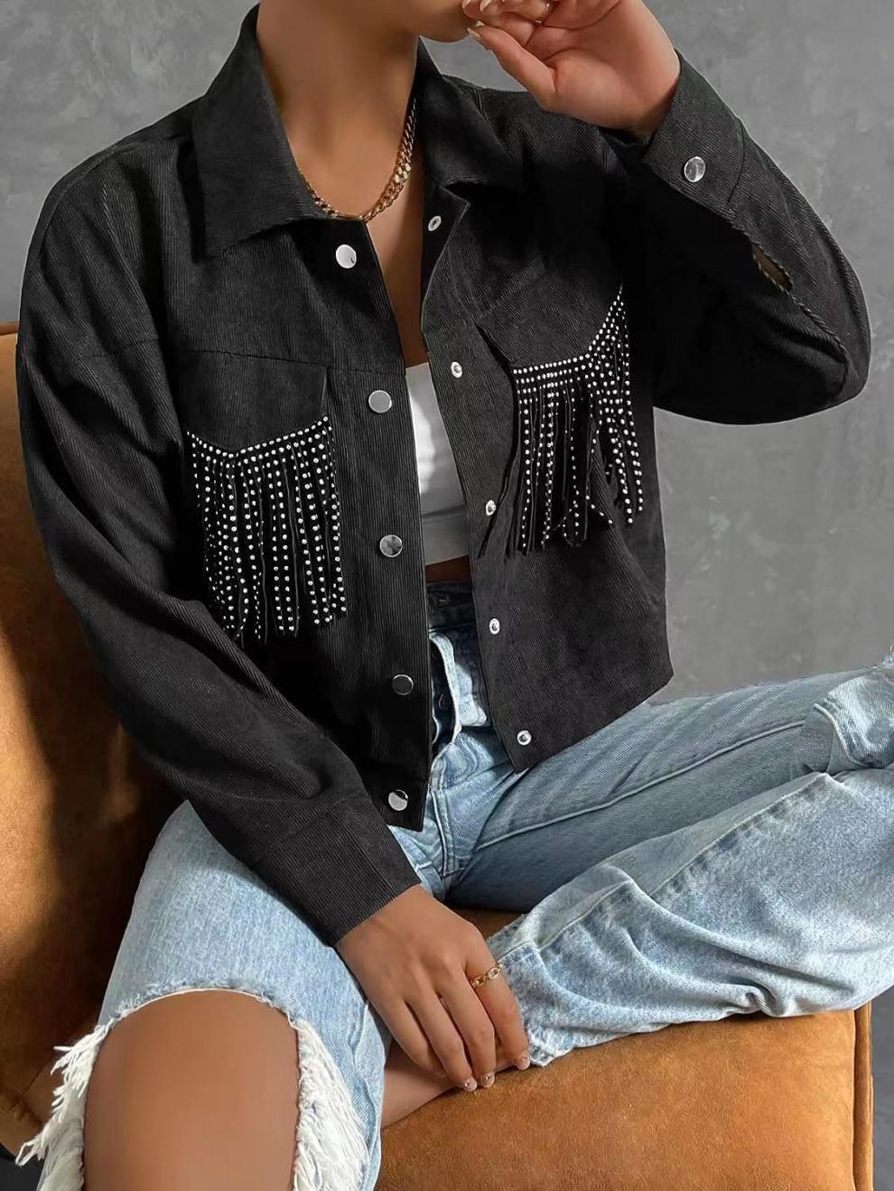 Chaqueta de solapa corta con borlas nueva de otoño transfronterizo de Amazon 2023, chaqueta de mujer de estilo europeo y americano