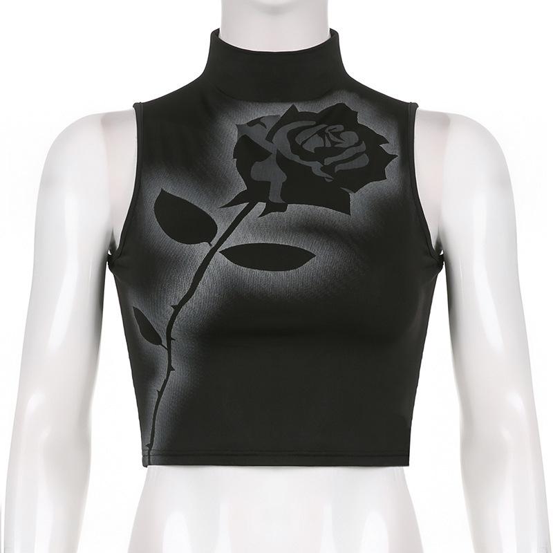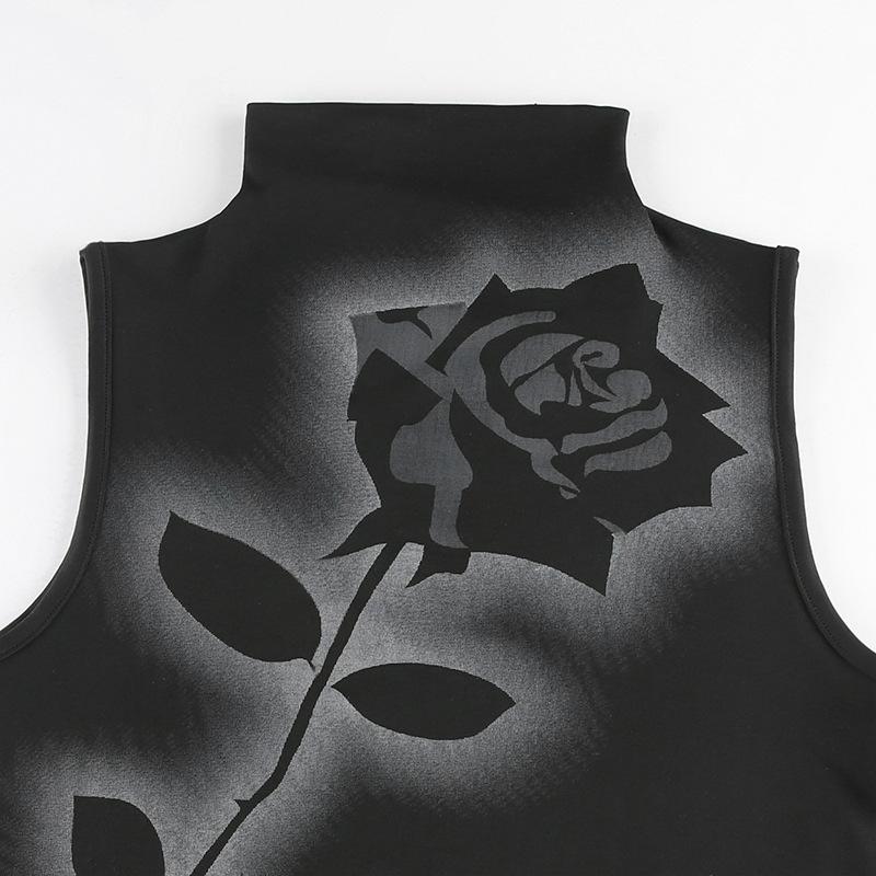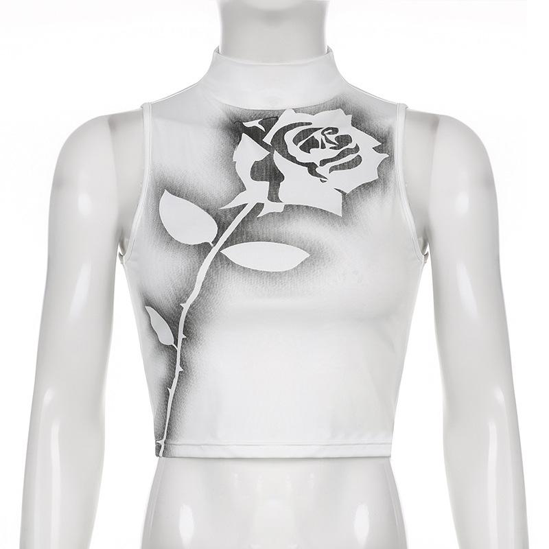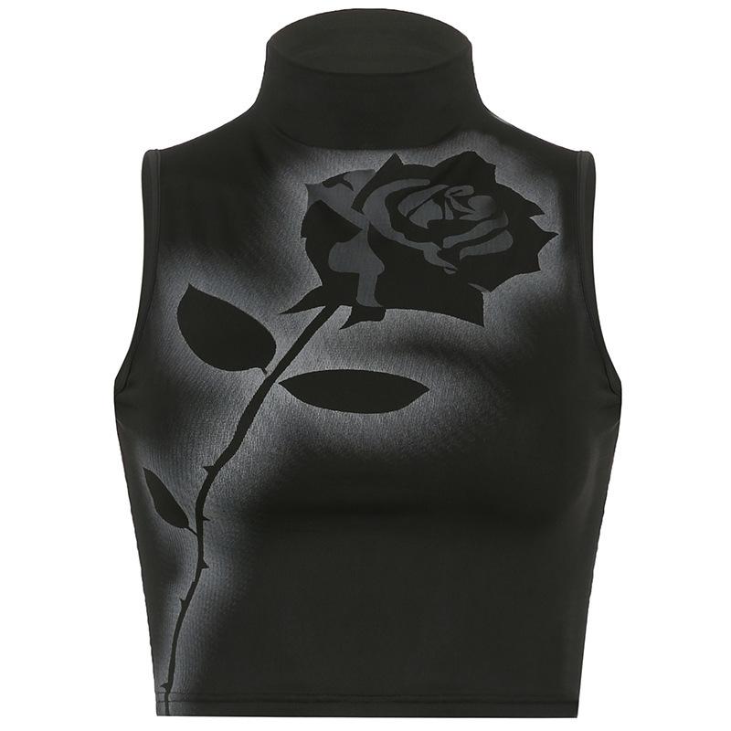 Chaleco sin mangas de cuello alto para mujer, estilo europeo y americano, con estampado de rosas de verano, con contraste de colores, venta al por mayor