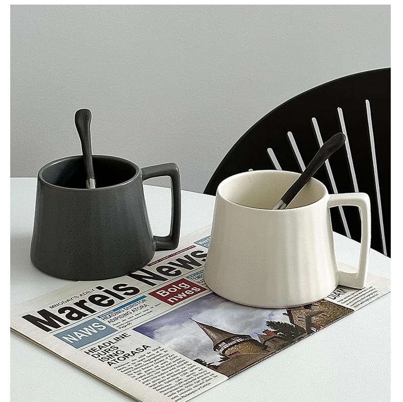 Taza de café vintage estilo Ins, taza de cerámica para té de la tarde, taza de nicho con cuchara para el hogar y la oficina.