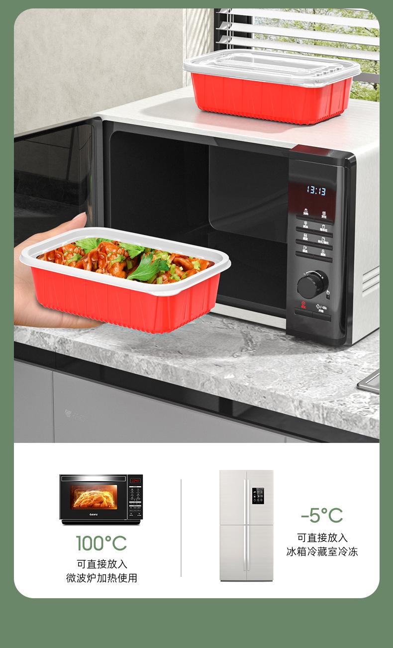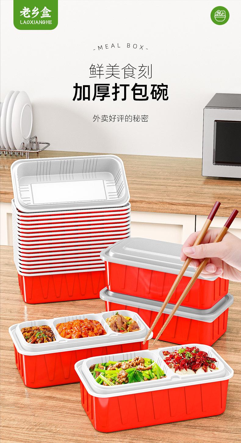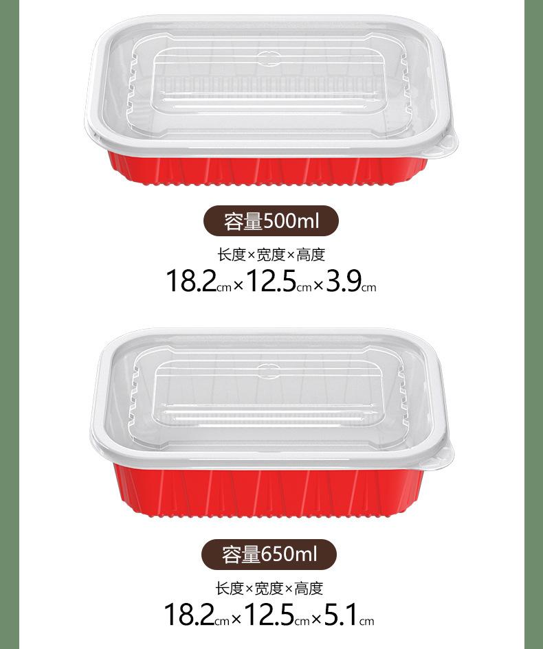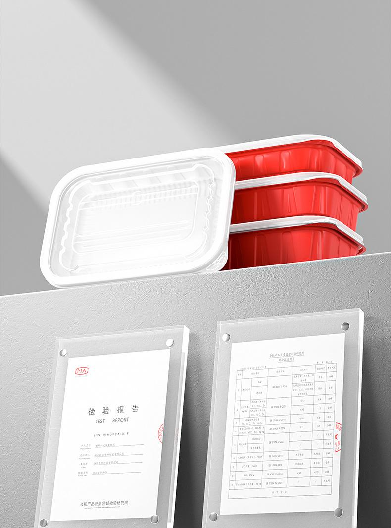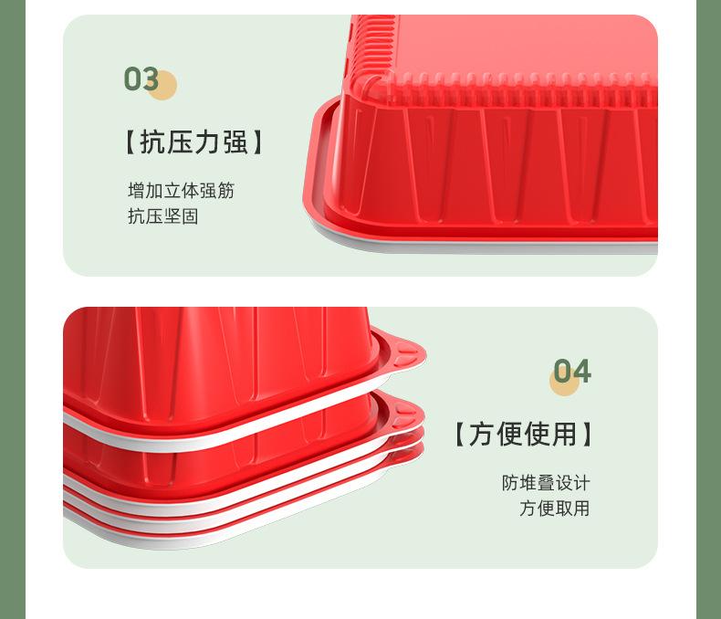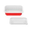 Lonchera desechable rectangular roja y blanca de plástico grueso de dos colores, doble capa, para llevar con tapa