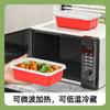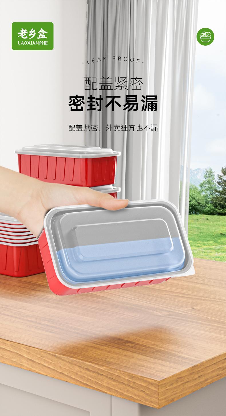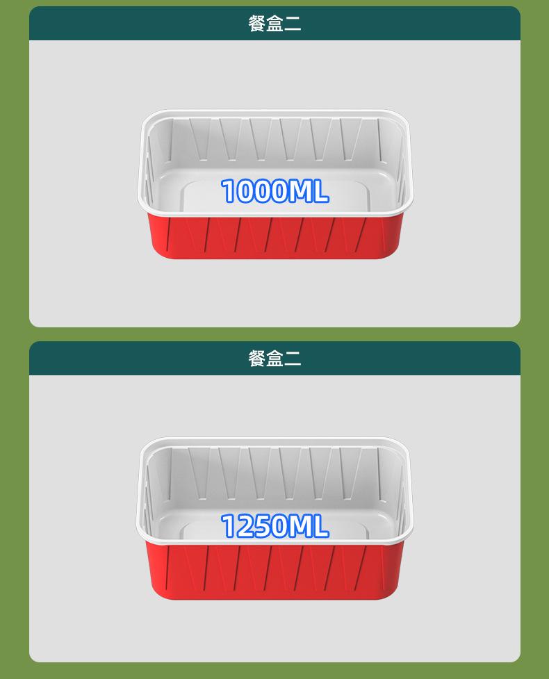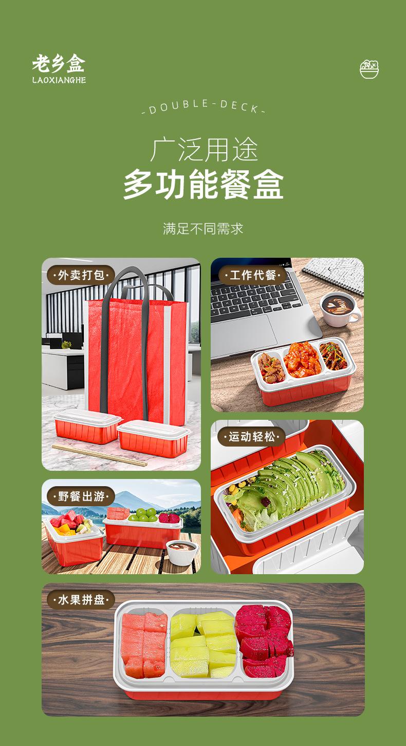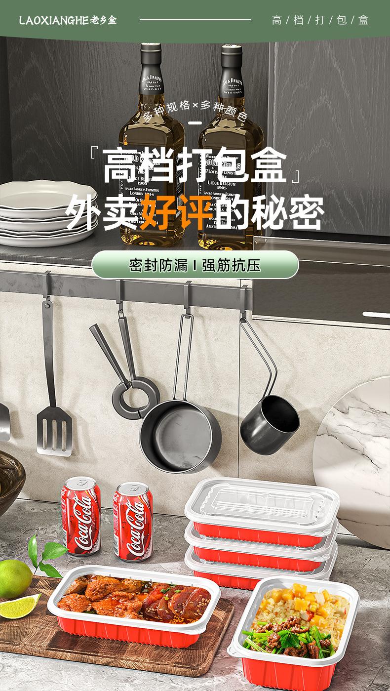 Lonchera desechable rectangular roja y blanca de plástico grueso de dos colores, doble capa, para llevar con tapa