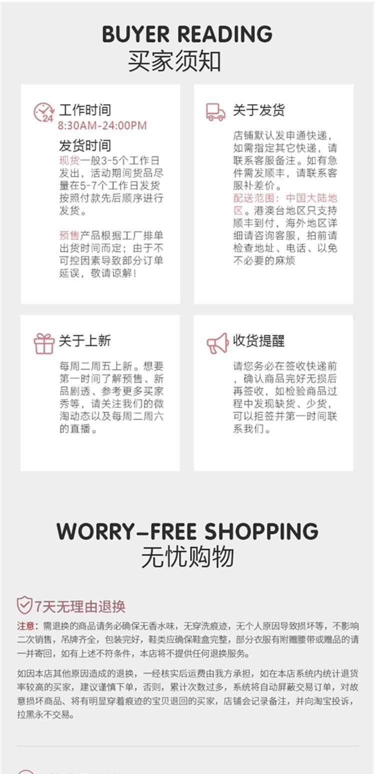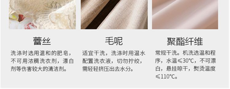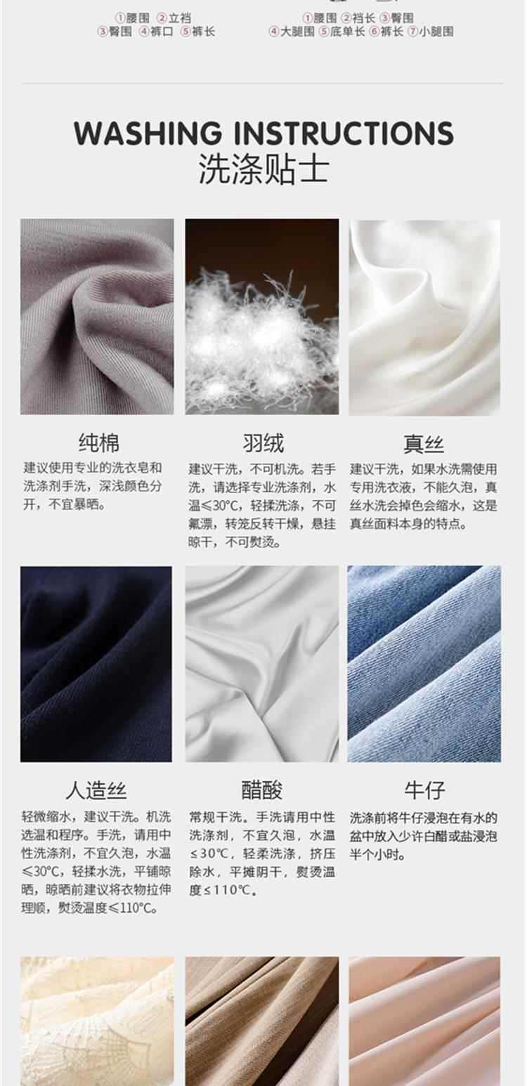 Se recomienda limpieza en seco, lavado suave a mano (lavar del revés), ¡no lavar a máquina! ! La temperatura de lavado más alta es de 30℃, la solidez del color de los tejidos de acetato es relativamente baja, ¡no remojar durante más de 2 minutos! ! ! Se recomienda lavar por separado de otras prendas de diferentes colores, y se recomienda usar detergentes neutros (como gel de ducha) para mantener los colores brillantes, y no usar detergentes alcalinos (como jabón, detergente en polvo o detergente para ropa común). No lavar a máquina ni centrifugar, secar en un lugar fresco (evitar la exposición al sol) |