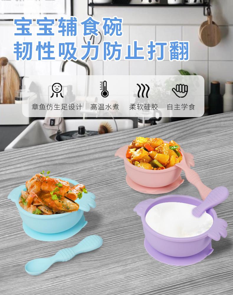Cuenco de silicona de grado alimenticio para bebé, vajilla con cuchara y ventosa, resistente a caídas, para alimentación infantil.