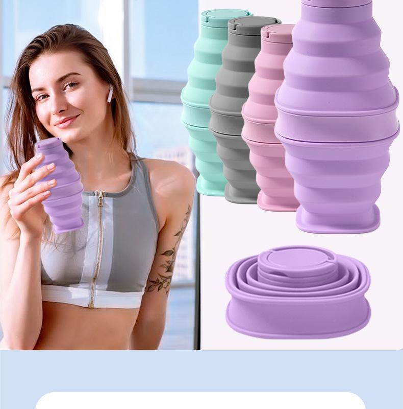 Amazon Transfronterizo Viaje al Aire Libre Plegable Deportes Botella de Agua Portátil Ultradelgada Ciclismo Fitness Silicona Taza de Regalo