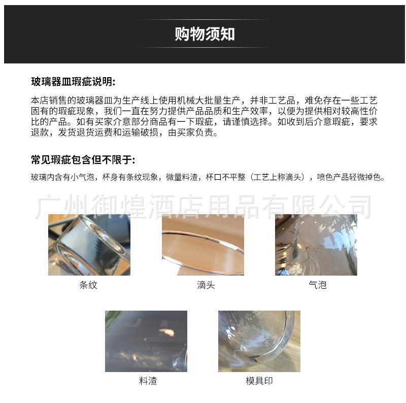 Los productos de nuestra empresa se venden al por mayor, no al por menor. Aceptamos lotes mixtos por un valor superior a 500 yuanes. Debido a la gran cantidad de productos al por mayor y al gran volumen, solo enviamos logística para recogerlos nosotros mismos. Si se requiere entrega a domicilio, se cobrará una tarifa de envío (excepto para piezas de muestra). Se recomienda pagar una tarifa de 10 yuanes por caja por el marco de madera antes de comprar productos frágiles, como copas de vino tinto. Si los productos se dañan después de recibirlos, desempaquételos e inspecciónelos en la empresa de logística, reúna los productos dañados y envíe fotos al servicio de atención al cliente (le compensaremos por daños que no superen el 3%). Un daño dentro del 3% es normal en el transporte al por mayor. Al ser un producto de vidrio frágil, el problema del daño no puede superar las 24 horas. Si excede este tiempo, ¡será bajo su propio riesgo! Se recomienda que el cliente pague el flete a logística, para que al menos la logística tenga una mejor actitud antes de recibir el flete. Aceptamos devoluciones sin compromiso. Los daños y el envío durante el transporte correrán a cargo del comprador (excepto en productos con logotipo). Es normal que los productos hechos a mano presenten algunas burbujas y marcas de agua. Queridos amigos que buscan la perfección, ¡tengan cuidado al comprar!