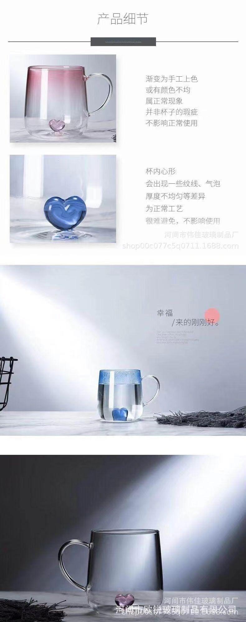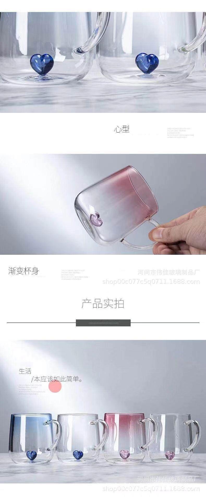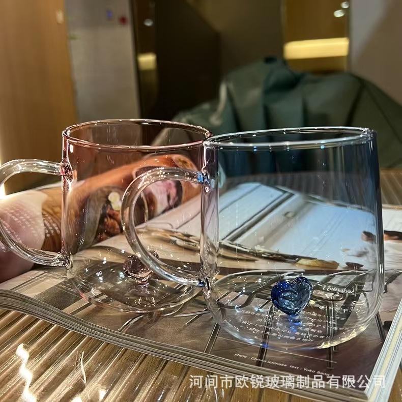 Taza de Té de Vidrio Corazón Vidrio de Borosilicato Alto Resistente al Calor Vaso de Agua de Vidrio con Asa Taza para Jugo Leche